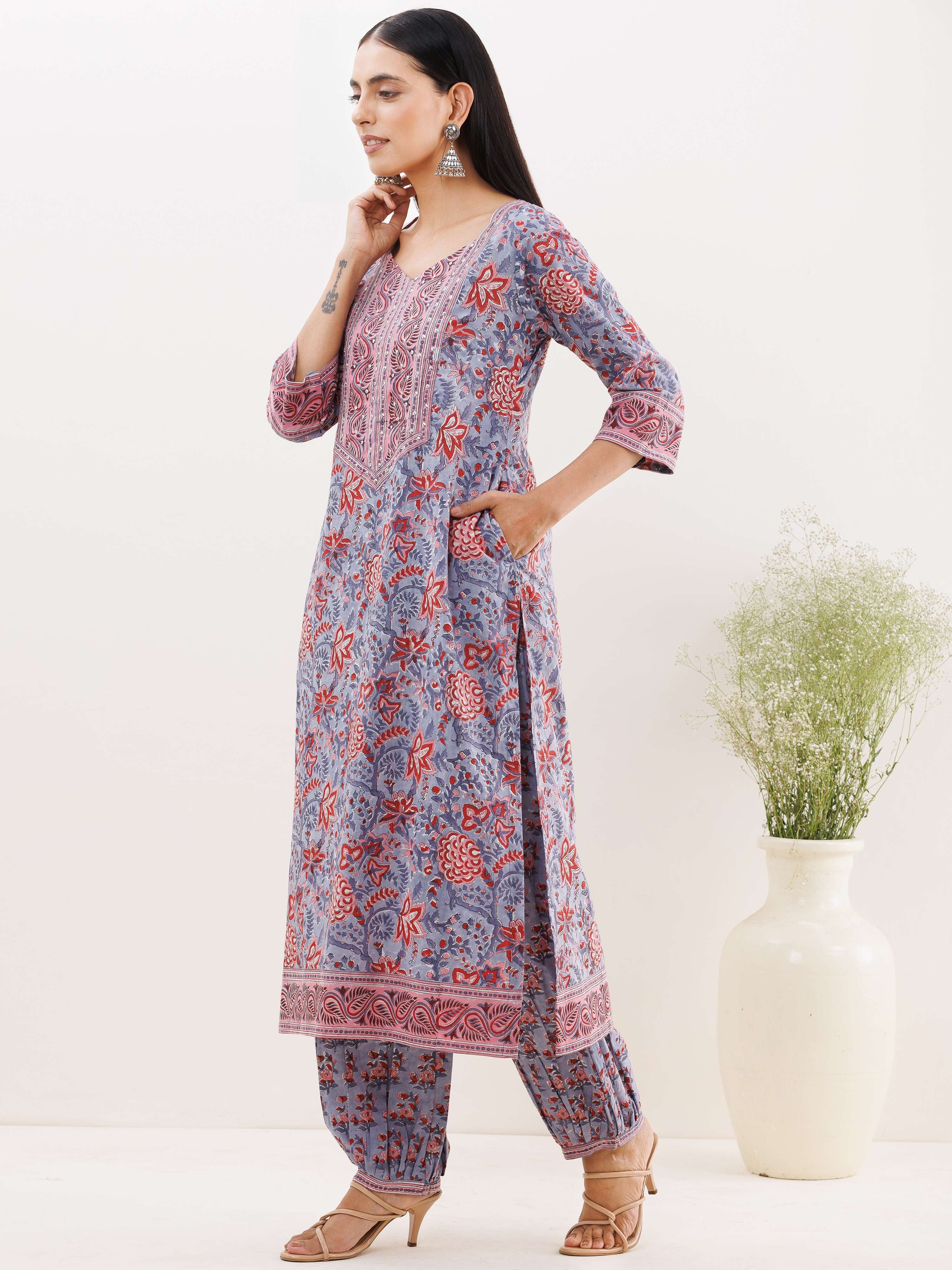 Fabric : Hand Block Printed. Kurta - Cotton . Pants - Cotton, Dupatta - Cotton Mul Mul