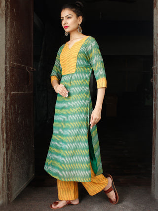 Green Yellow Silk Cotton Ikat Cotton Kurta & Pants - Set of 2 - SS01F1431