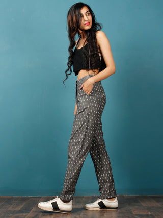 Black Pink Green Grey Double Ikat Handwoven Cotton Saree With Ganga Jamuna Border - S031703644
