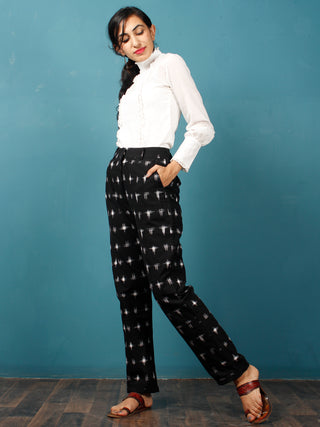 Black White Blue Ikat Handwoven Pochampally Mercerized Cotton Saree - S031701426