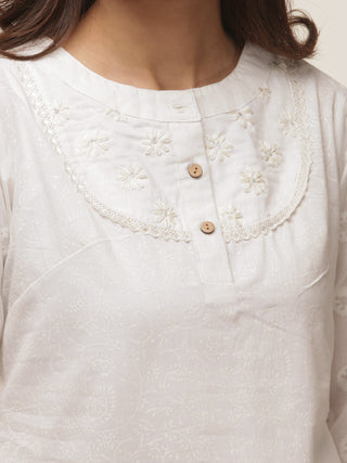 Sky Blue White Hand Woven Ikat Front Open Top - T20F914