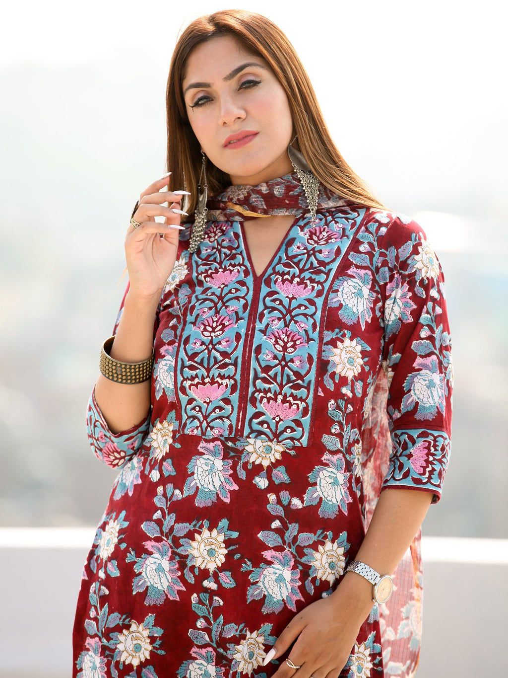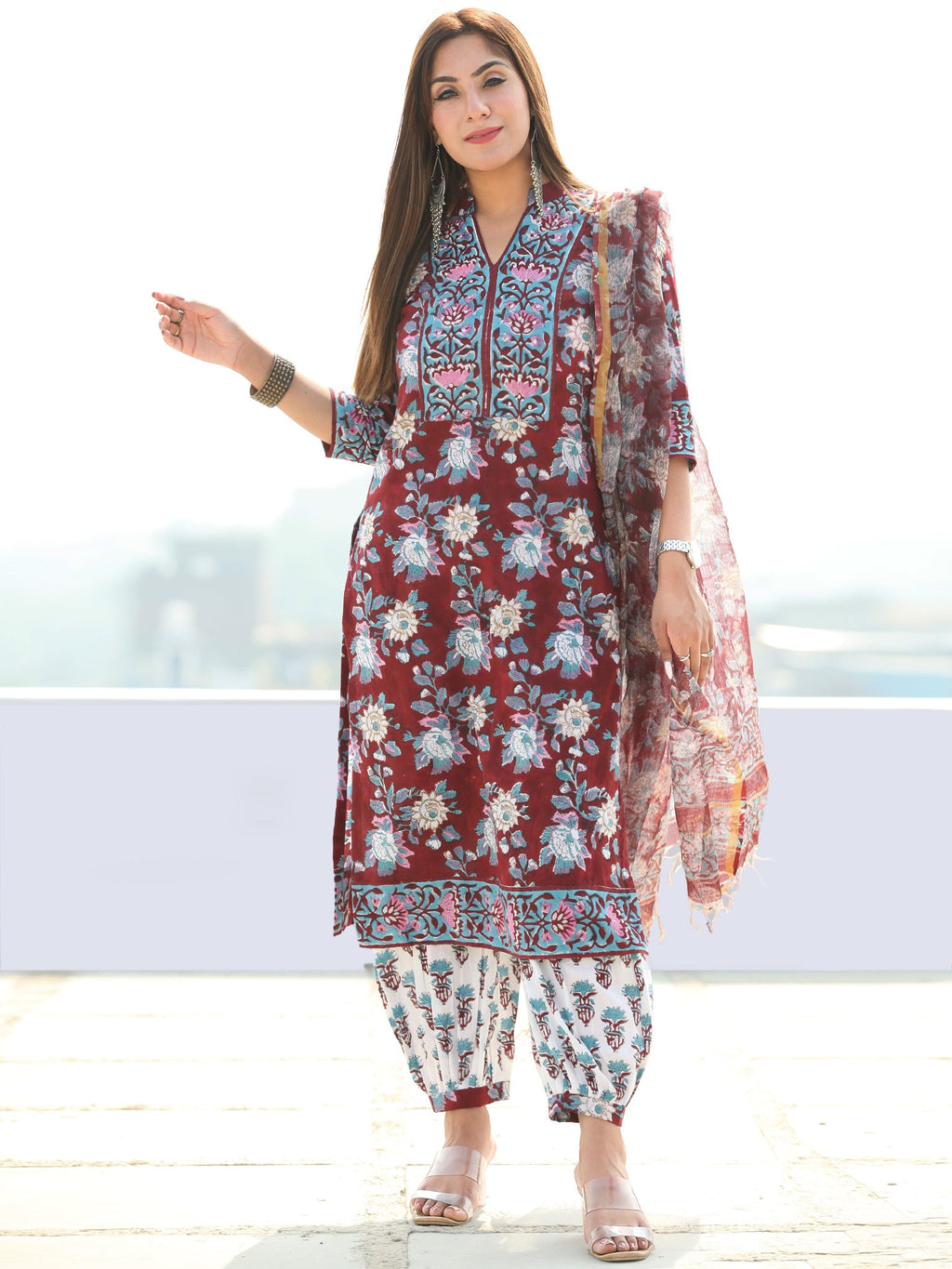 Product: Contains Hand Block Printed Cotton Kurta. Matching Pants/Bottoms and Dupatta are also available separately under BUY THE LOOK section.
