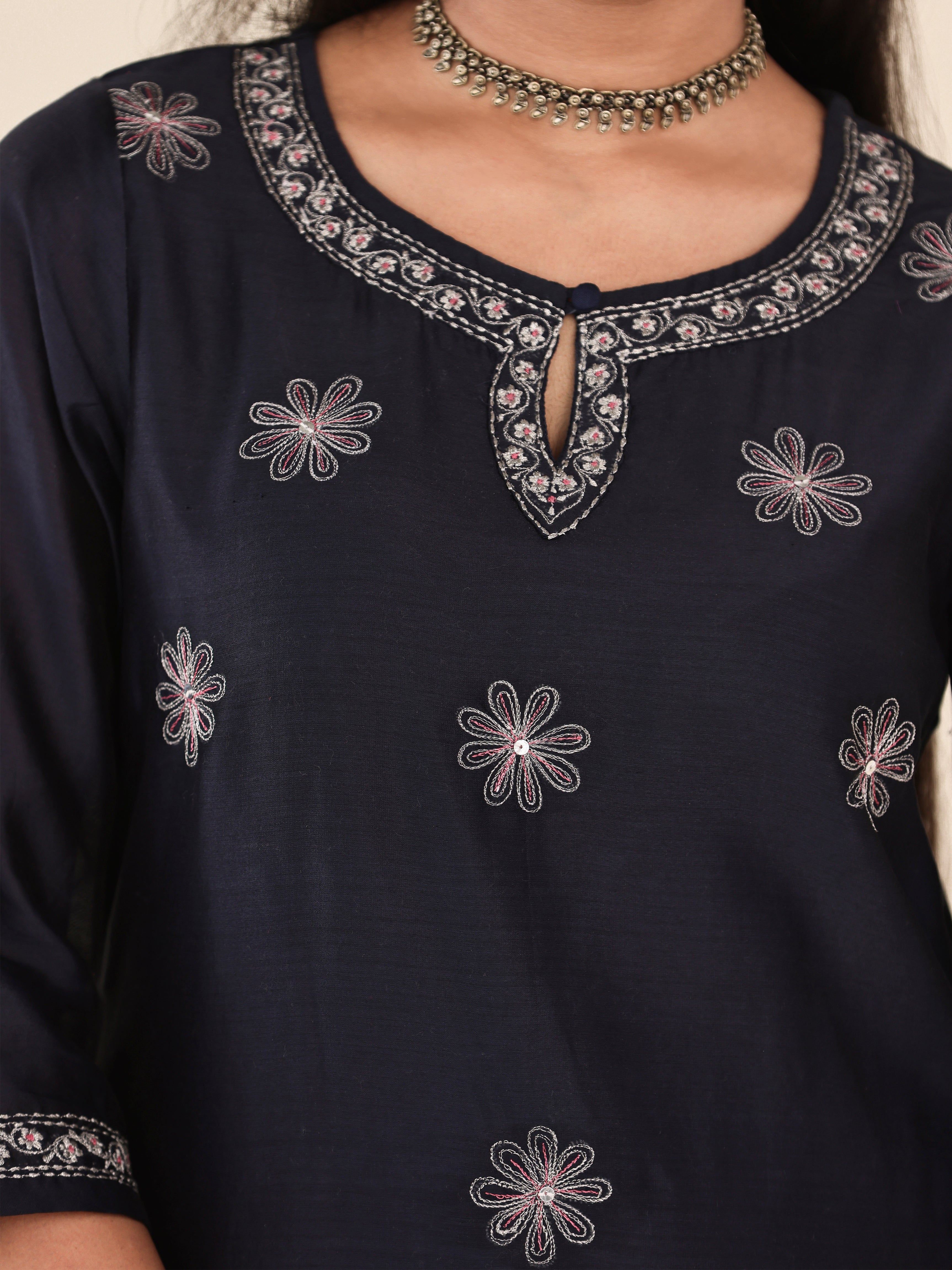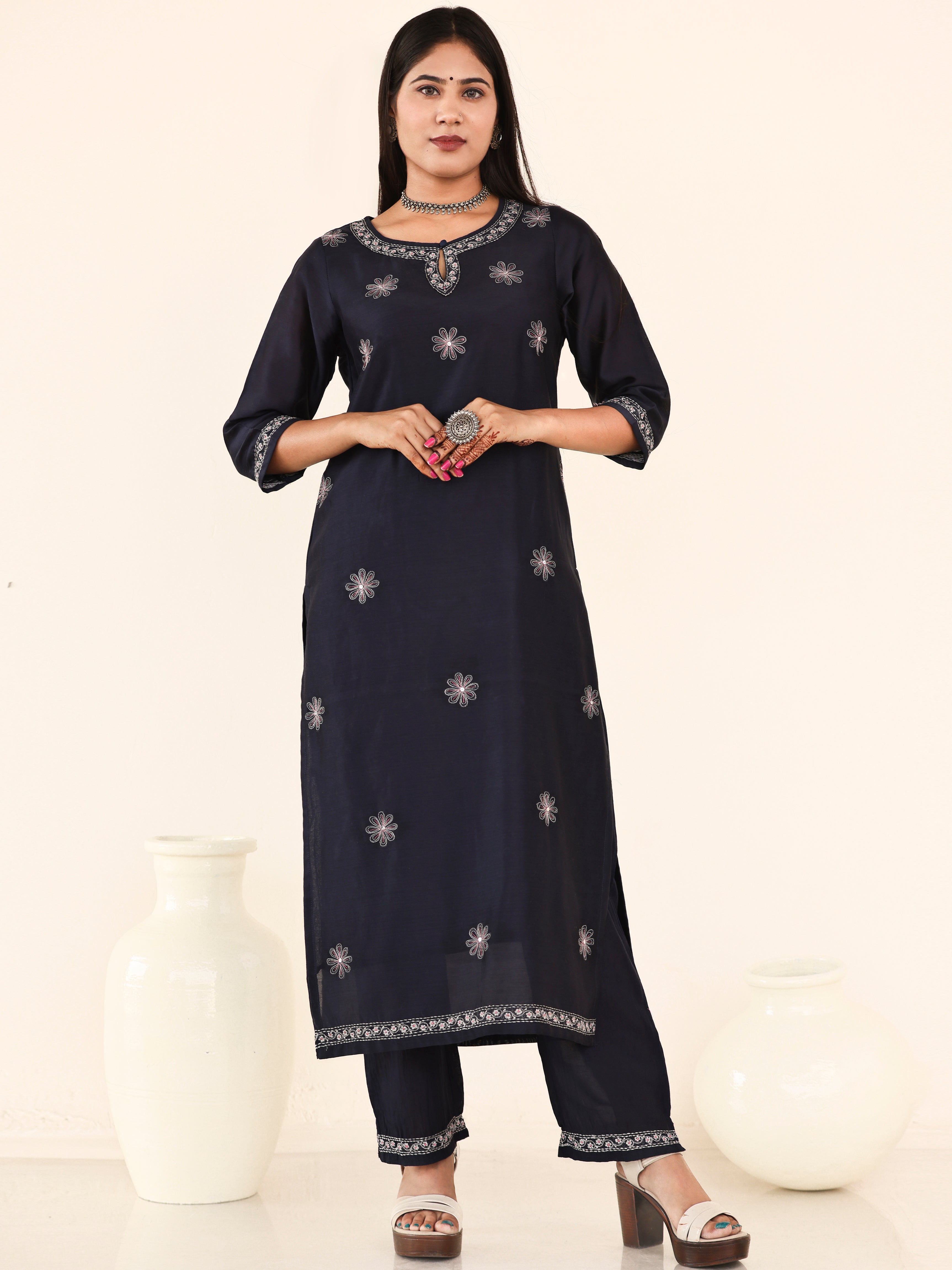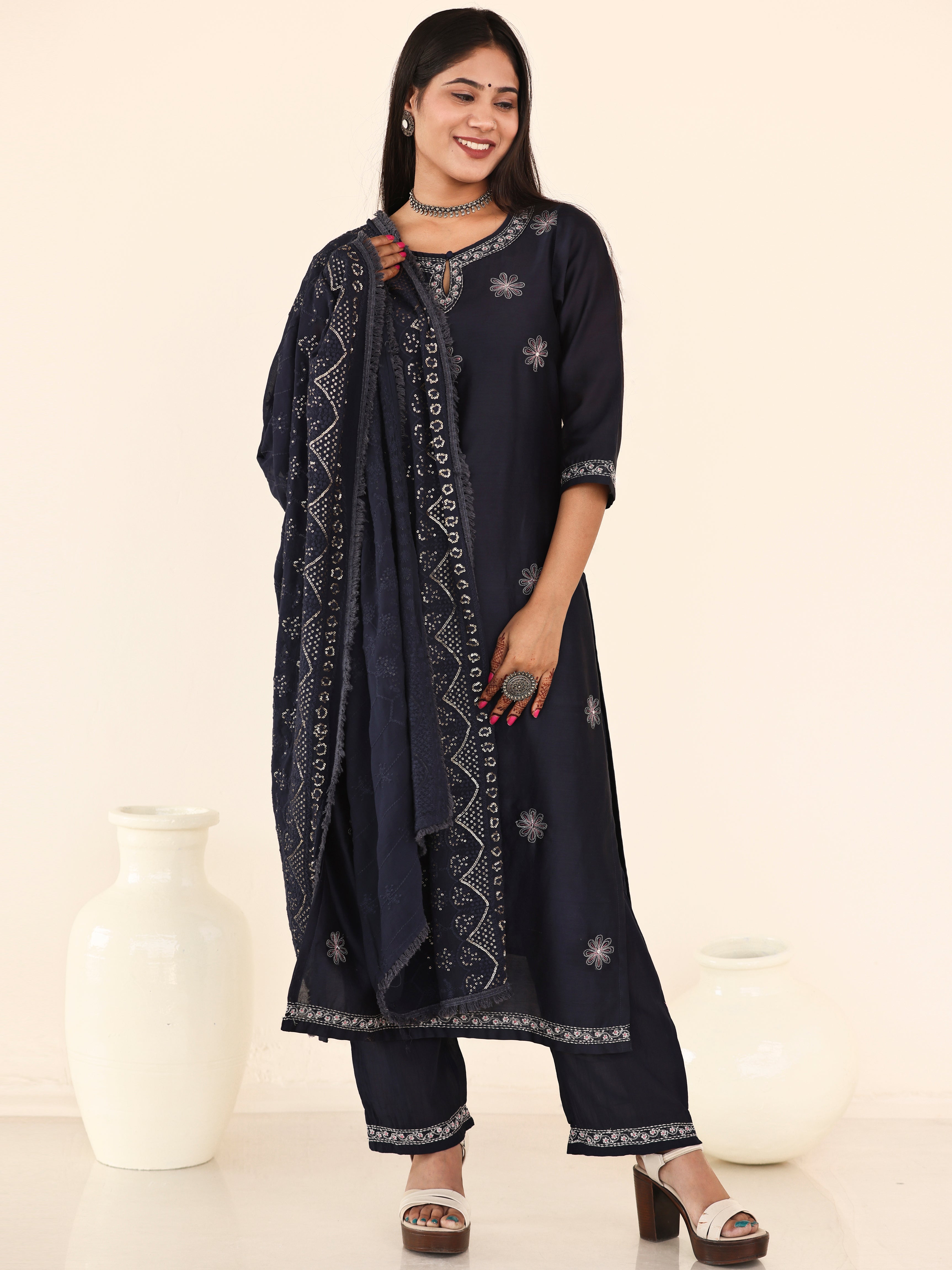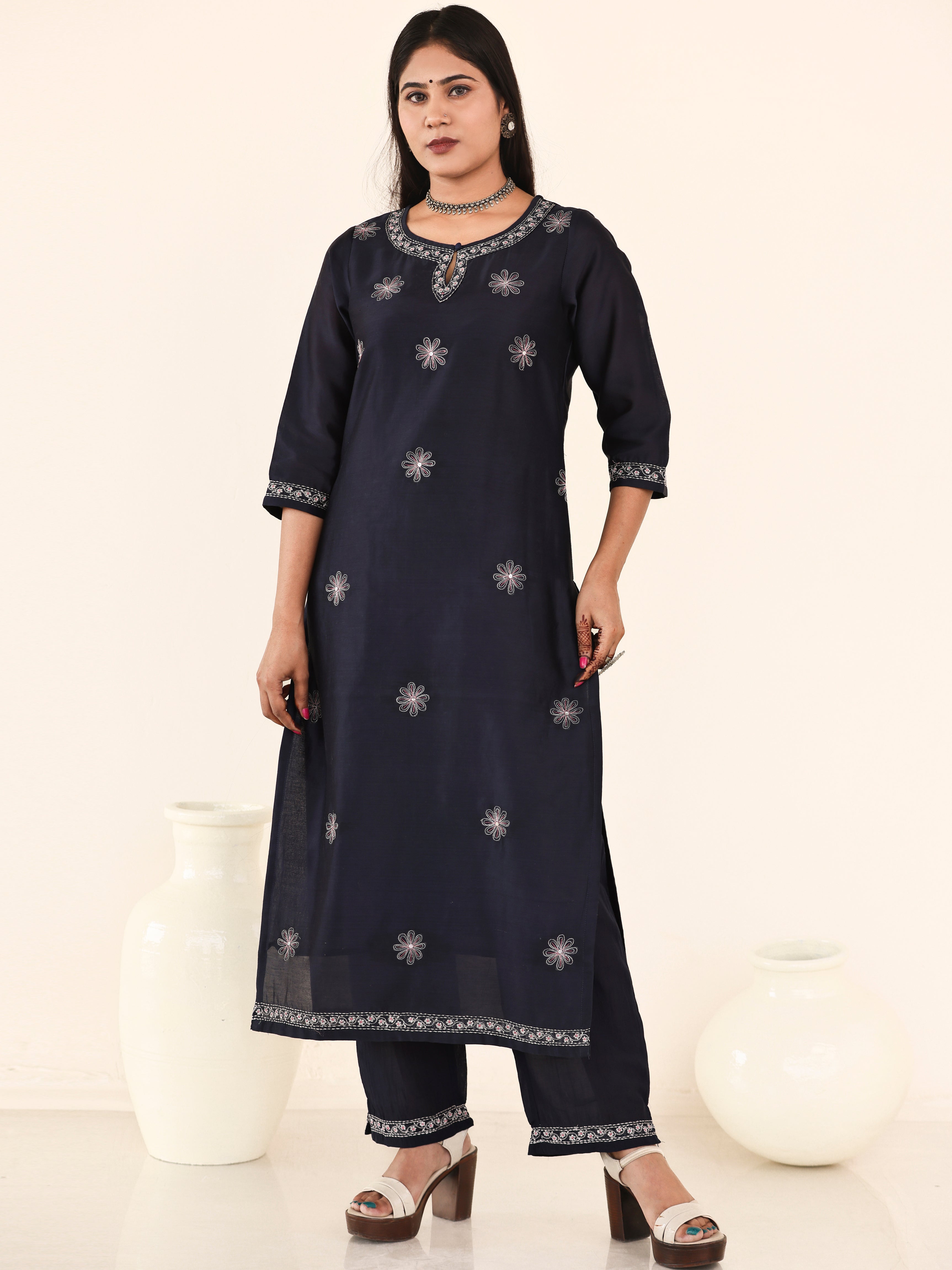Product: This set contains Handcrafted Premium Chanderi Kurta With Mul lining, Modal Silk Pants and Georgette Dupatta with Embroidery.