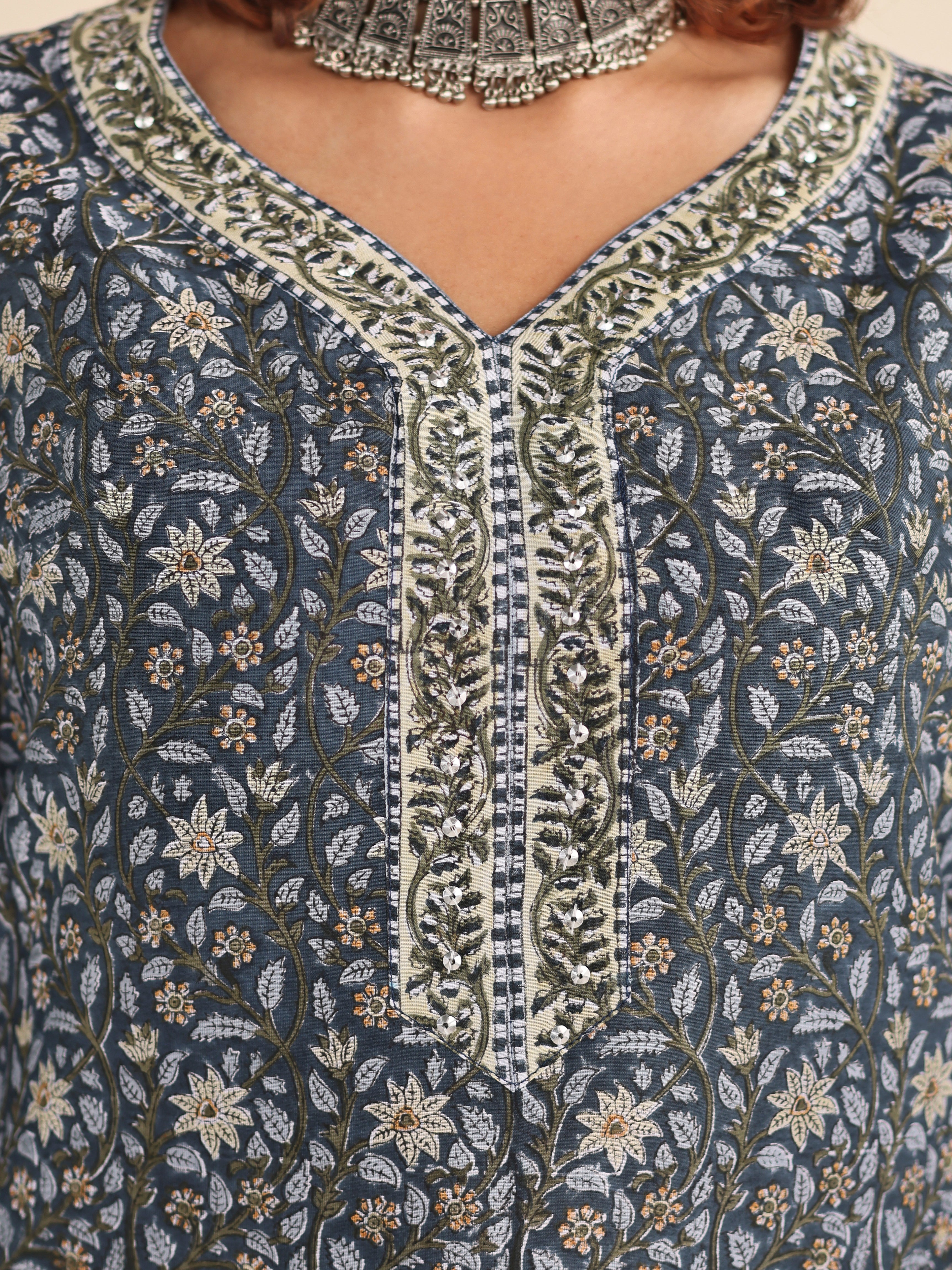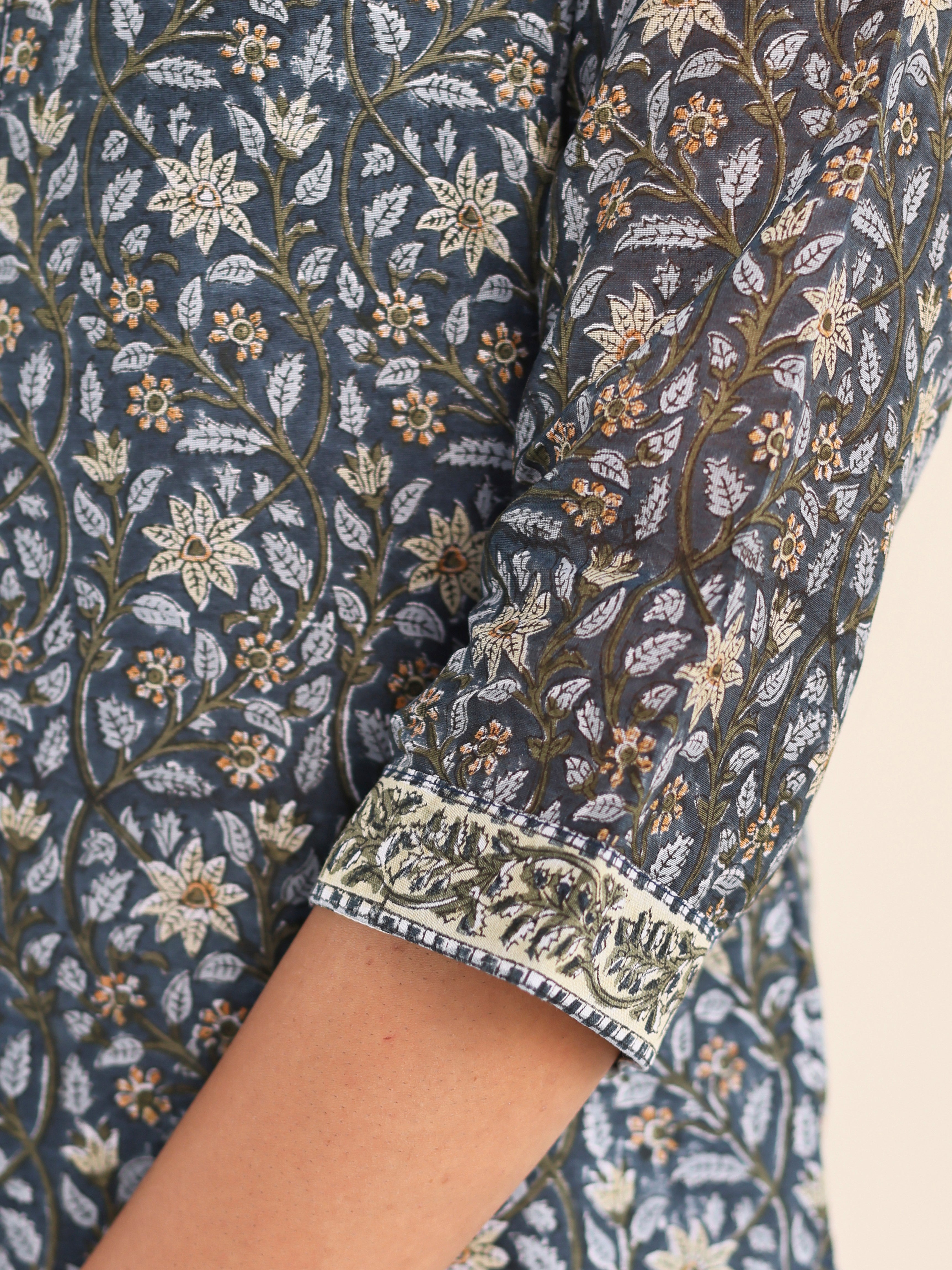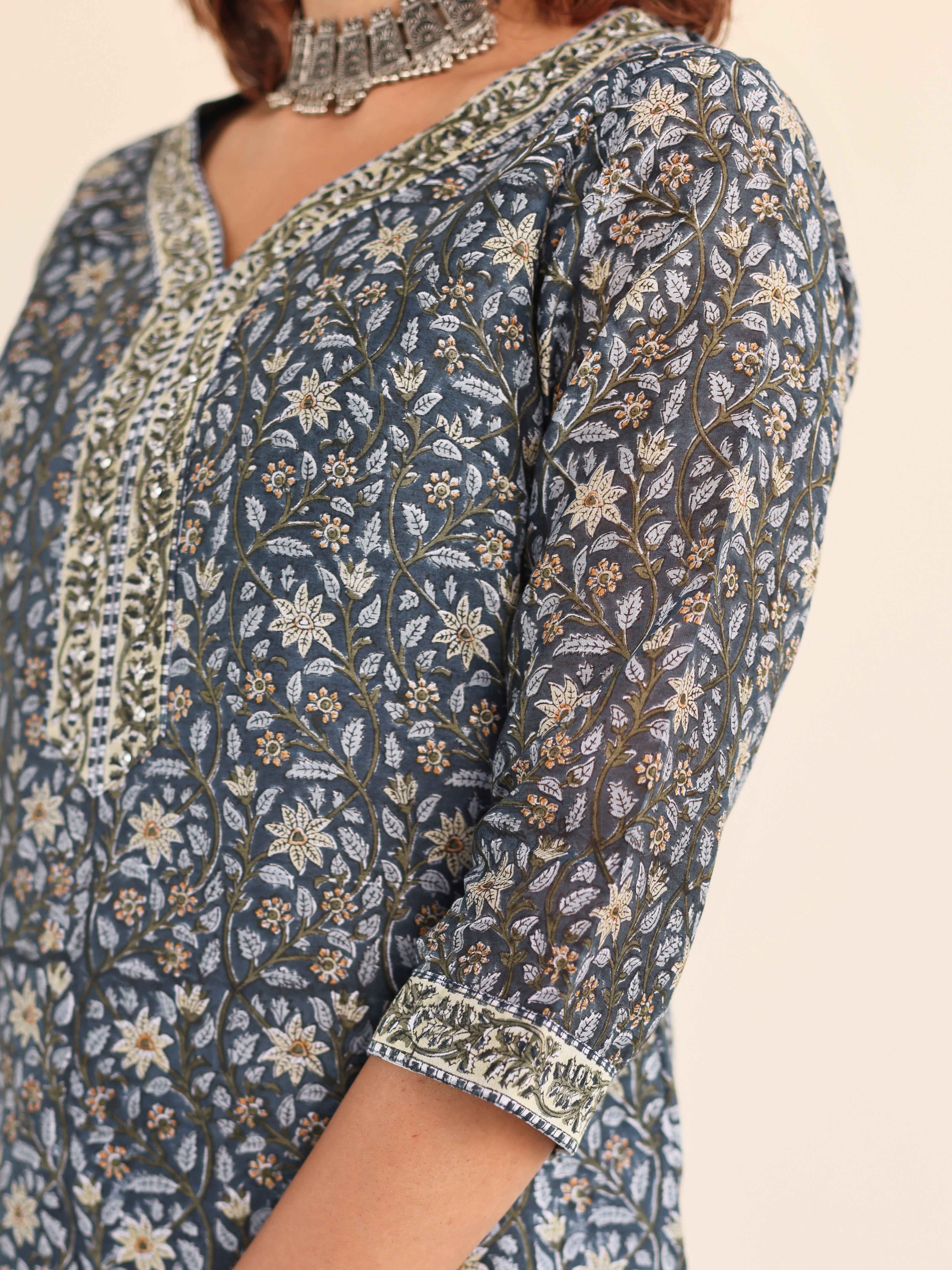 Product: This set contains Handcrafted Sanganeri Premium Chanderi Kurta With Mul lining, Modal Silk Pants and Chanderi Silk Dupatta.