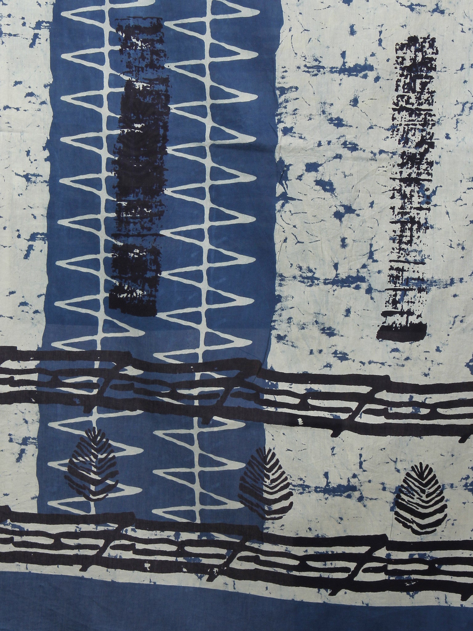 Indigo Ivory Black Grey Mughal Nakashi Ajrakh Hand Block Printed Cotton Stole - S63170168