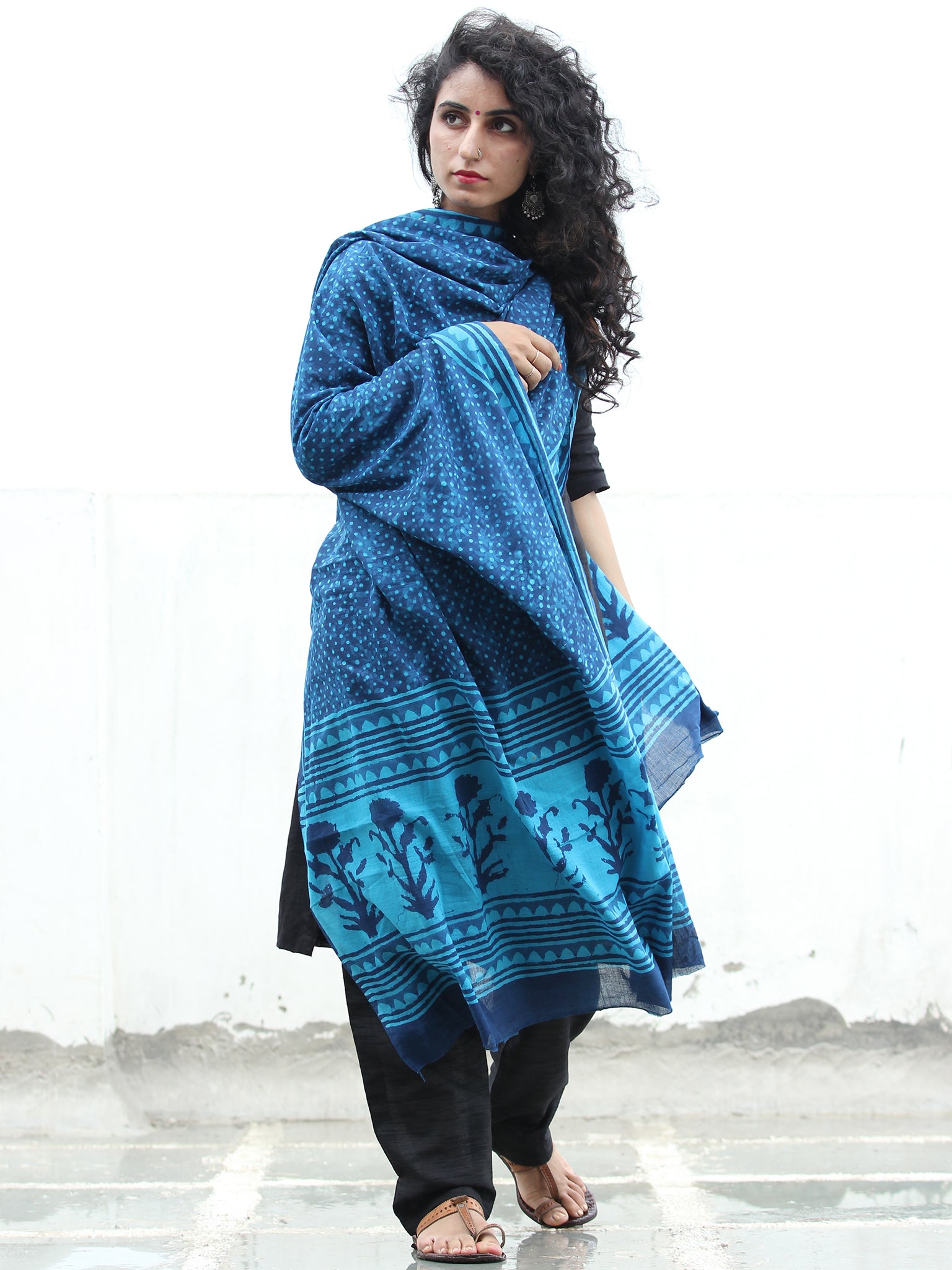 Indigo Sky Blue Cotton Hand Block Printed Dupatta - D04170424