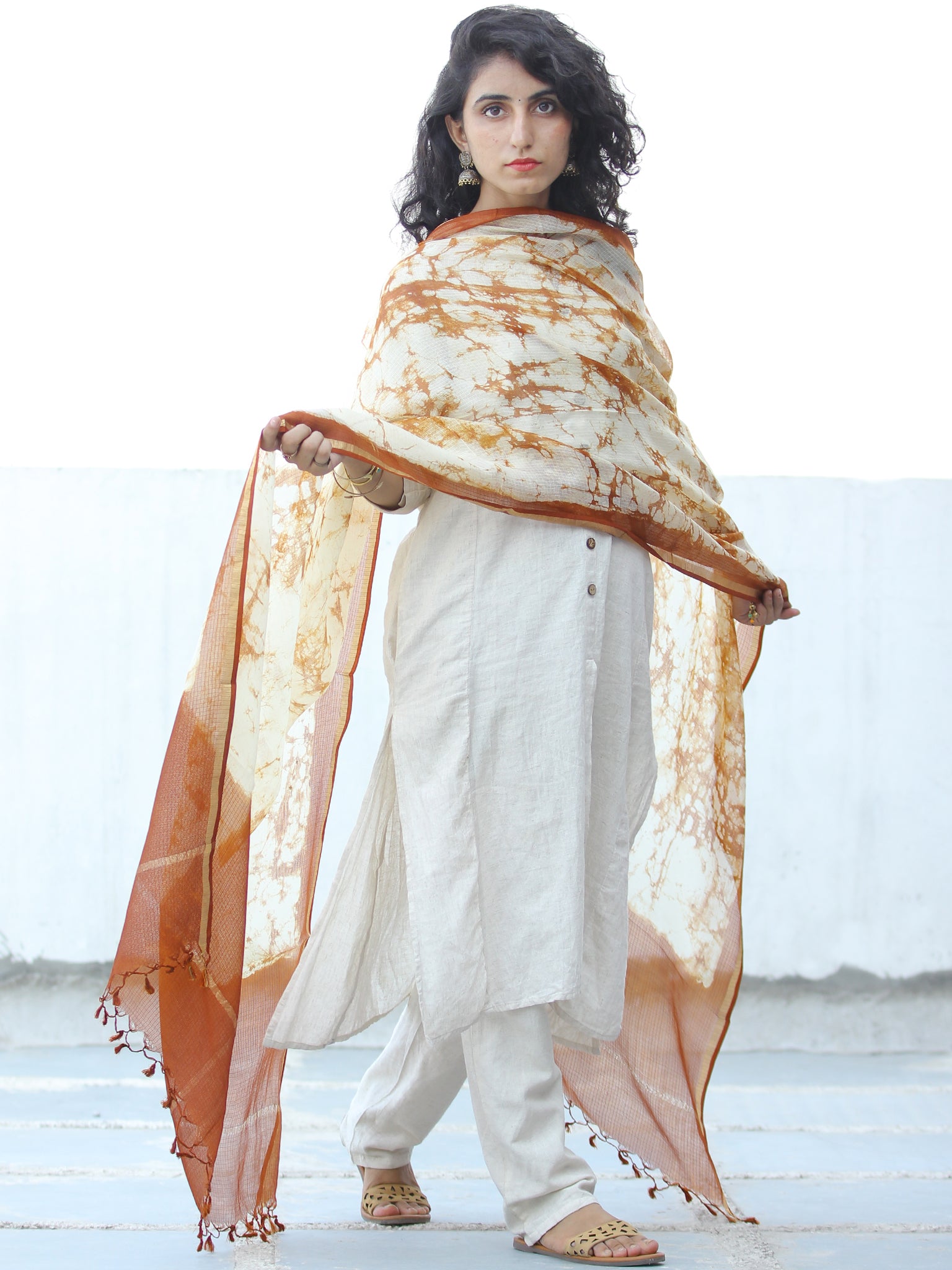 Ivory Light Brown Kota Silk Hand Block Printed Dupatta - D04170640