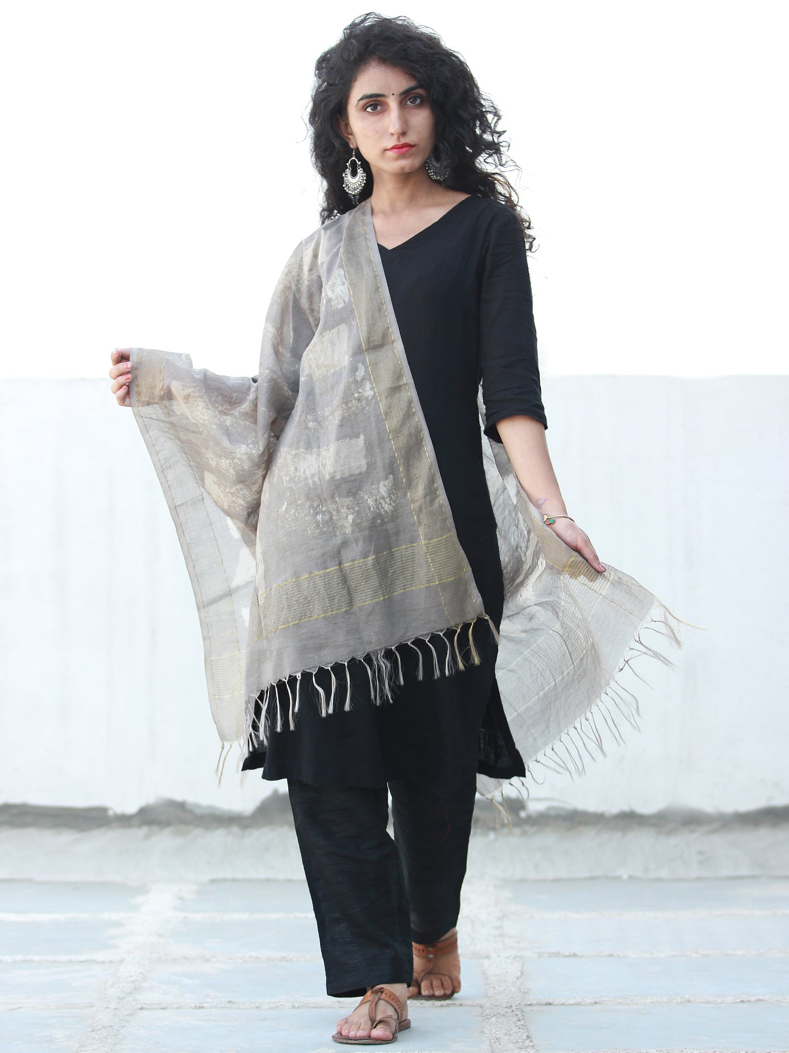 Kashish Ivory Chanderi Hand Block Printed Dupatta - D04170468