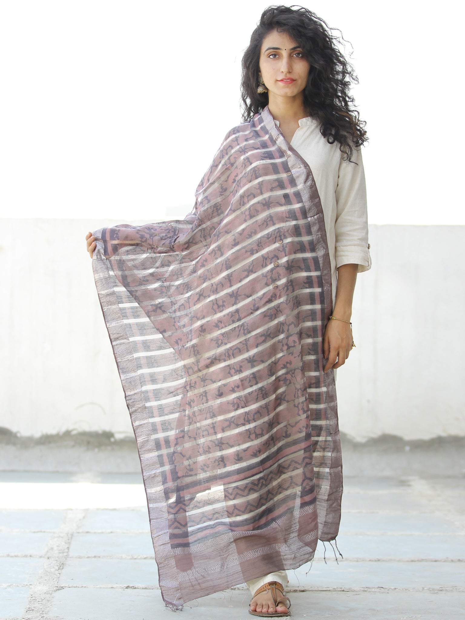 Lemonade Pink Pink Silver Cotton Art Silk Hand Block Printed Dupatta - D04170627
