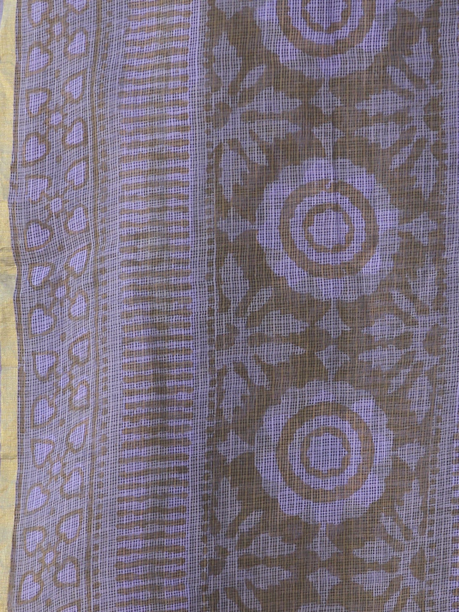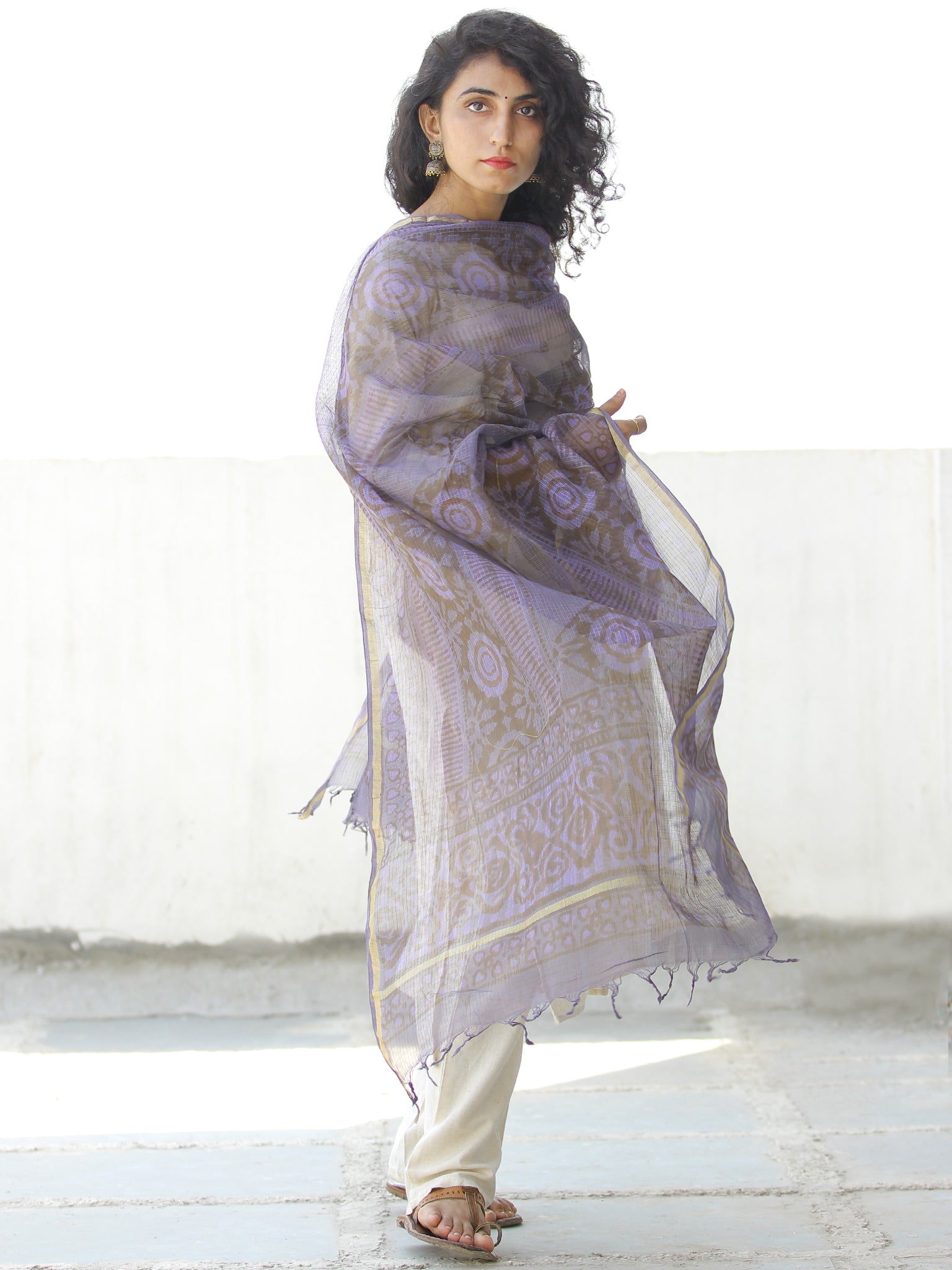 Purple Grey Kota Silk Hand Block Printed Dupatta - D04170535