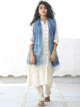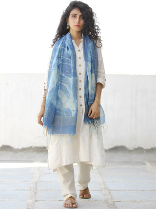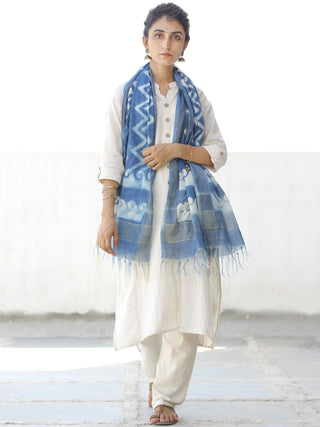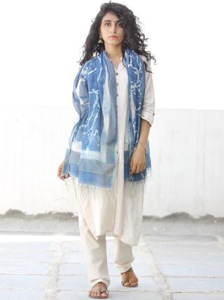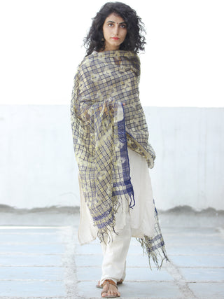 Light Yellow Blue Silver Cotton Art Silk Hand Block Printed Dupatta - D04170605