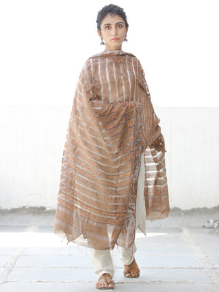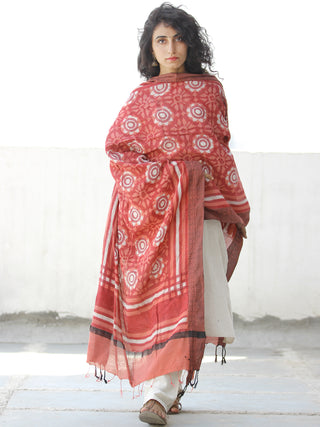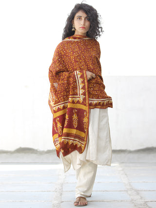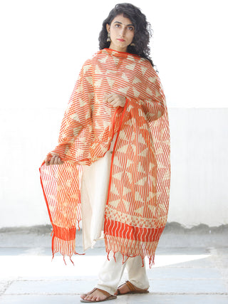 Orange Ivory Cotton Art Silk Hand Block Printed Dupatta - D04170539