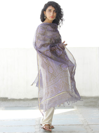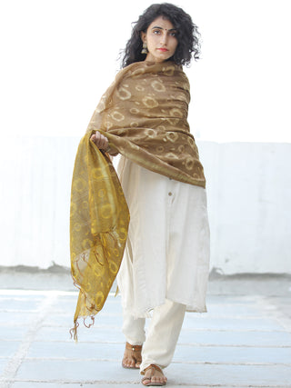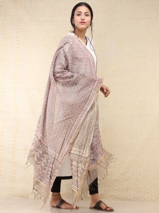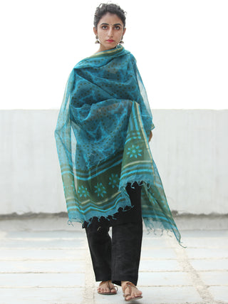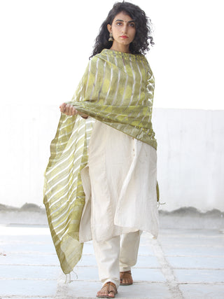 Light Olive Green Silver Cotton Silk Hand Block Printed Dupatta - D04170595