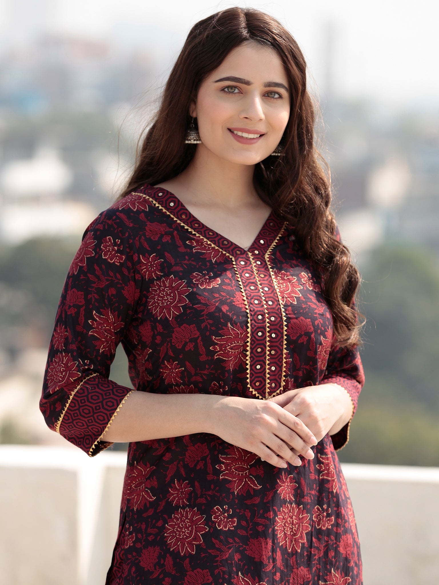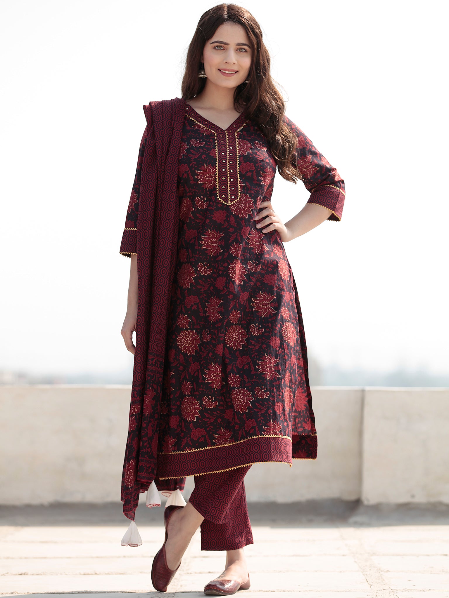 Product: This set contains Handcrafted Sanganeri Premium Cotton Kurta, 100% Cotton Pants and Cotton Dupatta.
