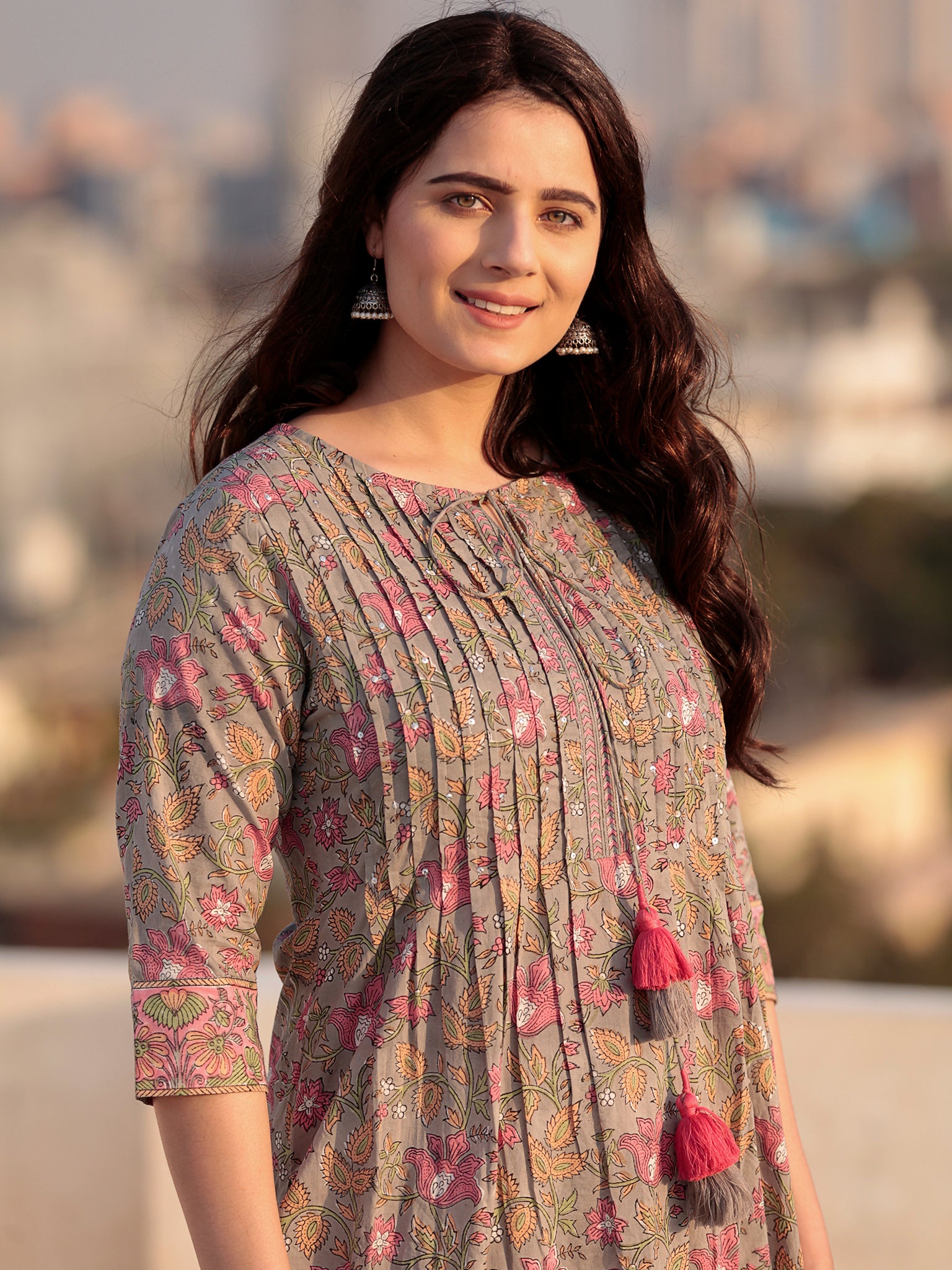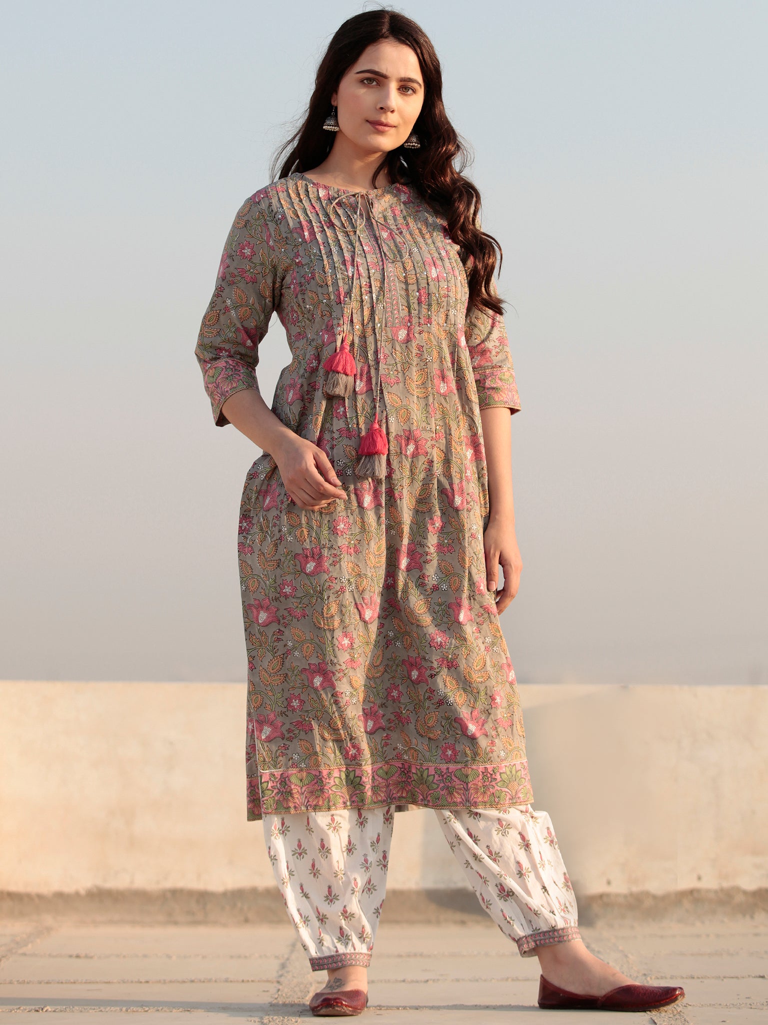 Product: This set contains Handcrafted Sanganeri Premium Cotton Kurta, 100% Cotton Pants and Cotton Dupatta.