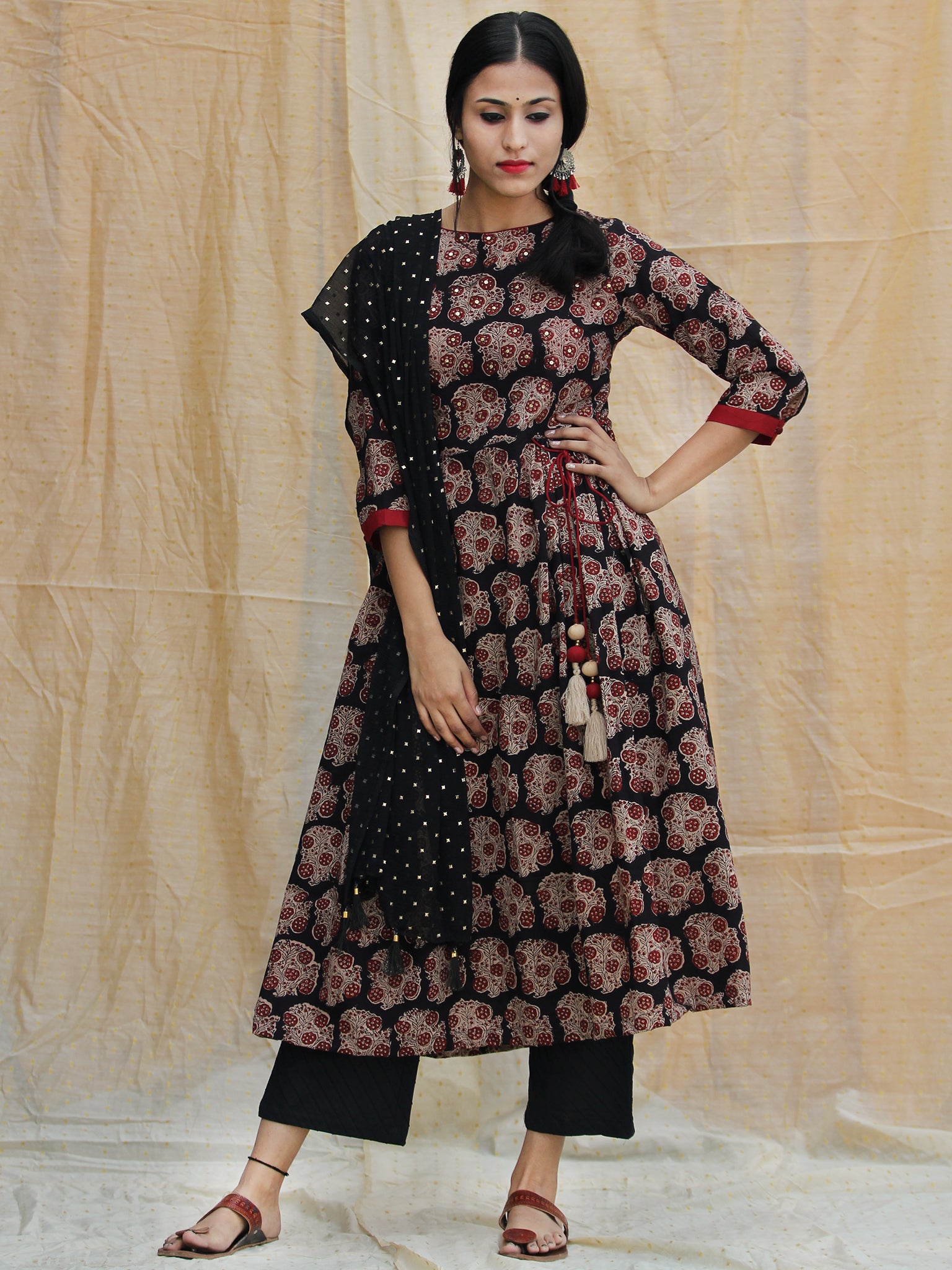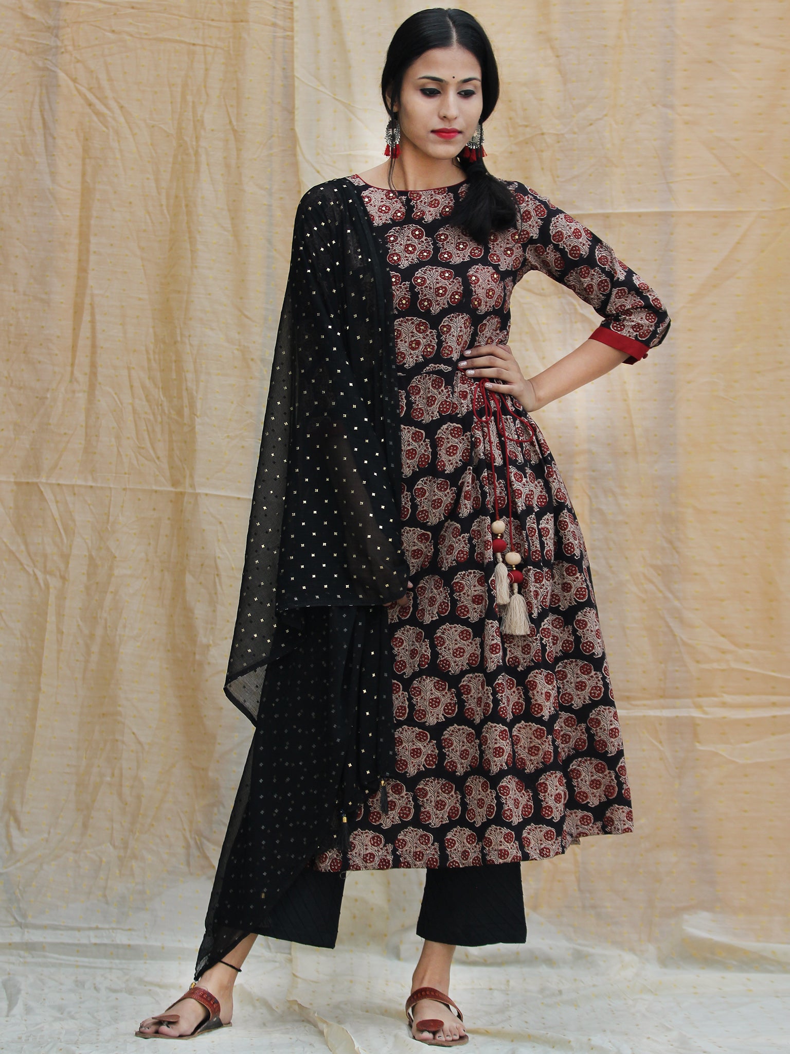Aabida - Hand Block Printed Anarkali Kurta Palazzo Set With Dupatta - SS01F1806
