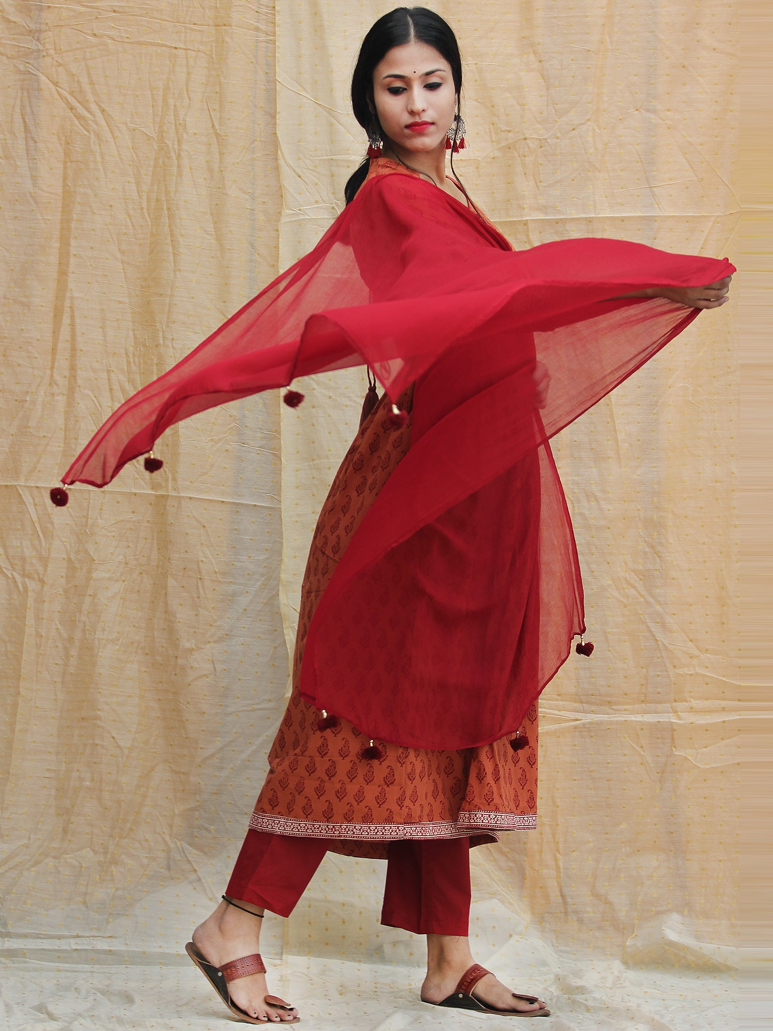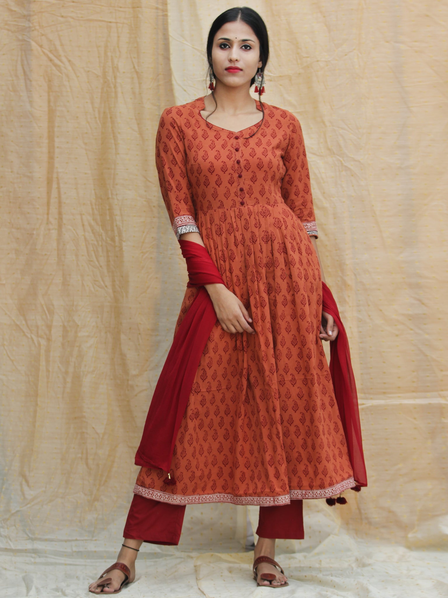 FABRIC/S: Kurta - Cotton, Palazzo - Cotton, Dupatta - Chiffon.
