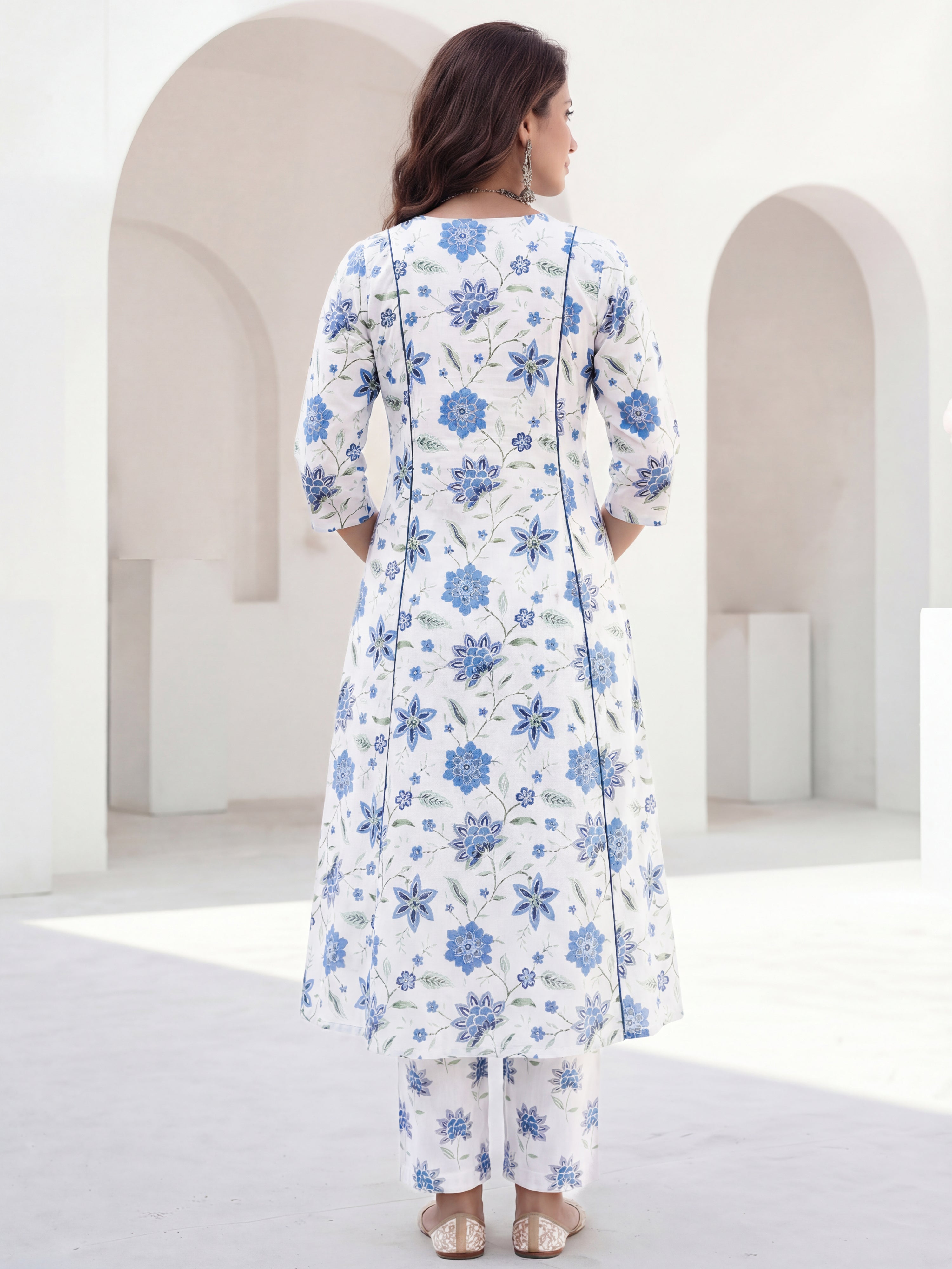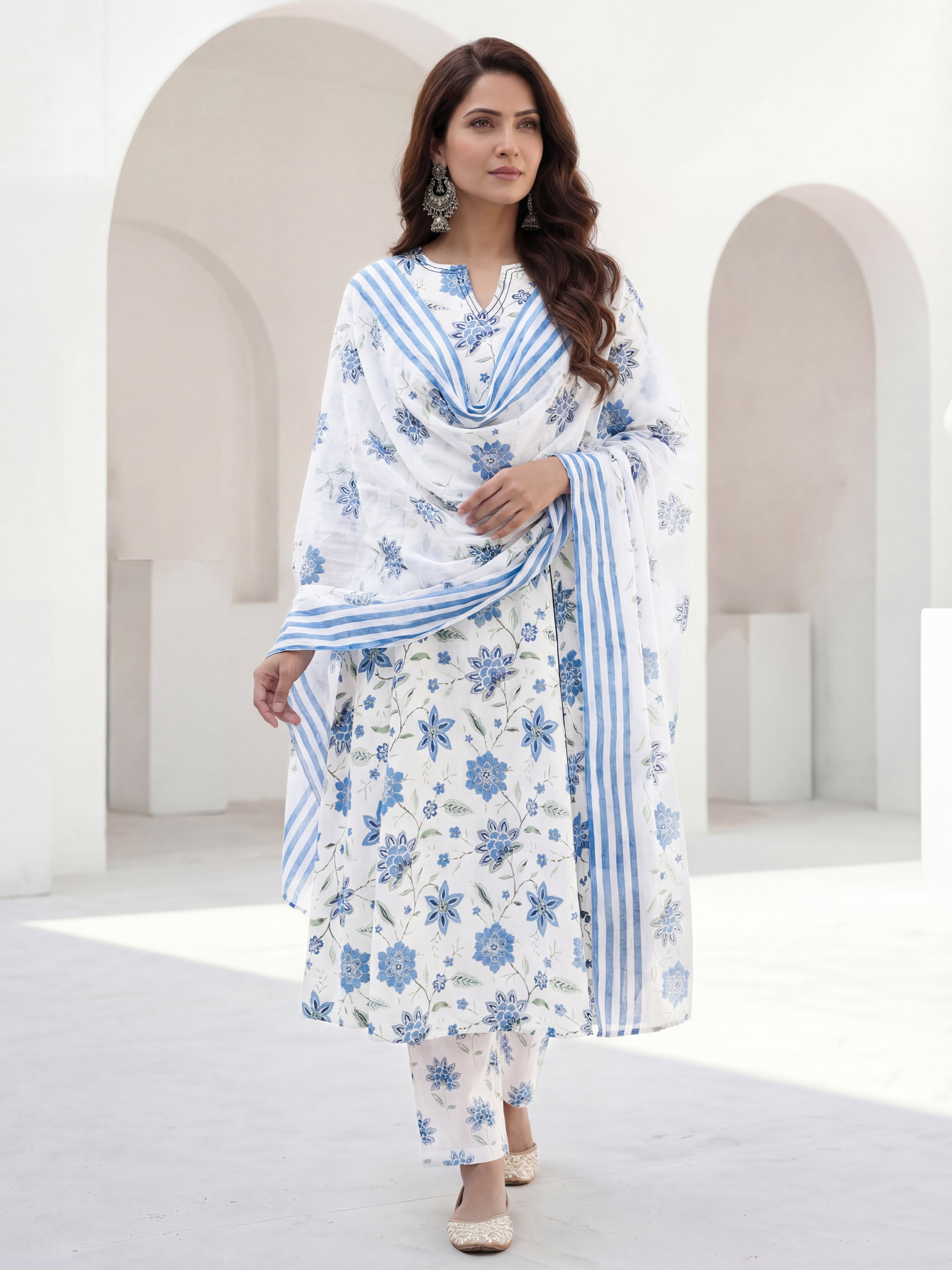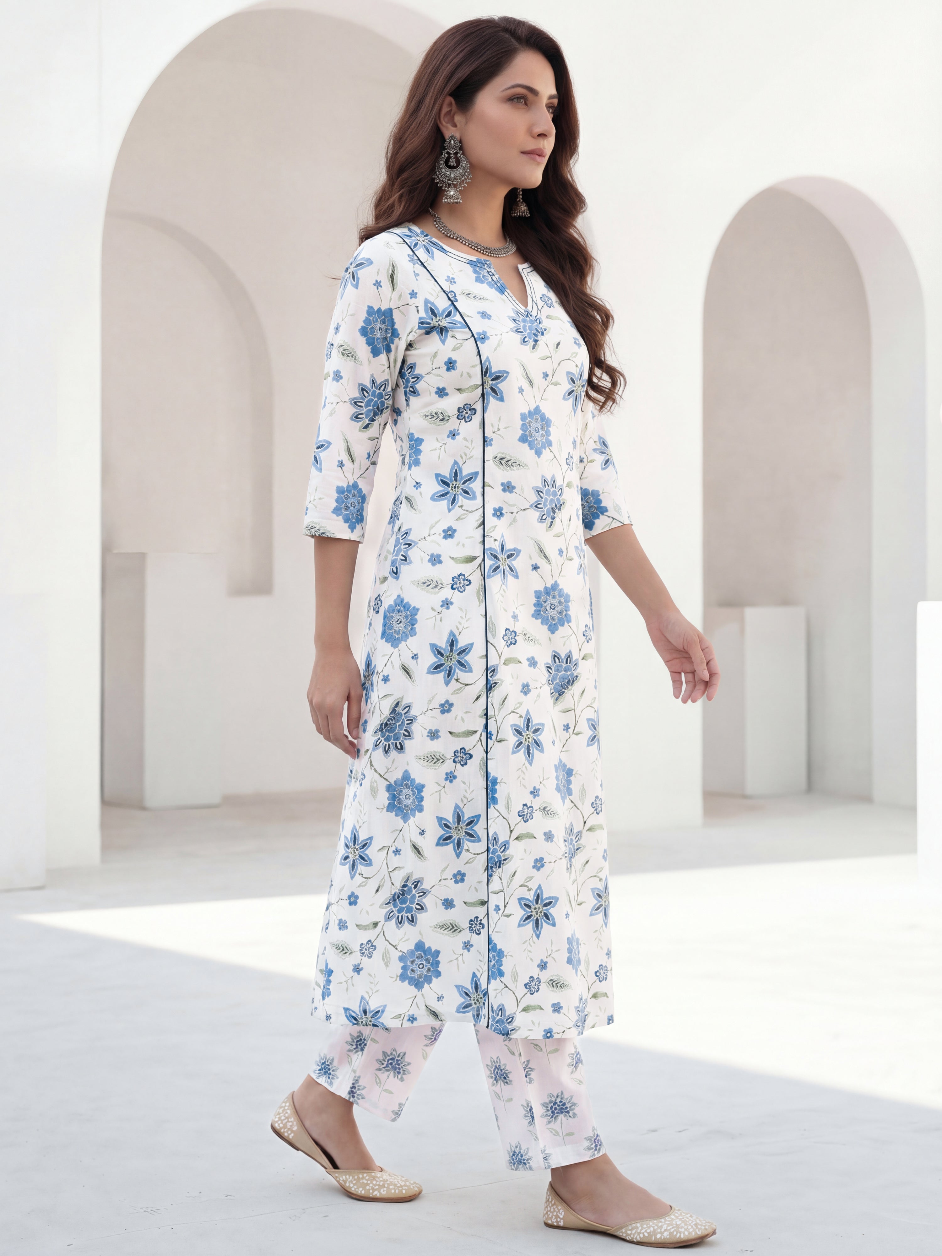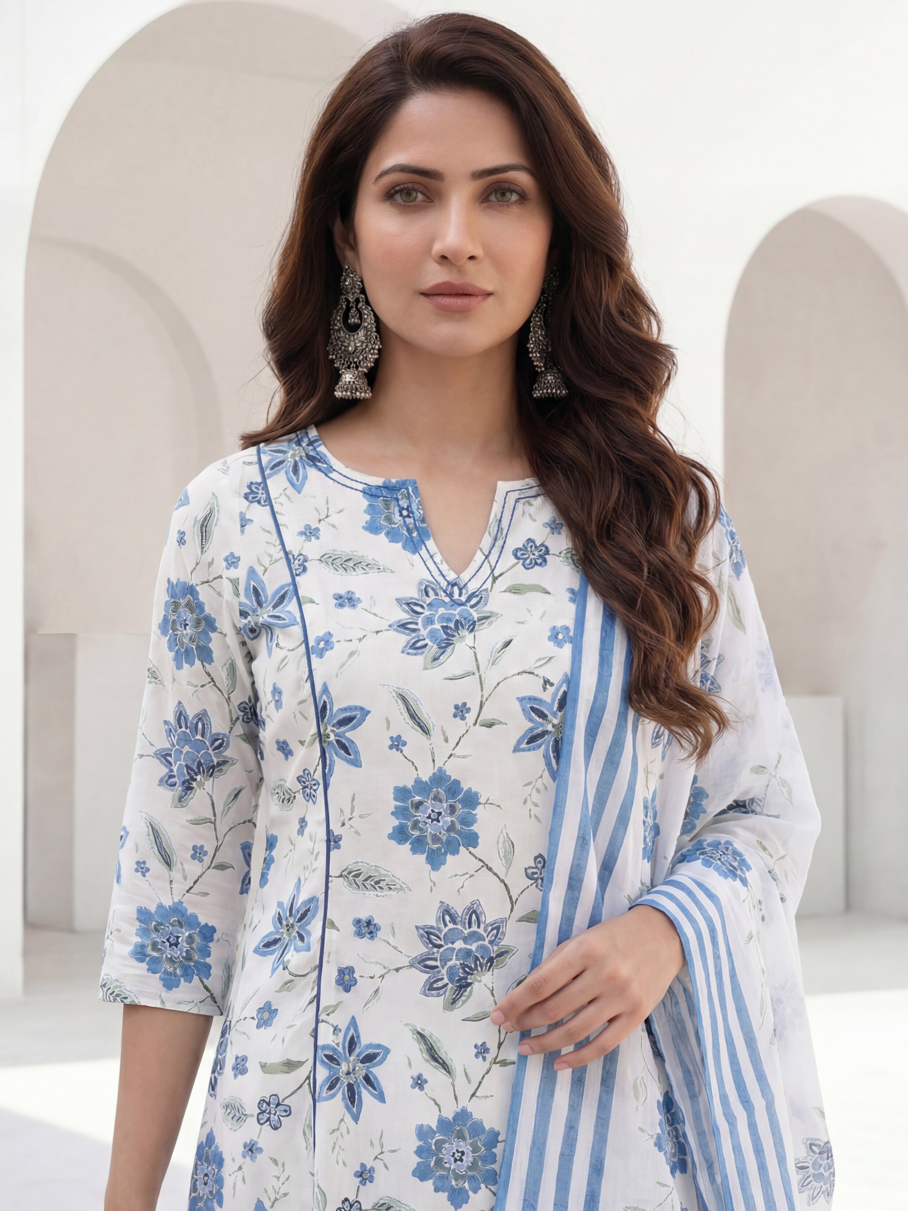 Product: This set contains Hand Block Printed Premium Cotton Kurta, 100% Cotton Pants and Cotton Dupatta.