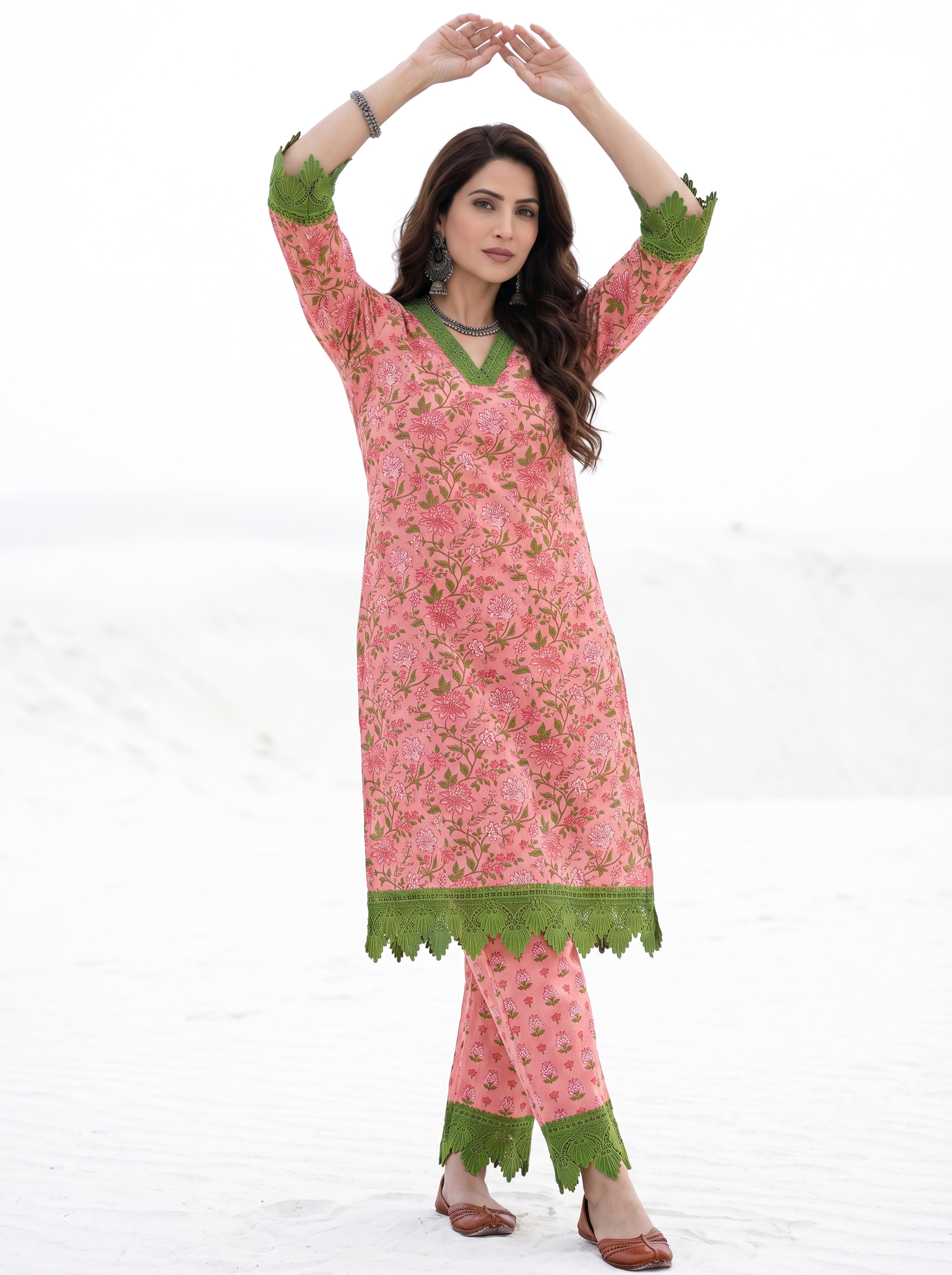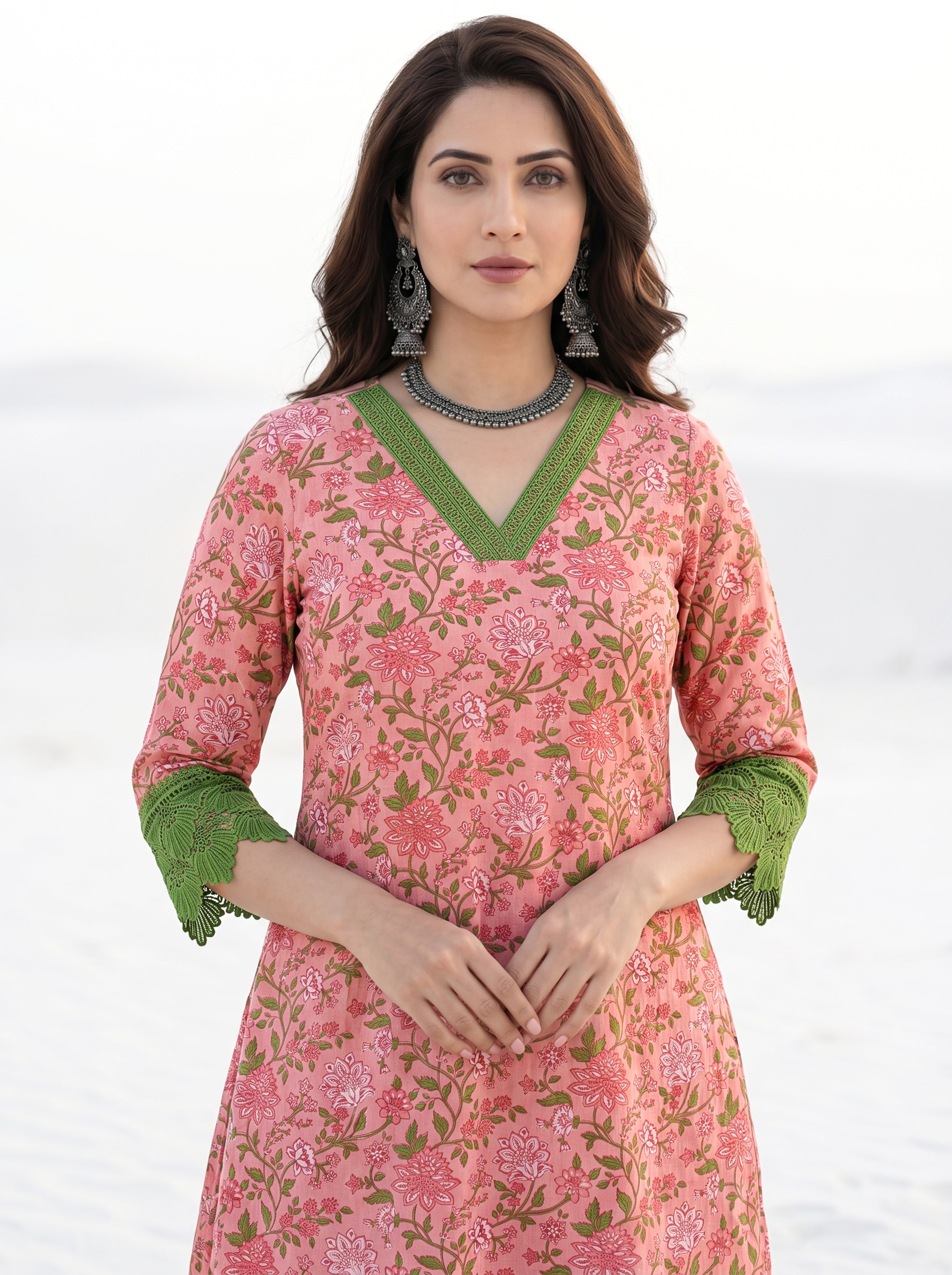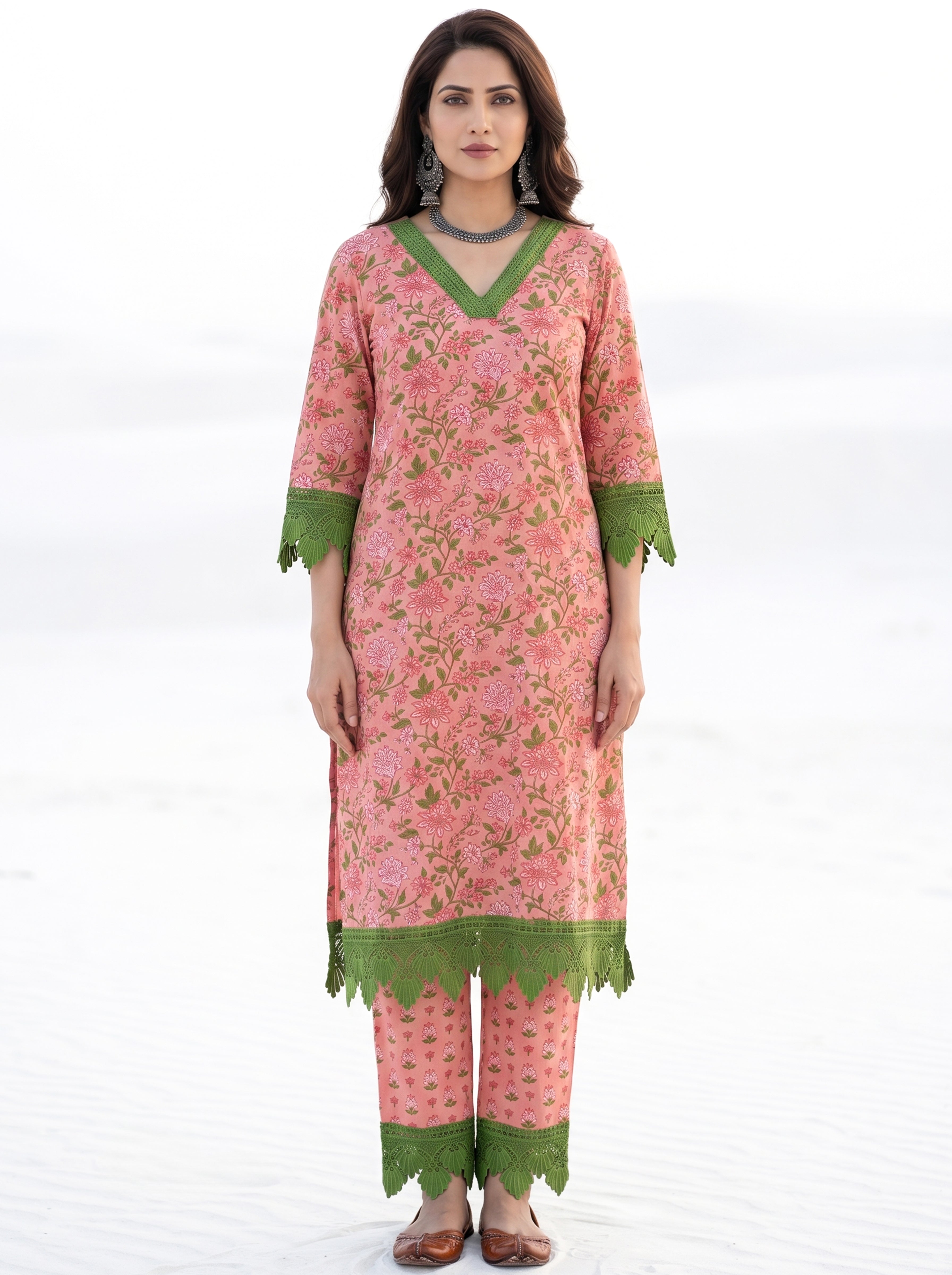 Product: Contains Hand Block Printed Cotton Kurta. Matching Pants/Bottoms and Dupatta are also available separately under BUY THE LOOK section.