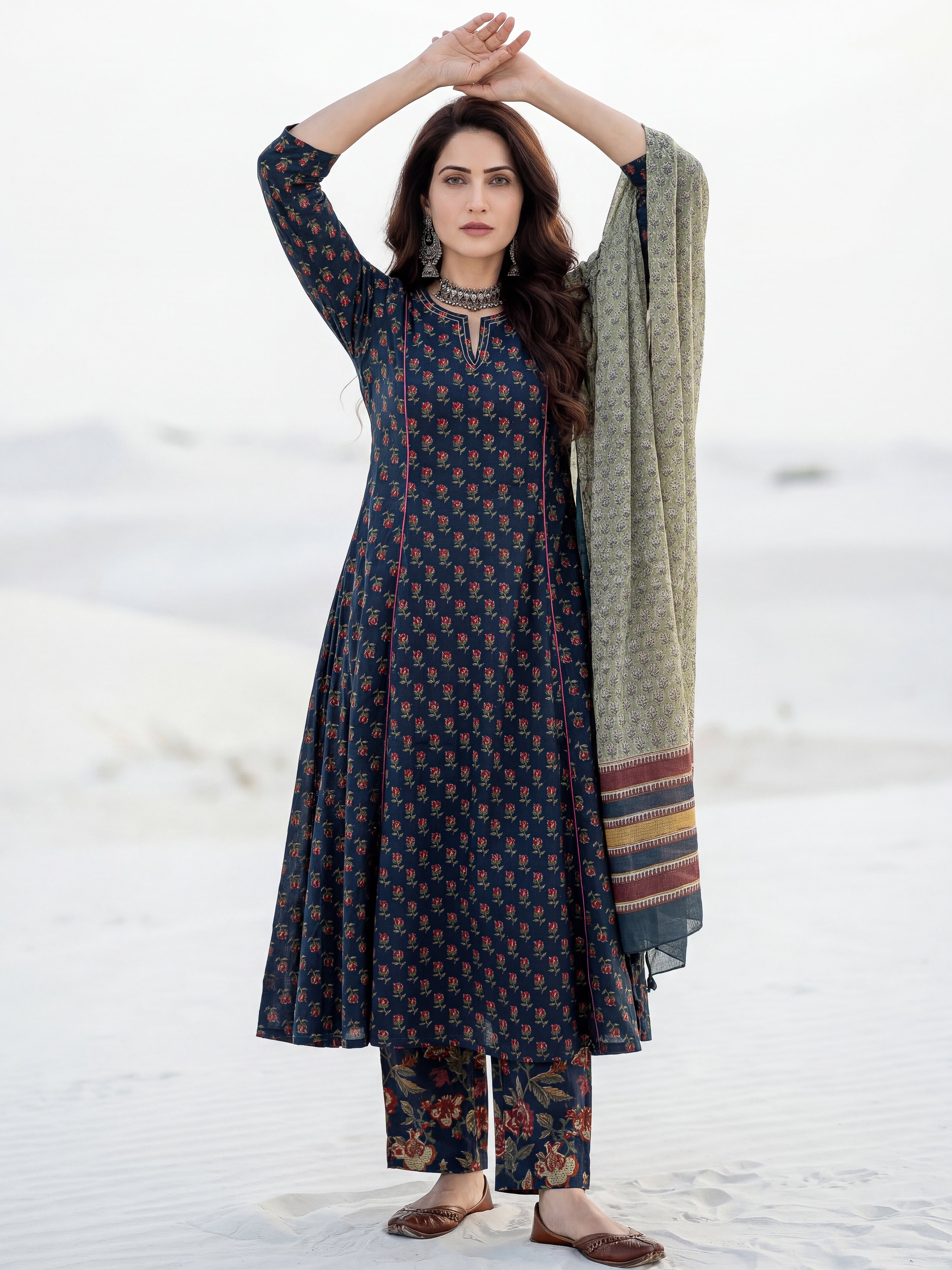 Dupatta : Cotton. Hand Printed