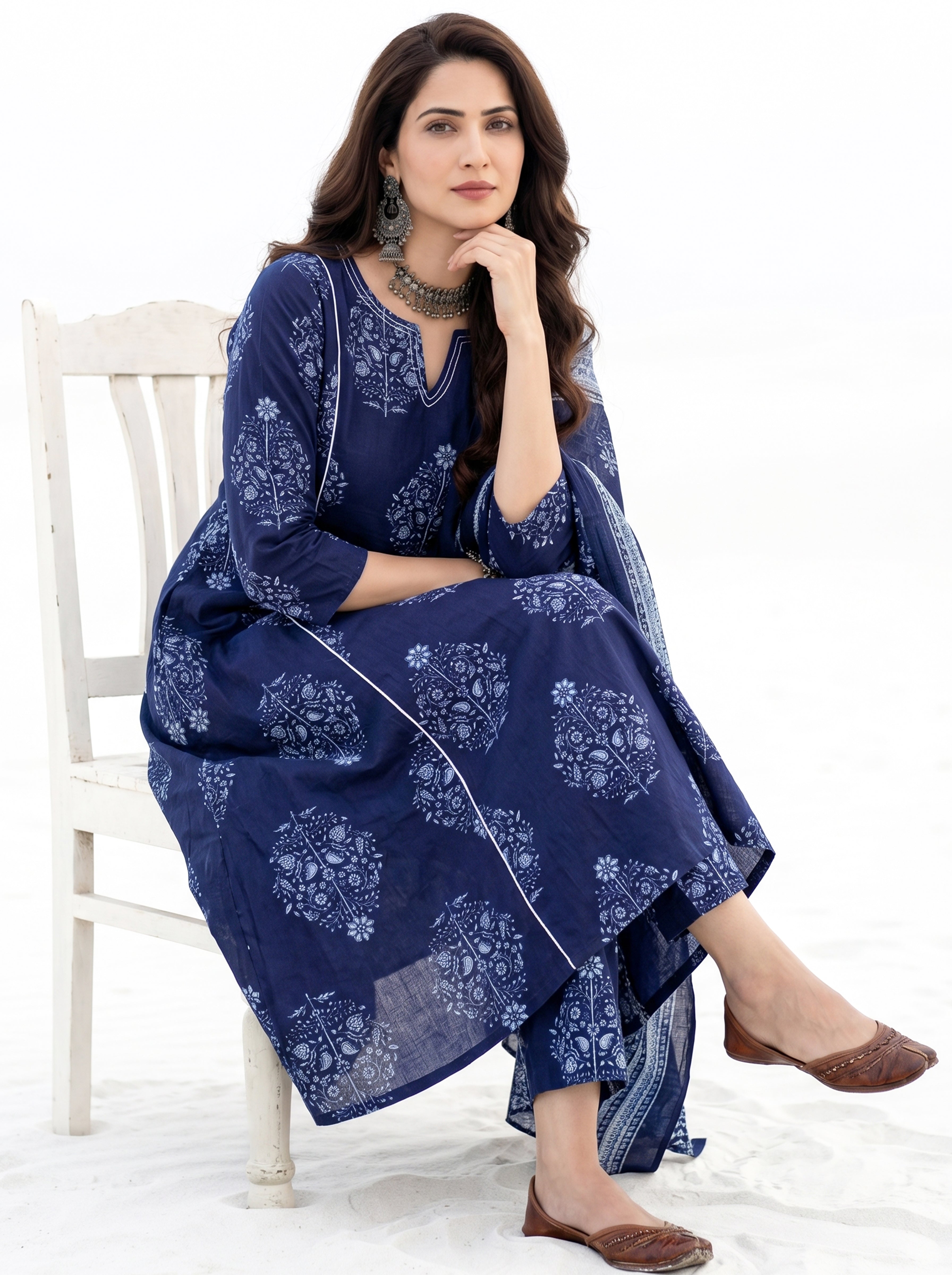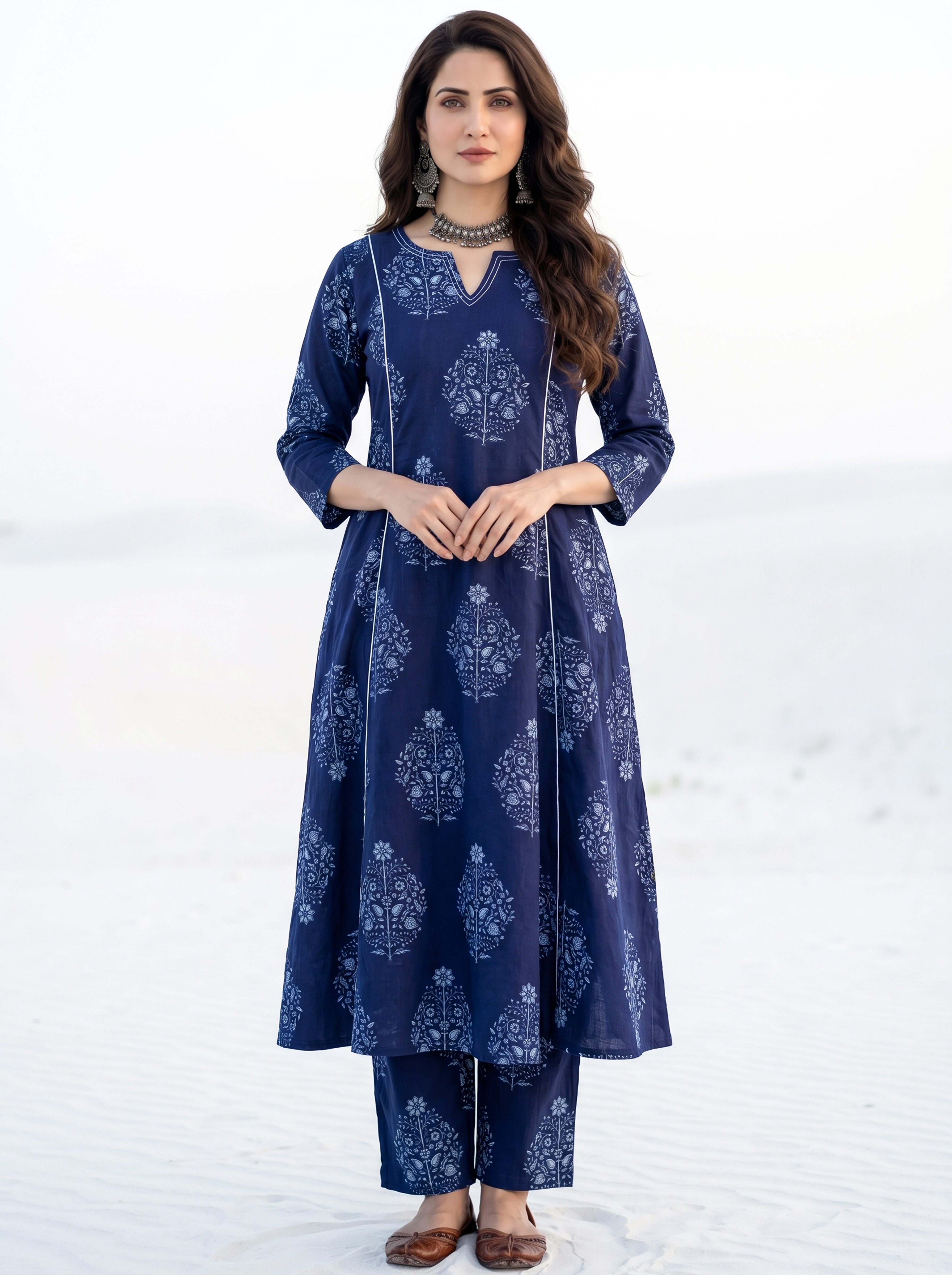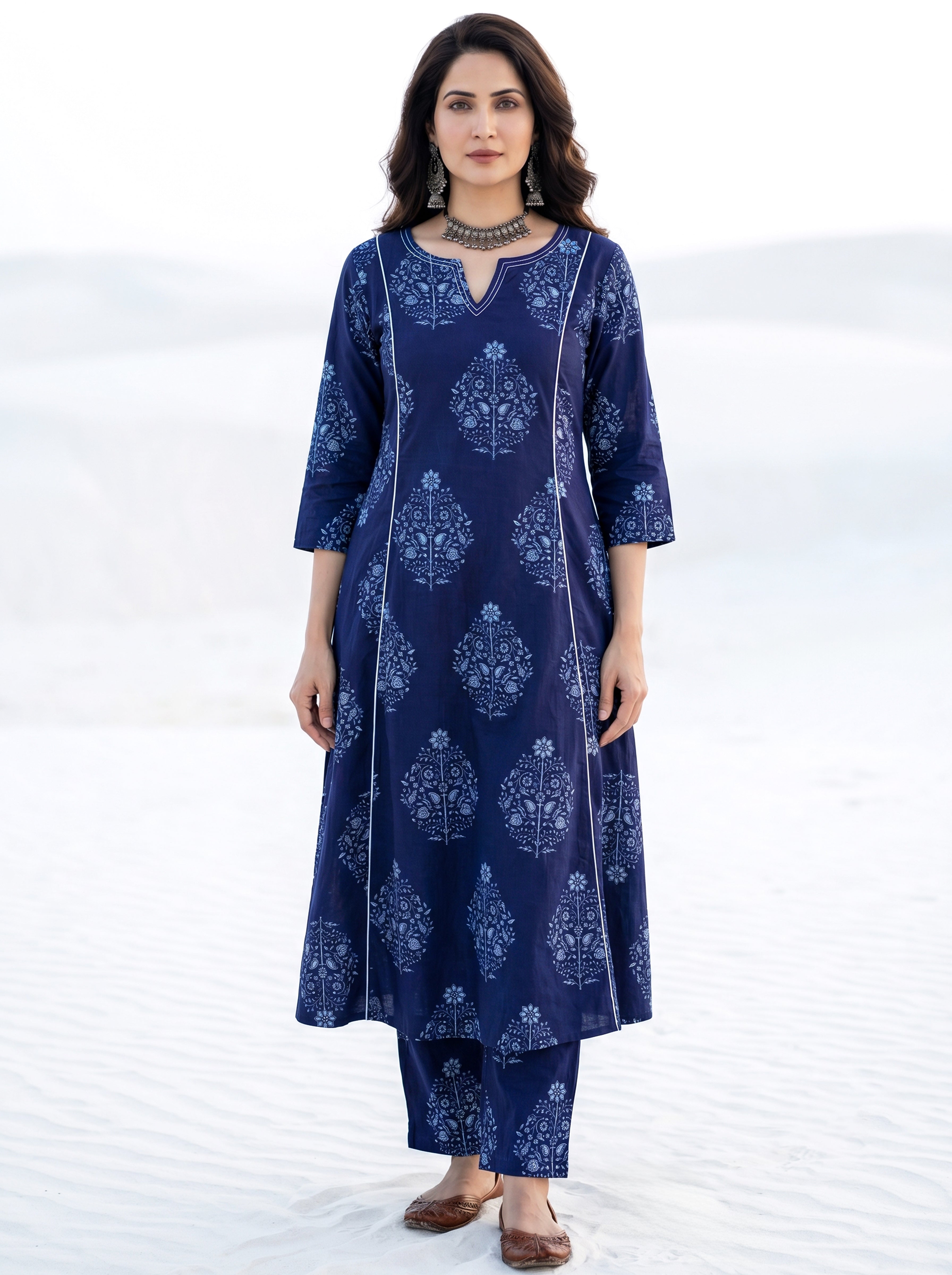 Product: Contains Hand Printed Cotton Kurta. Matching Pants/Bottoms and Dupatta are also available separately under BUY THE LOOK section.