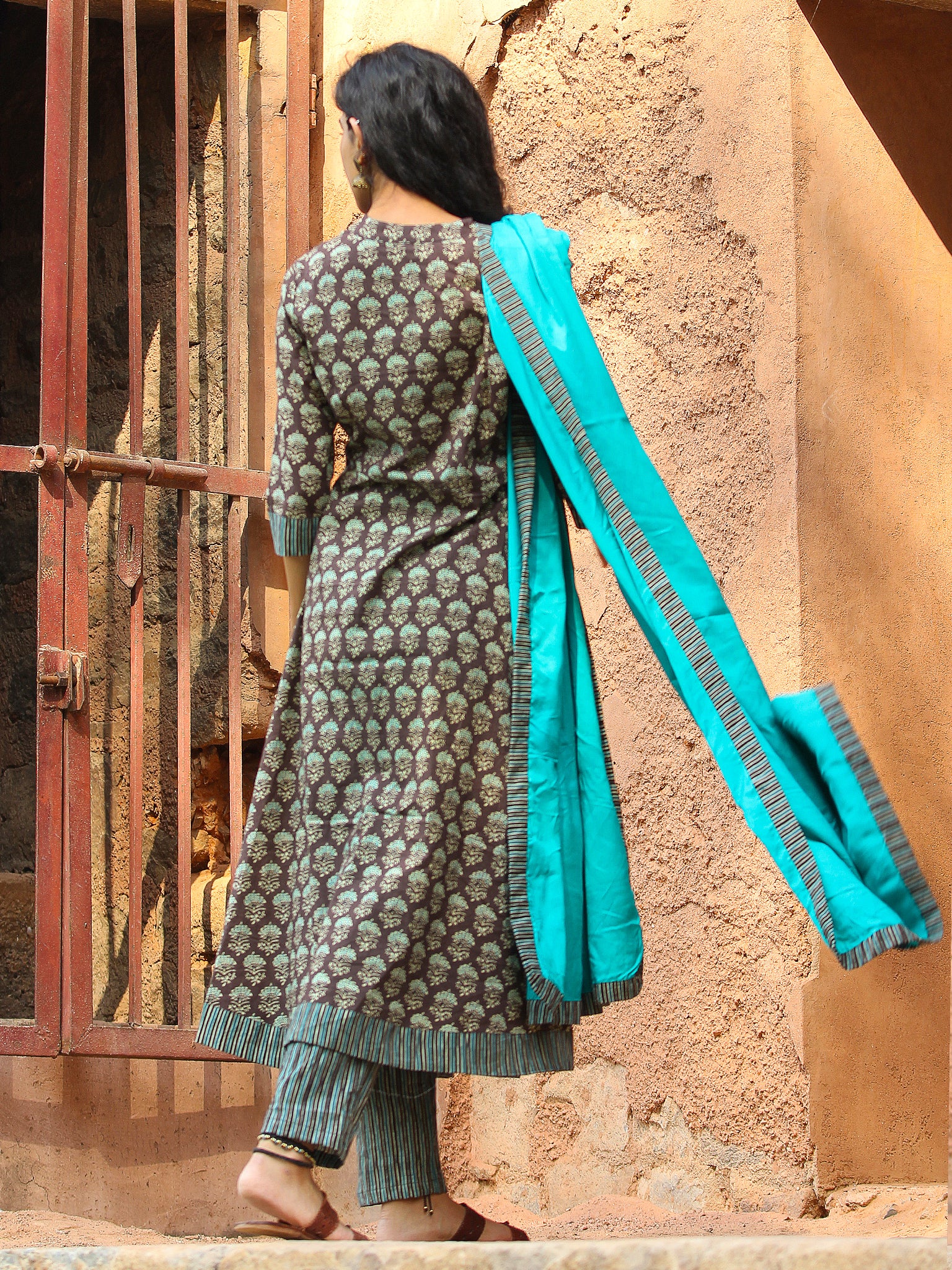 Ajrakh Guldasta - Angrakha Kurta Set With Dupatta - SS01F1869