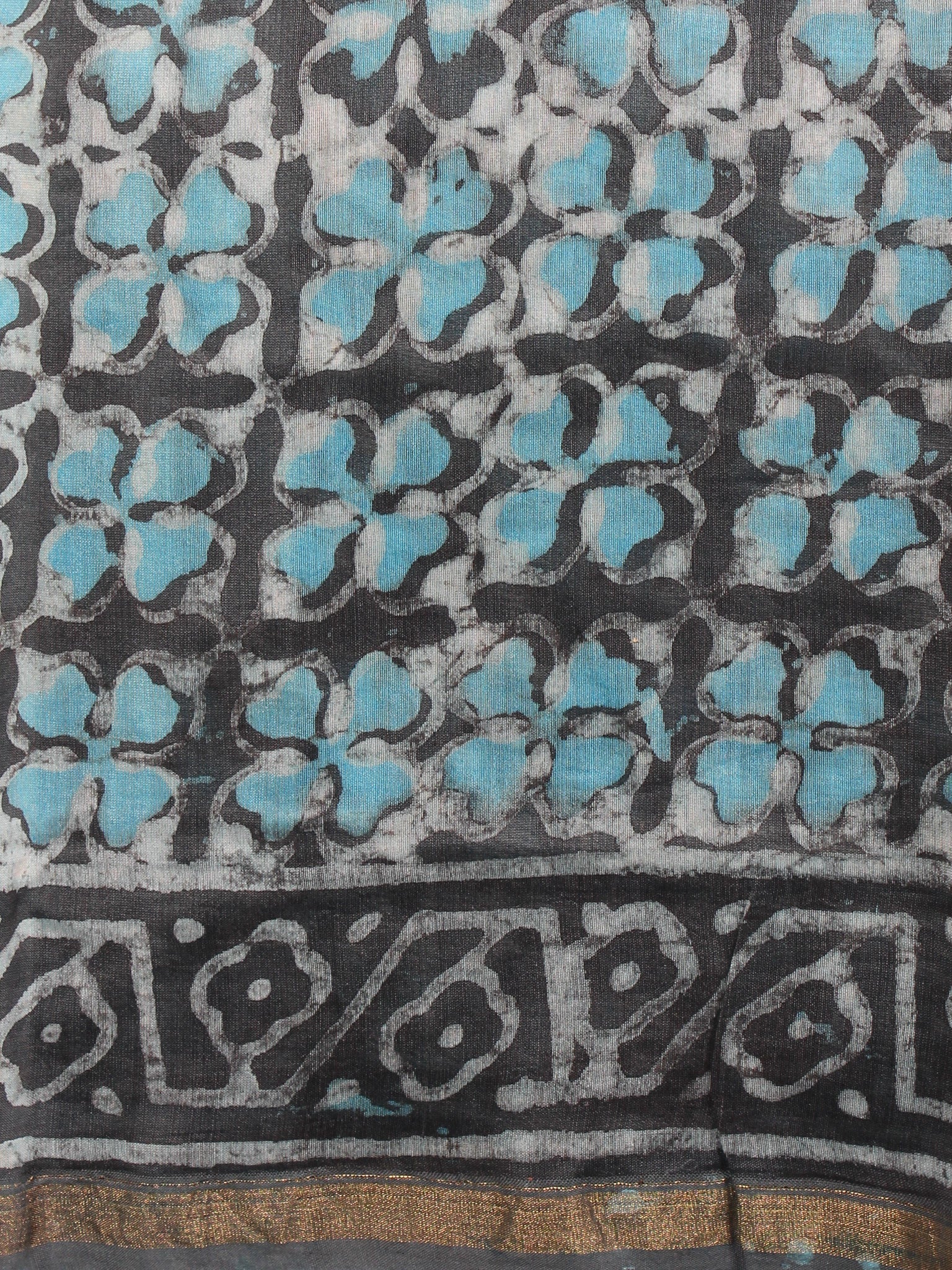 Arctic Blue Grey Ivory Hand Block Printed Chanderi Unstitched Kurta & Chanderi Dupatta With Cotton Salwar - S1628183