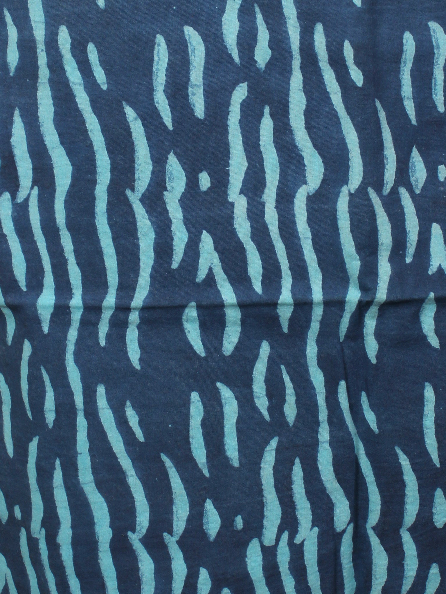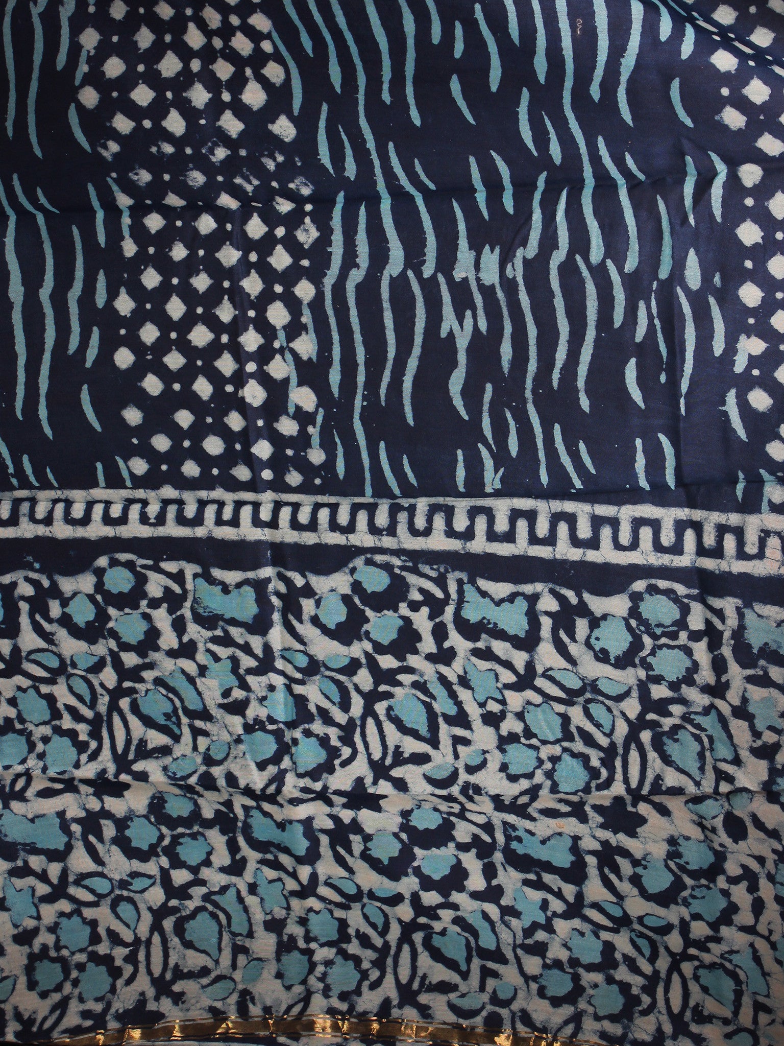Arctic Blue Indigo Ivory Hand Block Printed Chanderi Unstitched Kurta & Chanderi Dupatta With Cotton Salwar - S1628185