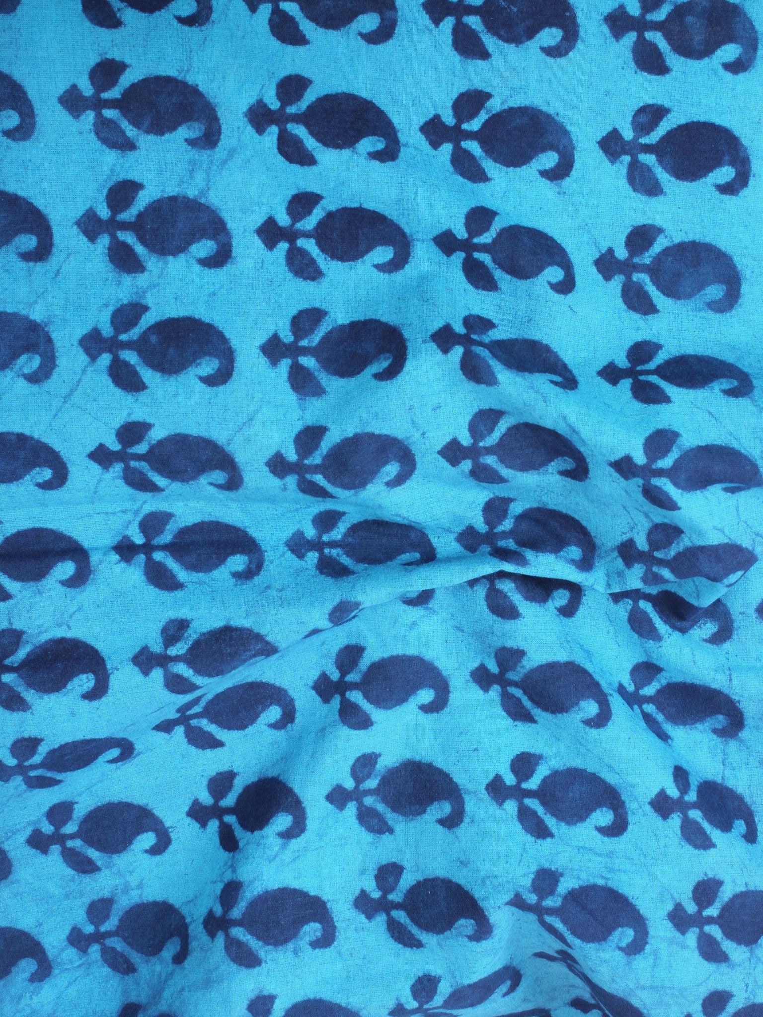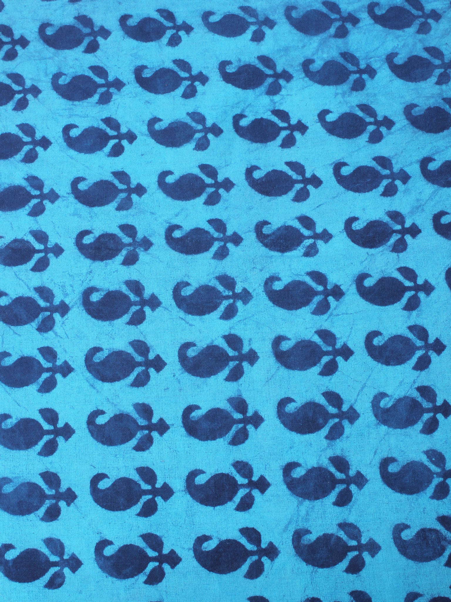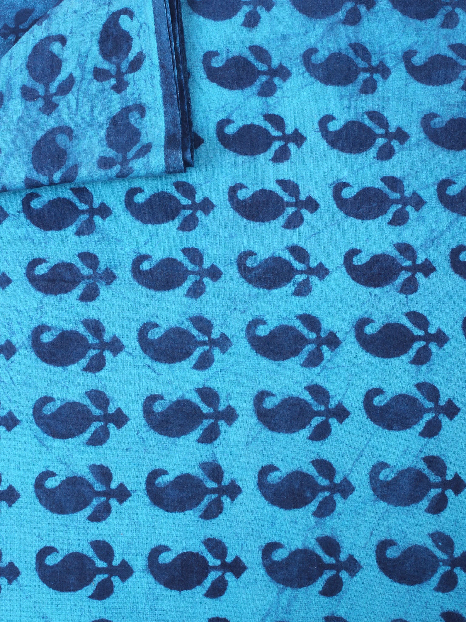Azure and Indigo Natural Dyed Hand Block Printed Cotton Fabric Per Meter - F0916202