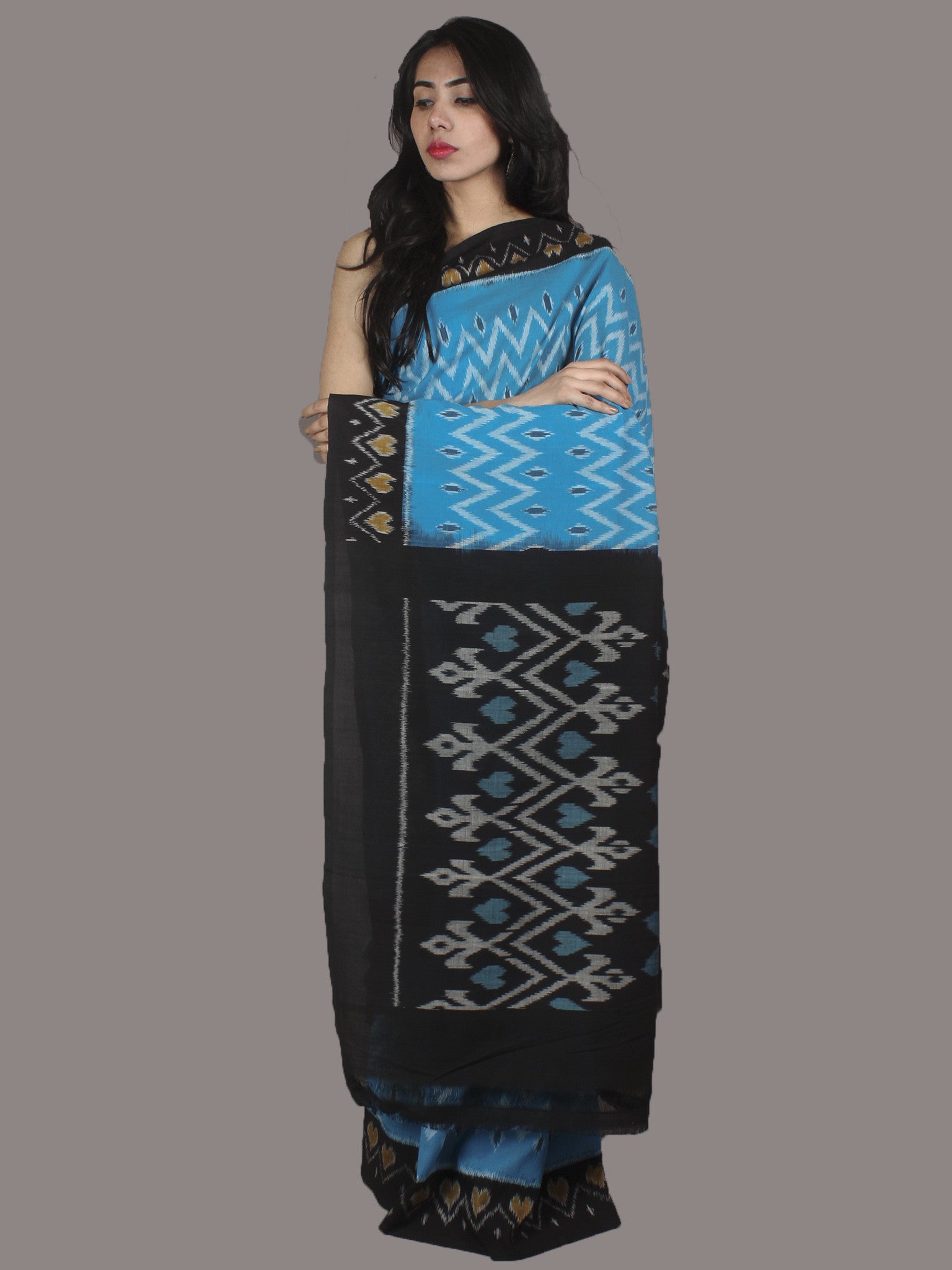 PRODUCT: The fabric of this saree is 100% pure cotton, fully hand-woven in Ikat style of dyeing.