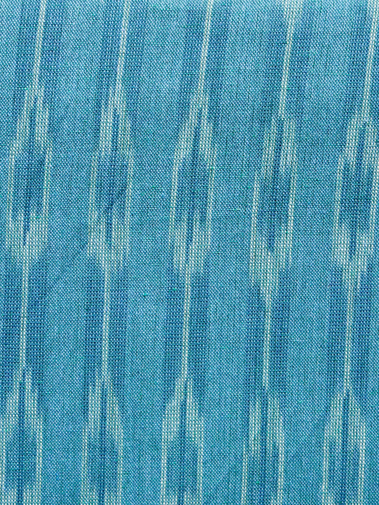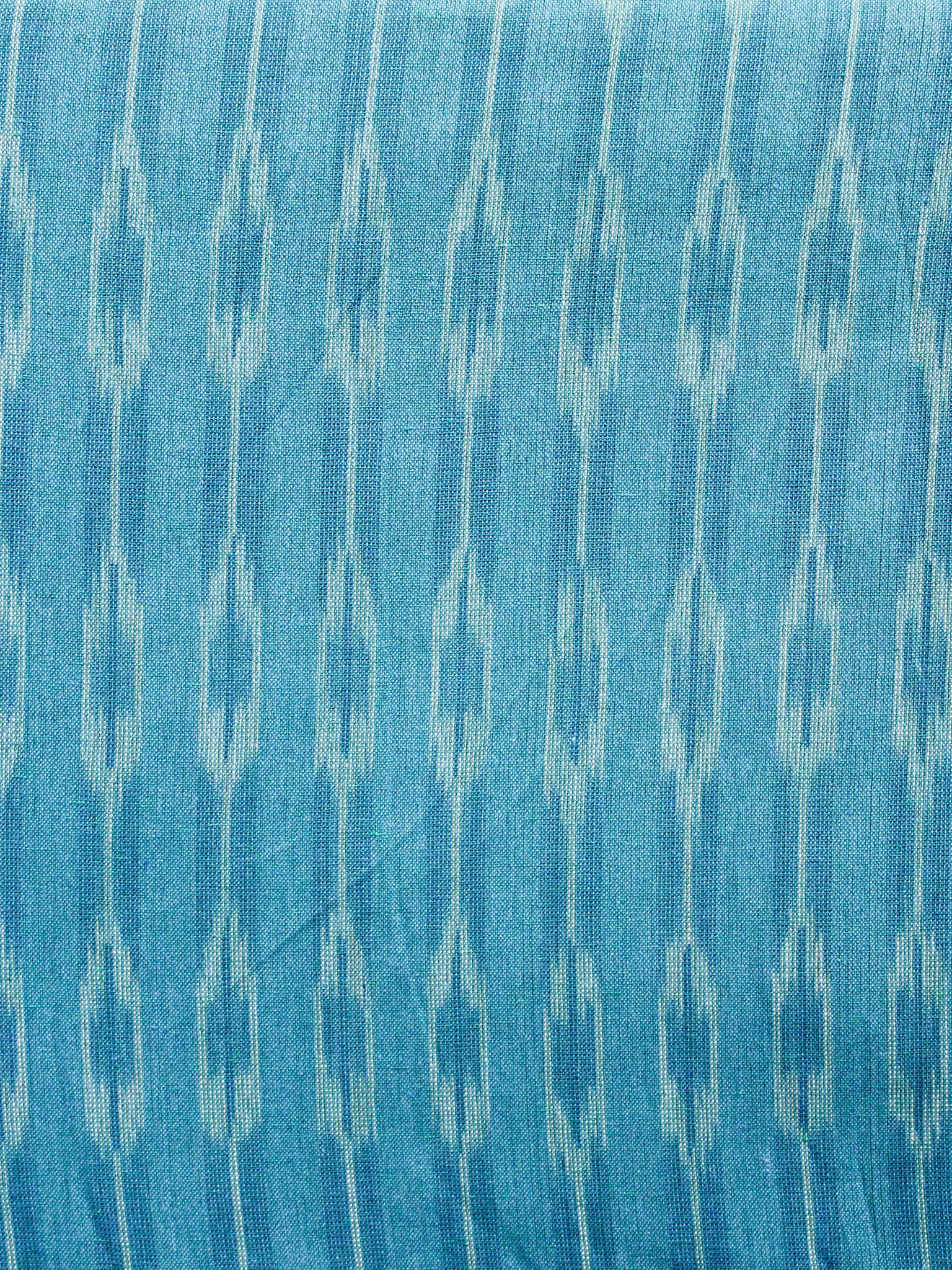 Azure Blue Ivory Pochampally Hand Woven Ikat Cotton Fabric Per Meter - F002F1462