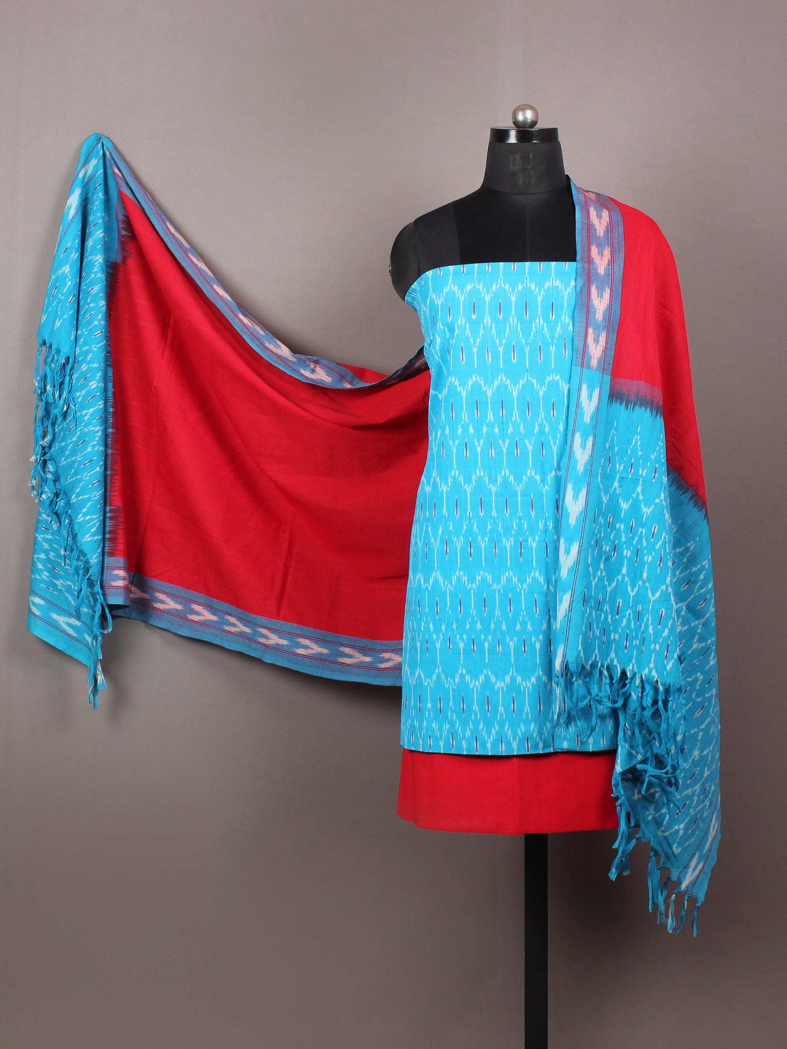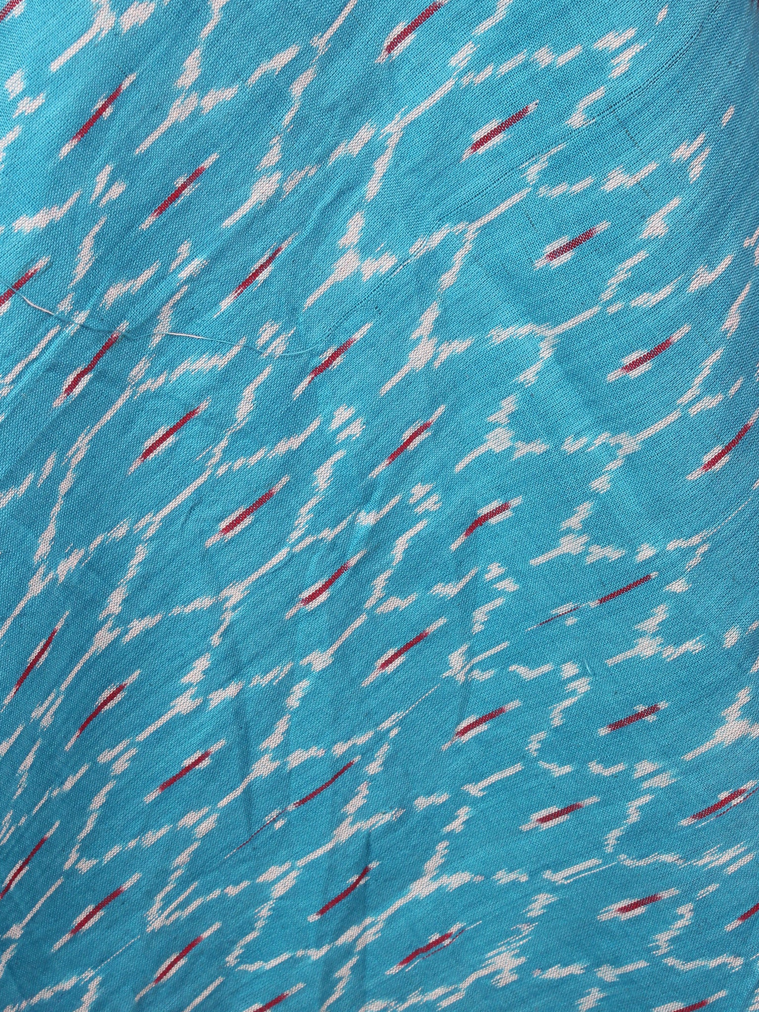 Azure Blue Red Ivory Multi Color Ikat Handwoven Cotton Suit Fabric Set of 3 - S1002033