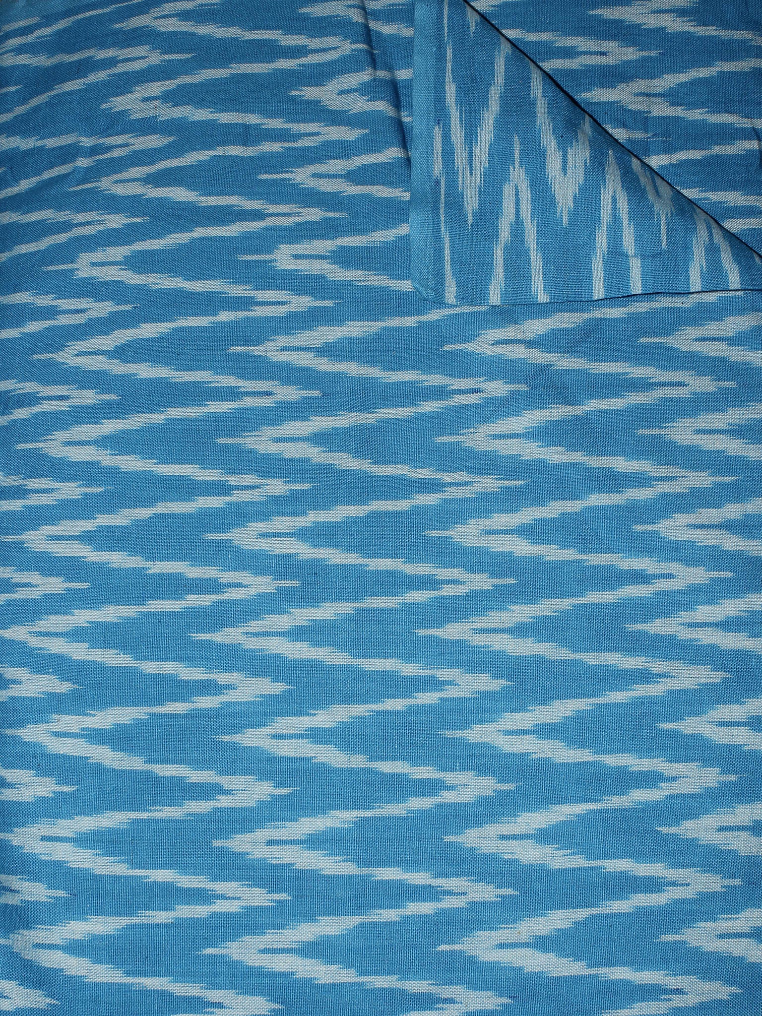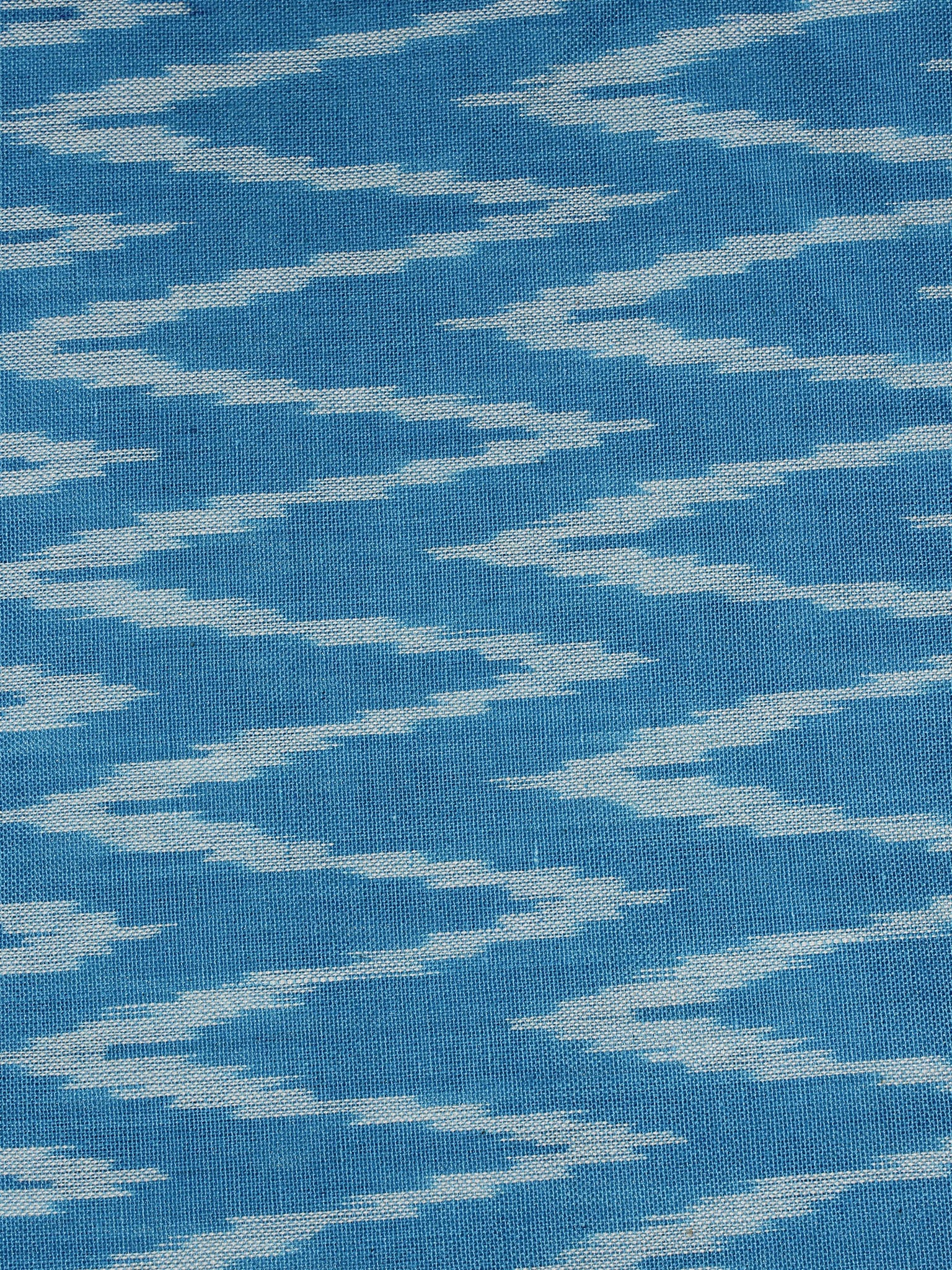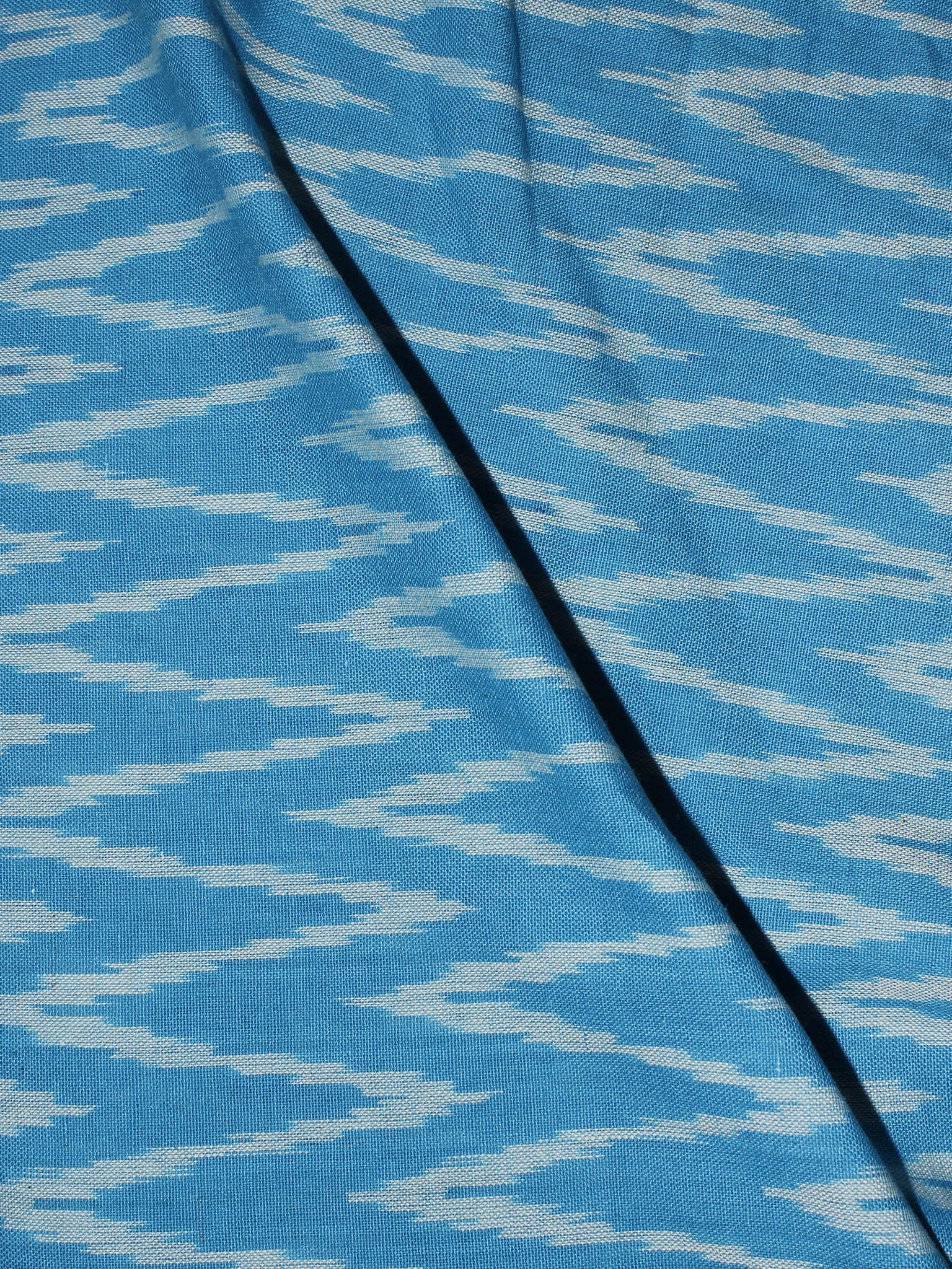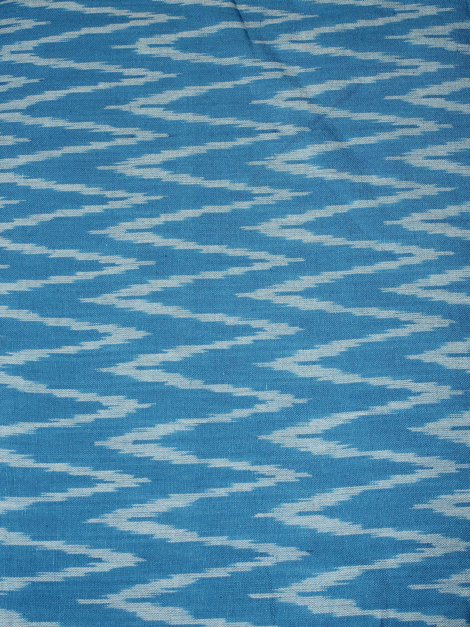 Azure Blue White Pochampally Hand Weaved Ikat Fabric Per Meter - F0916672