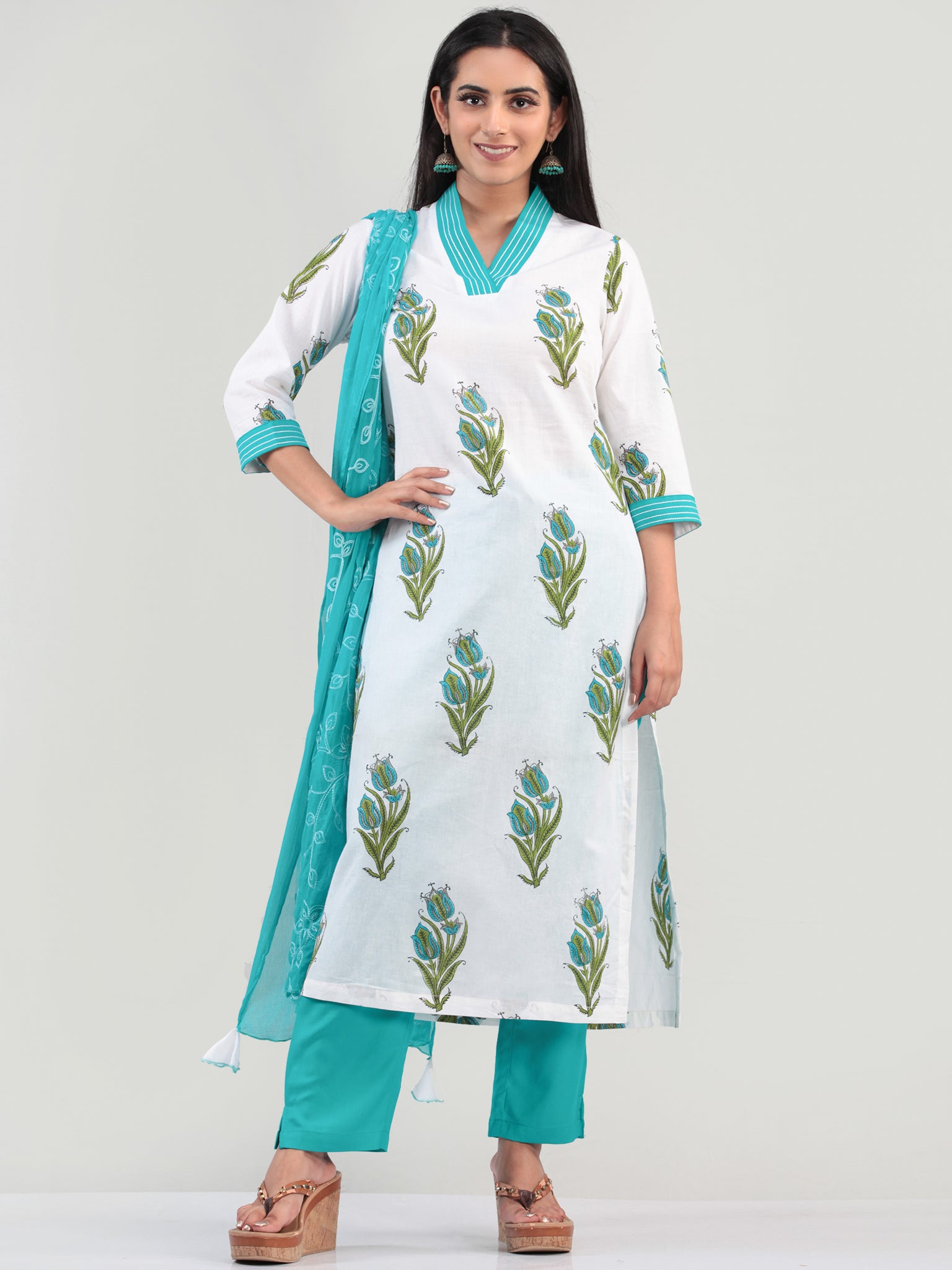 FABRIC/S: Kurta - Cotton, Pants - Rayon Cotton, Dupatta - Cotton