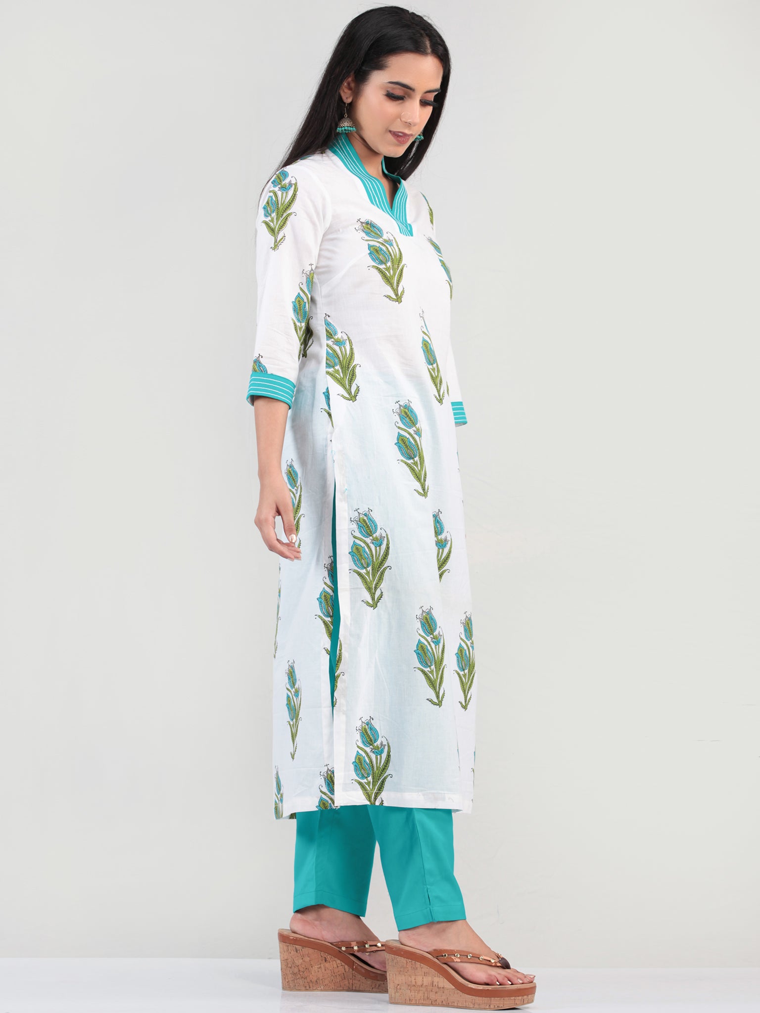 PRODUCT: This Set Contains Cotton Kurta, Cotton Rayon Elasticated Pants & Chiffon Dupatta