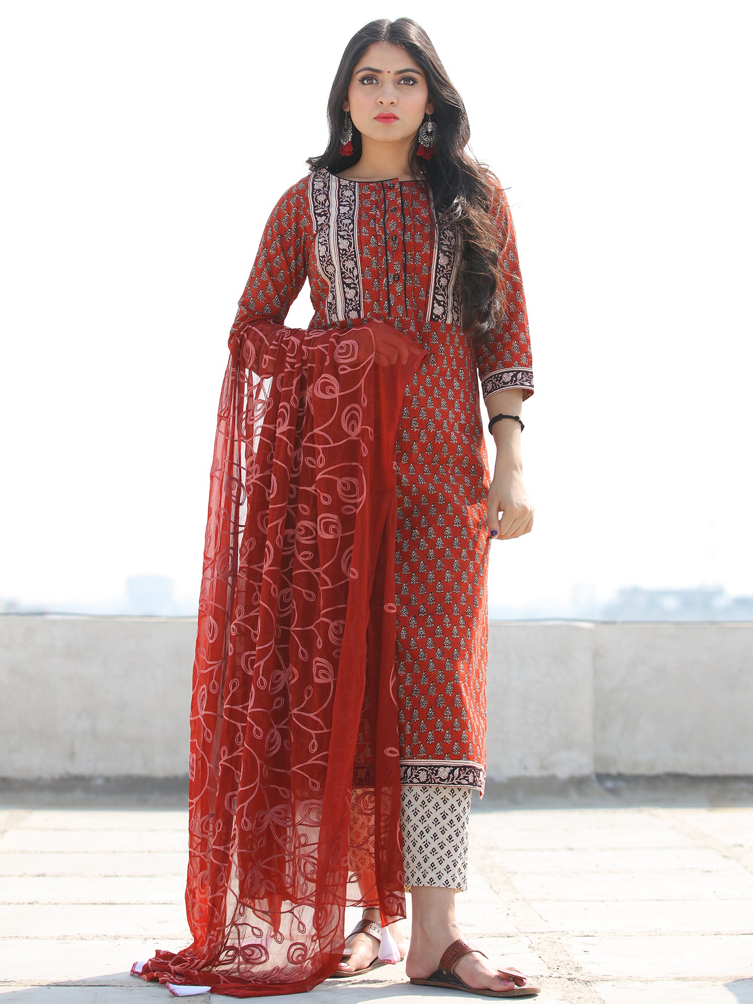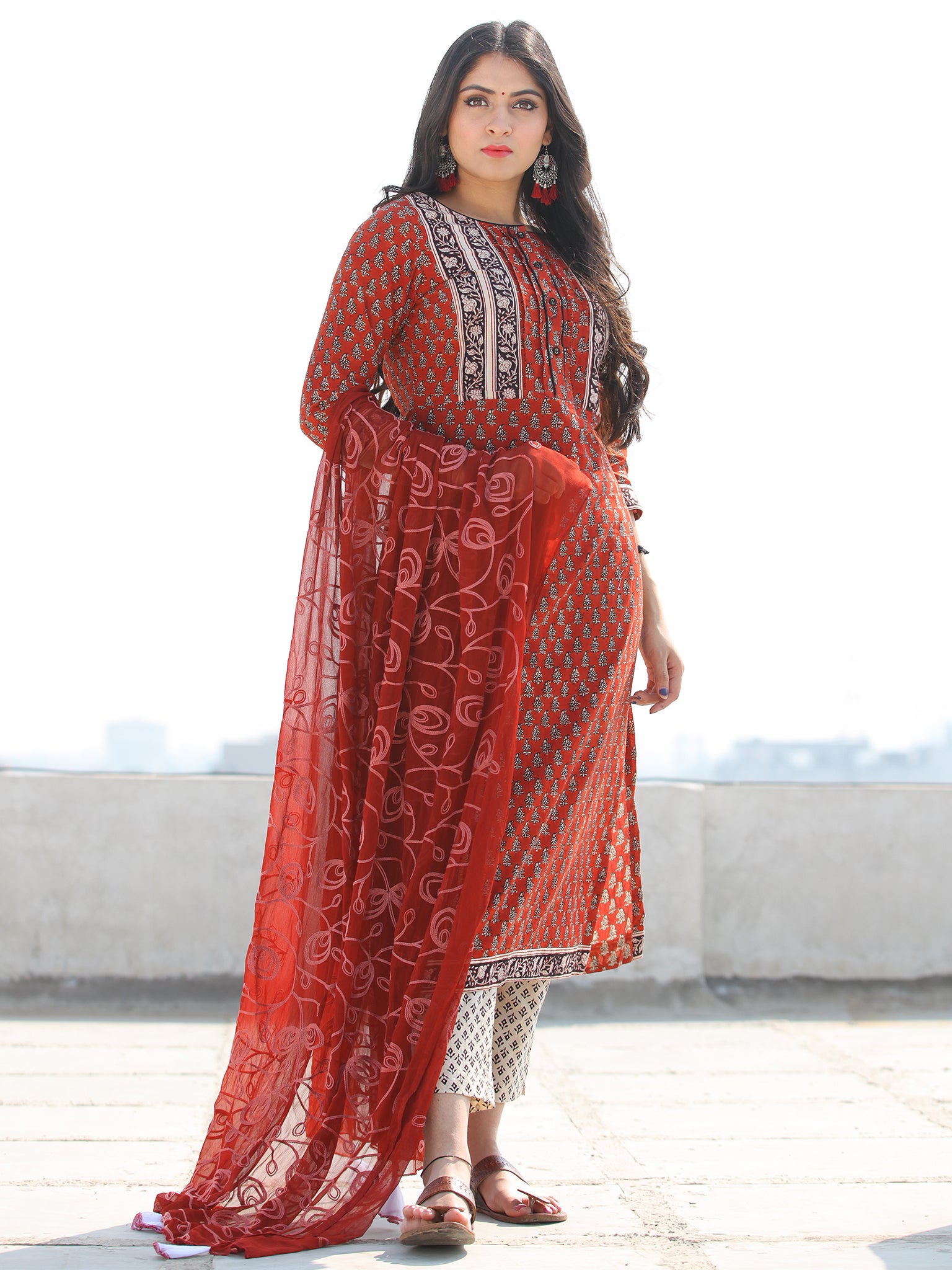 PRODUCT: This Set Contains Cotton Kurta, Cotton Elasticated Pants & Chiffon Embroidered Dupatta