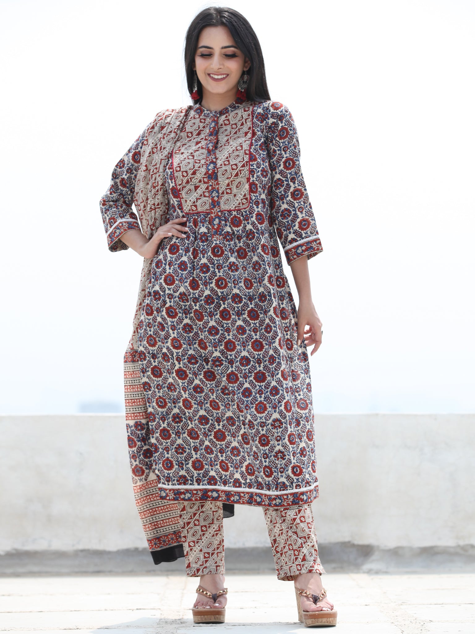FABRIC/S: Kurta - Cotton, Pants - Cotton, Dupatta - Cotton
