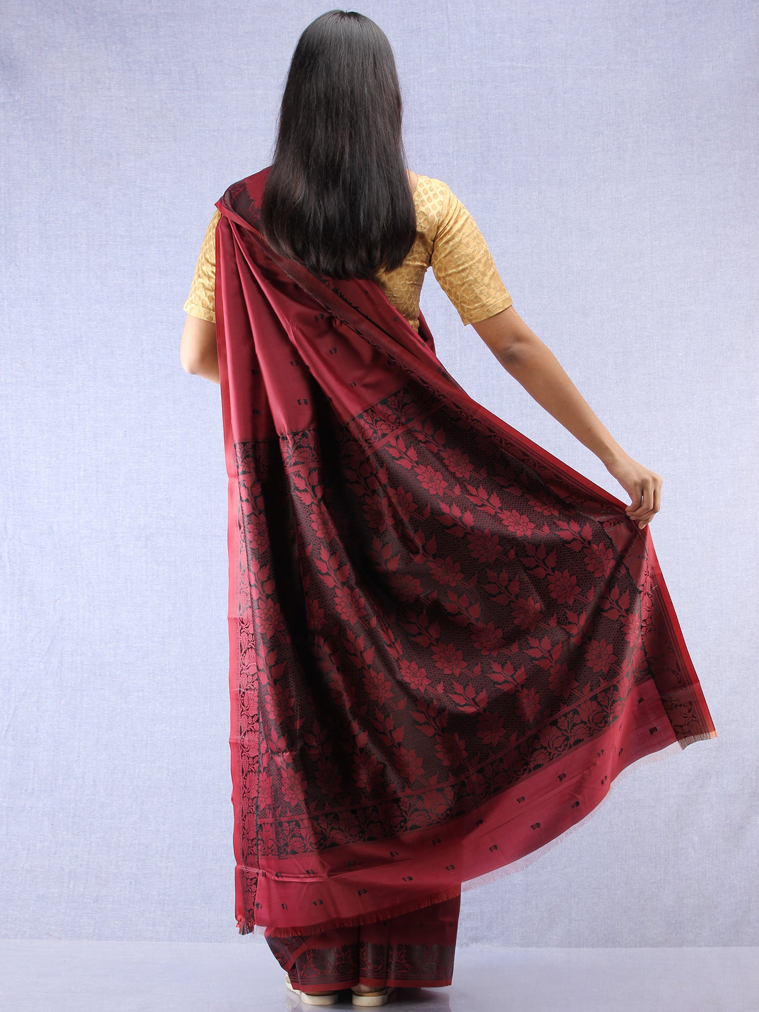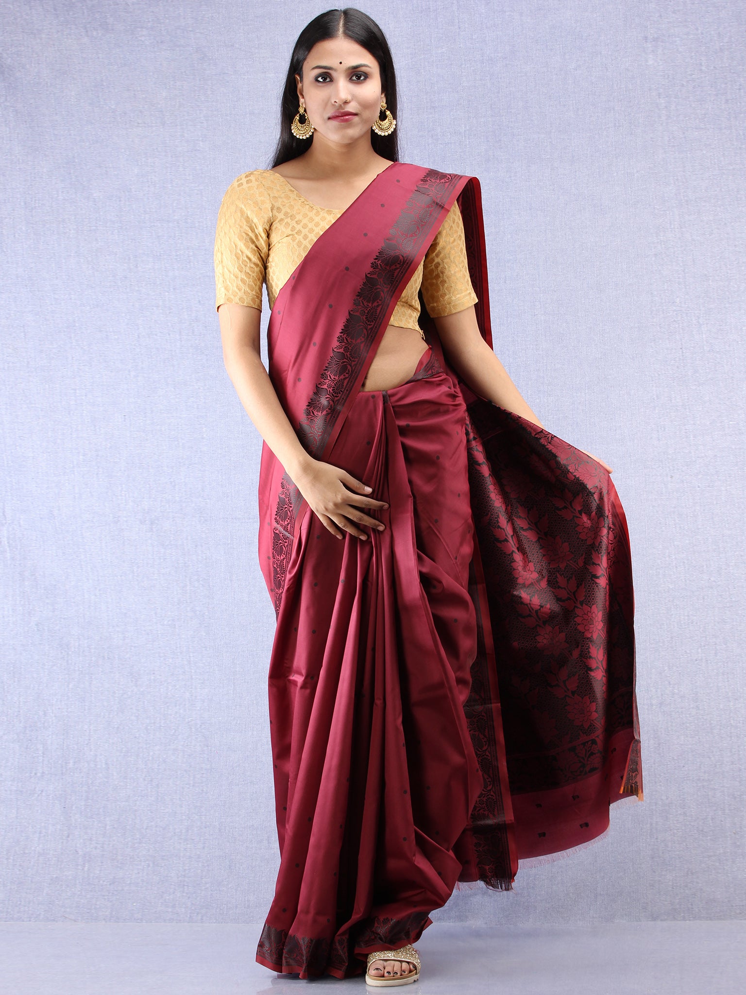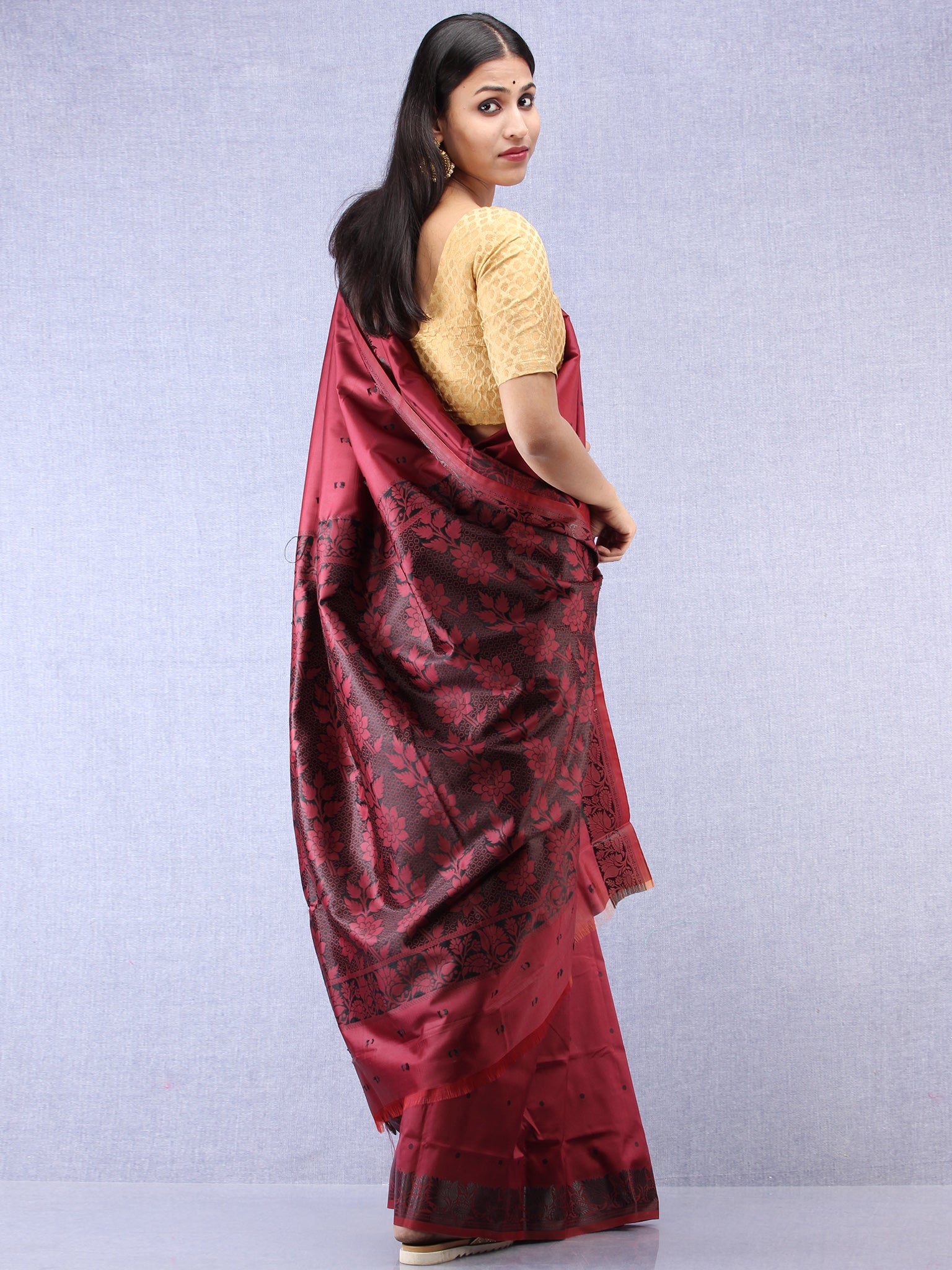 Banarasee Art Silk Saree - Wine Red Black - S031704378