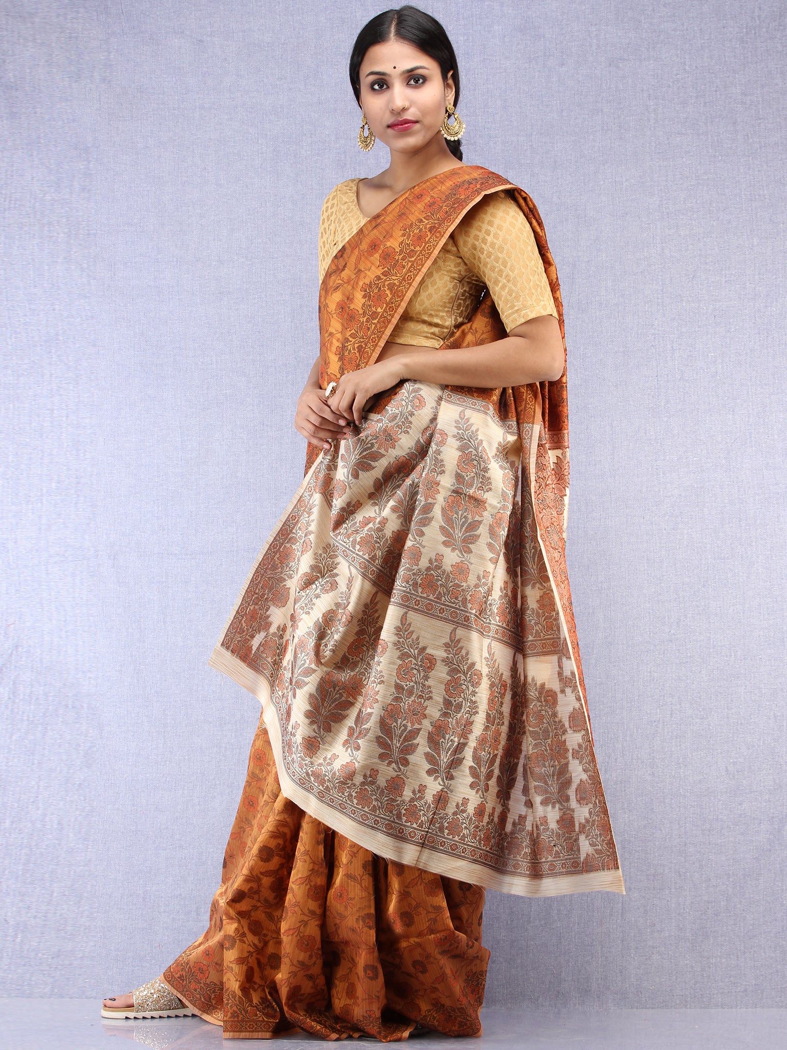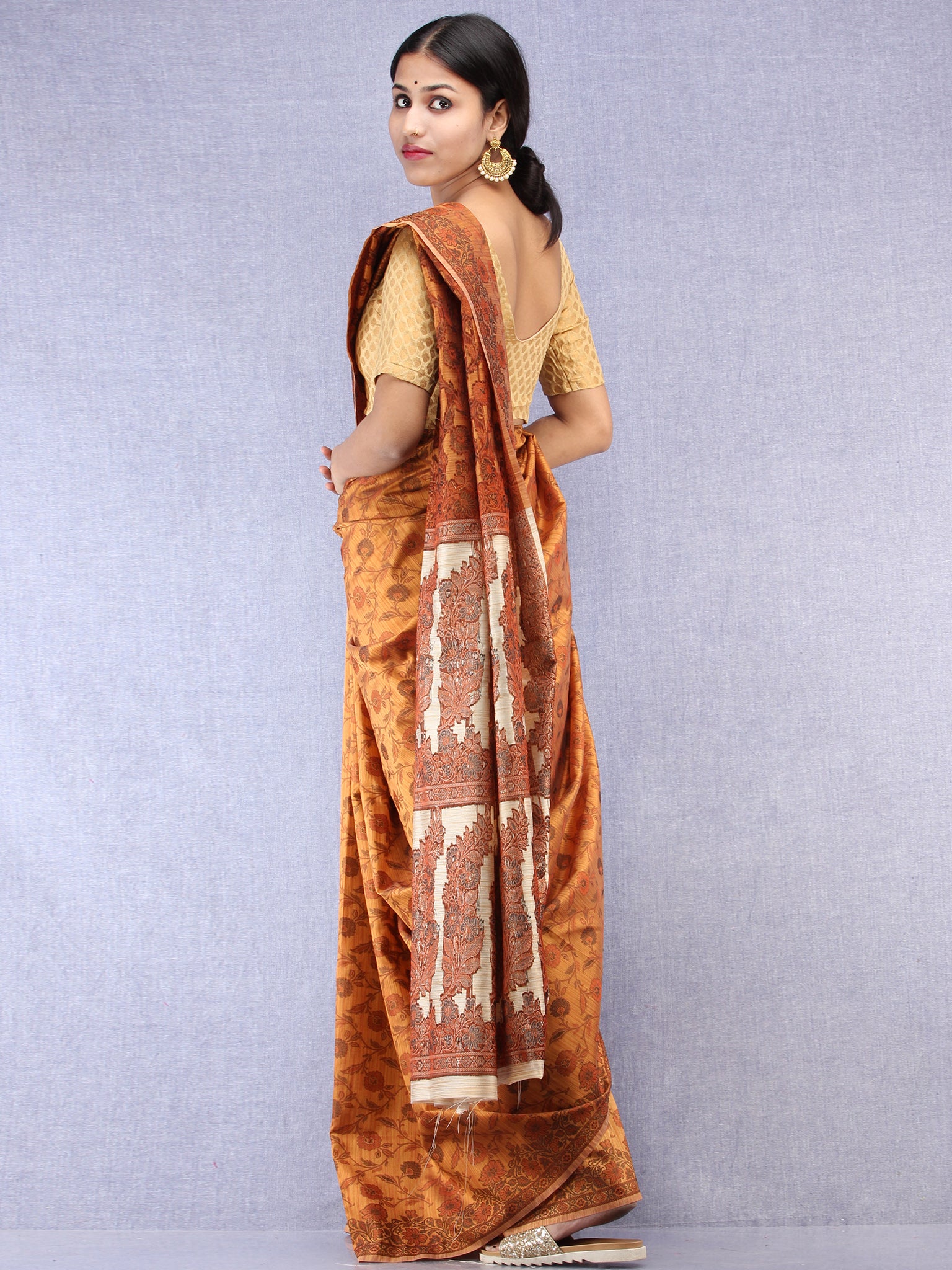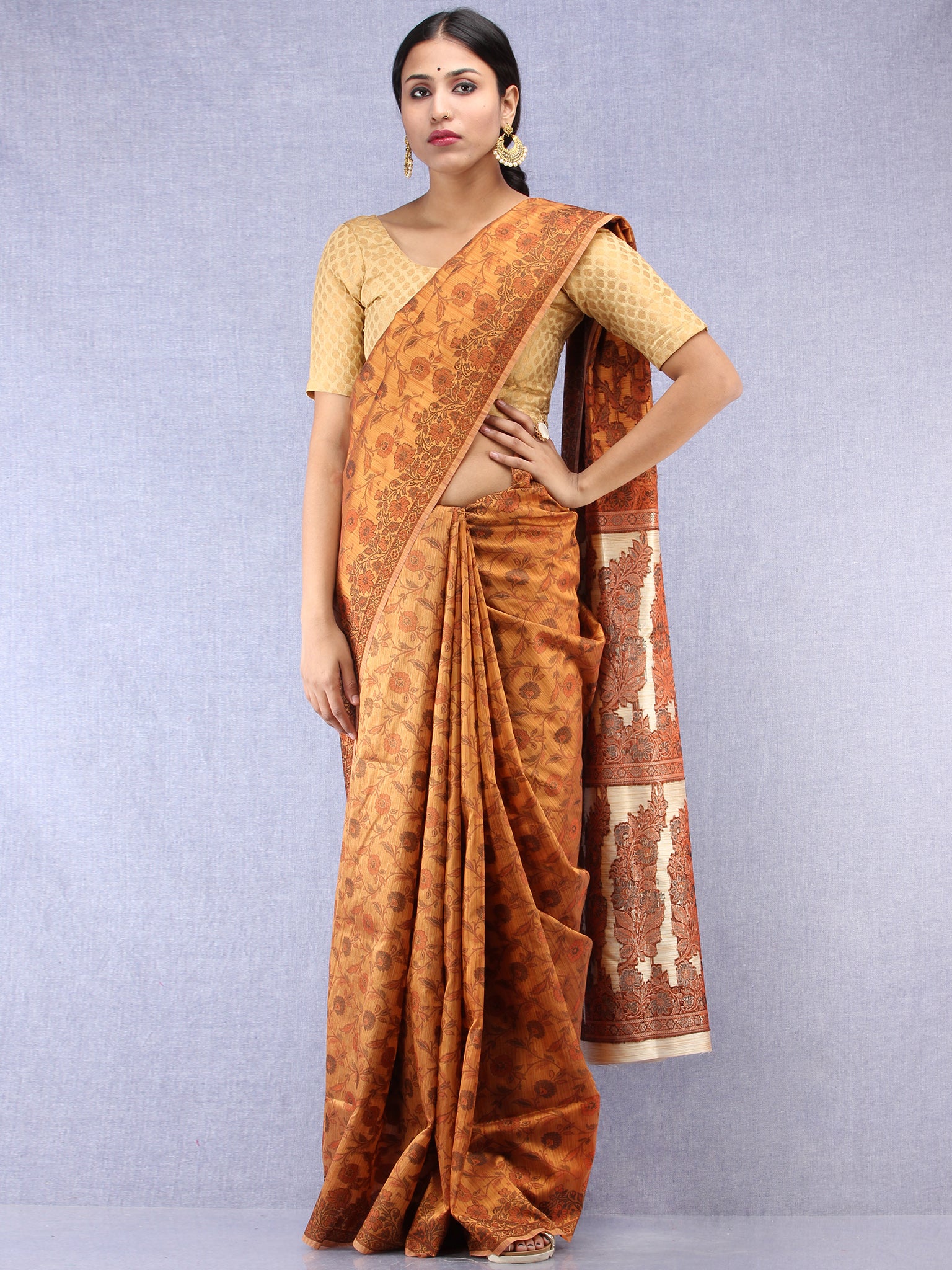 Banarasee Art Silk Saree With Resham Weaving Work - Mustard Yellow & Beige - S031704424