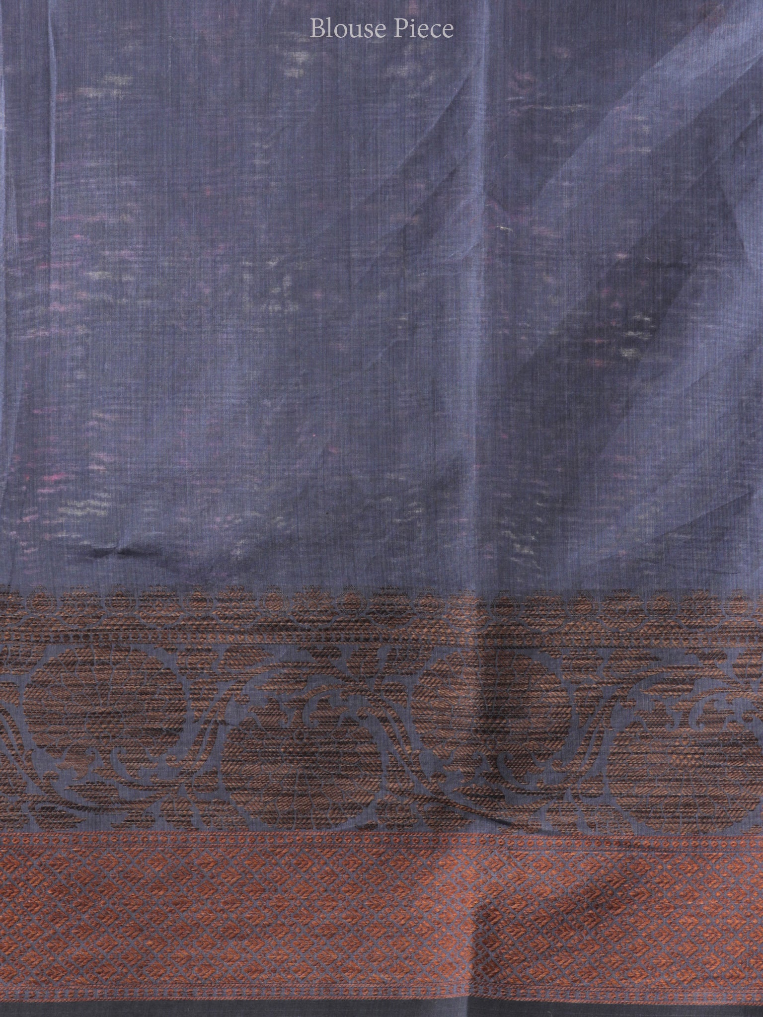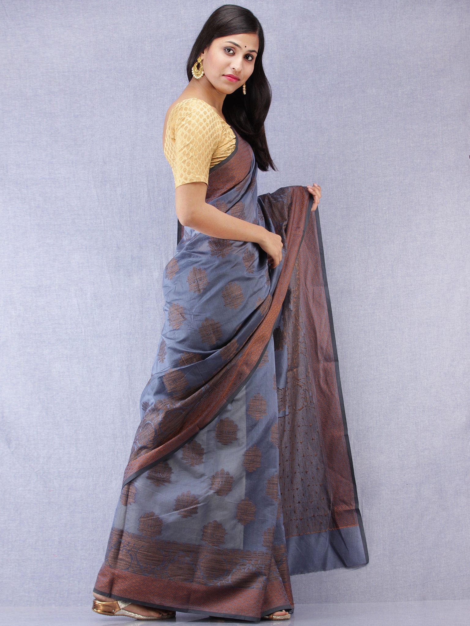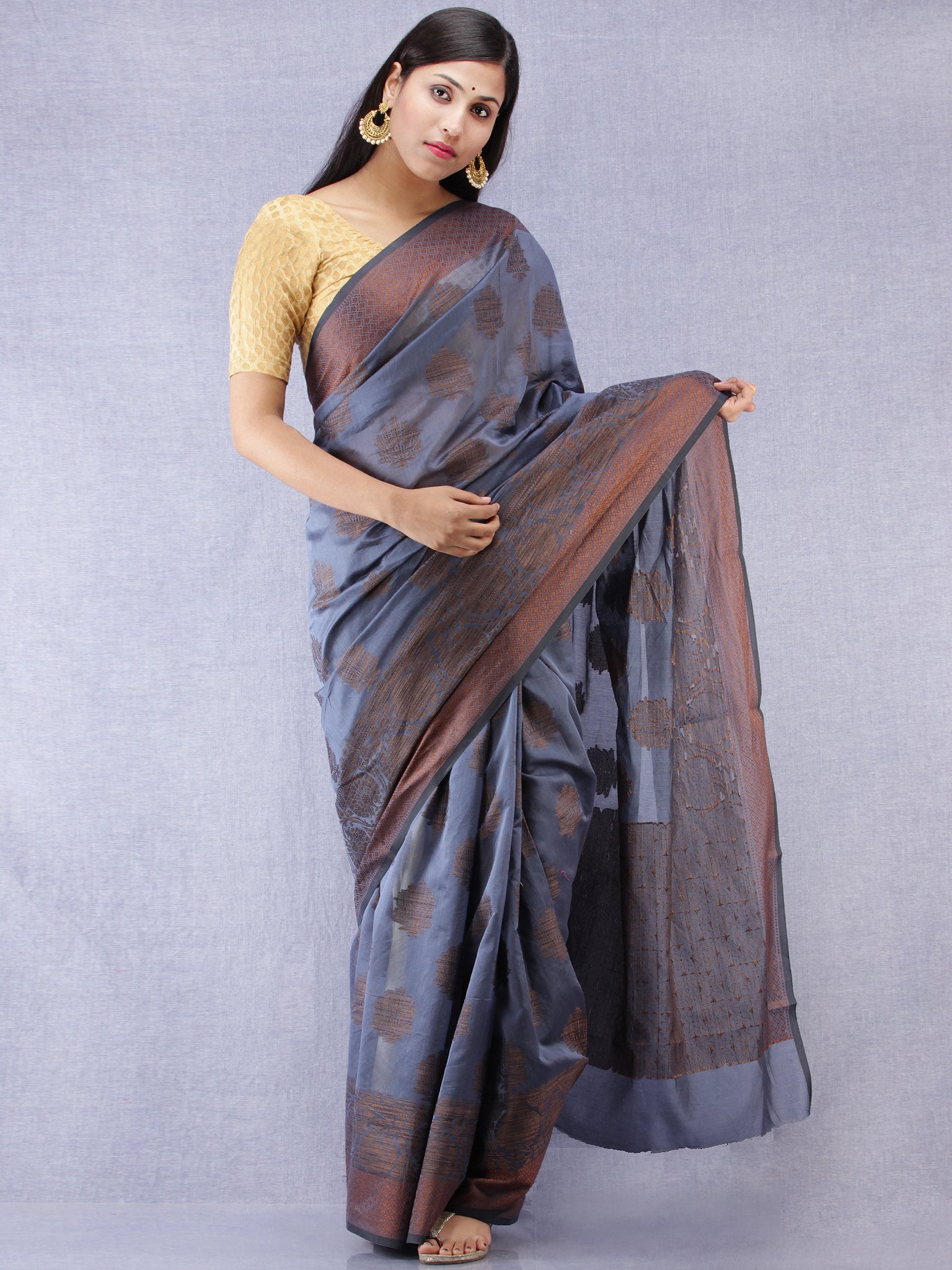 Banarasee Chanderi Silk Saree With Resham Border & Butta - Steel Blue Copper - S031704320