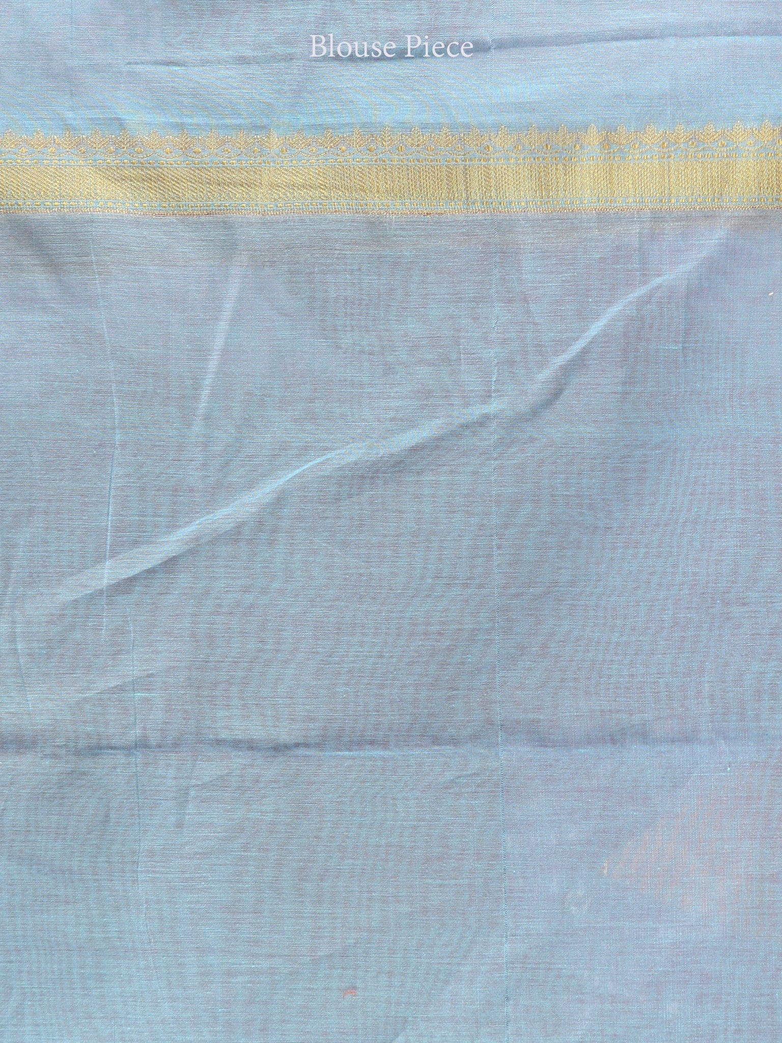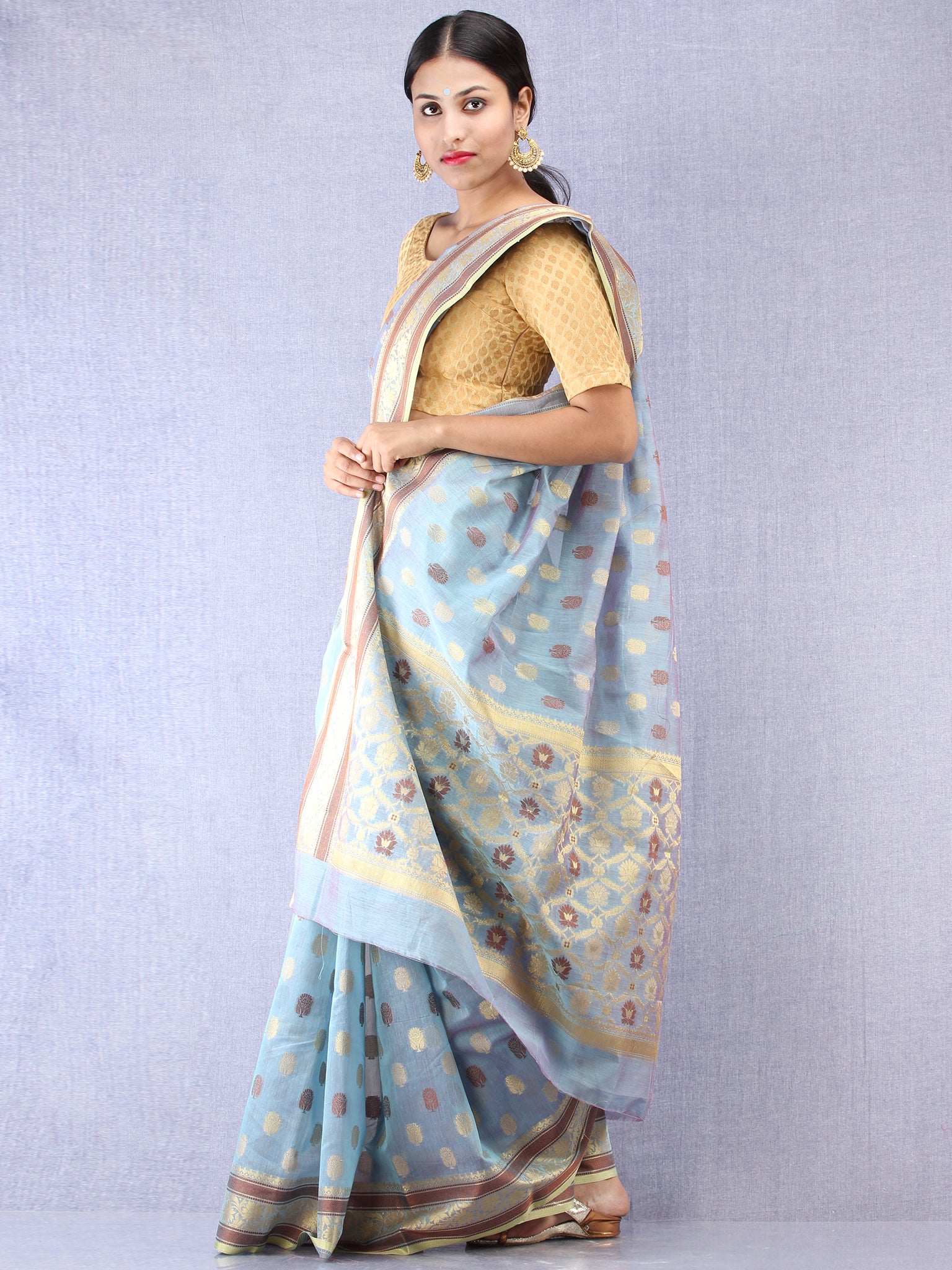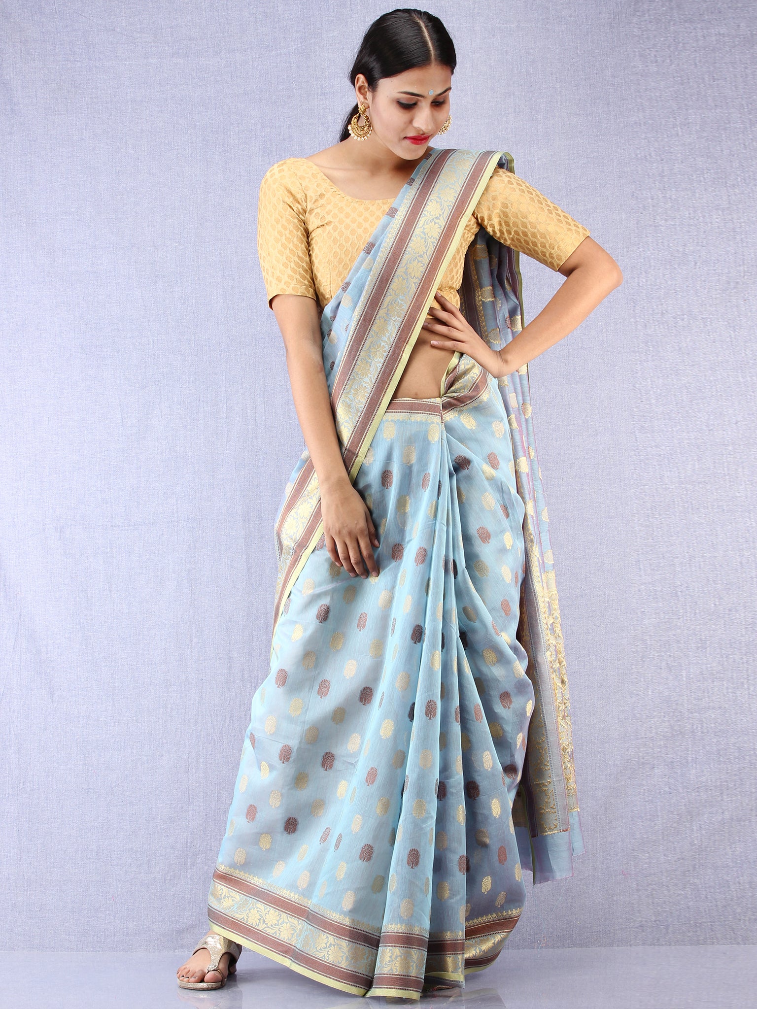 Banarasee Chanderi Silk Saree With Zari & Resham Border - Silver Grey Golden - S031704352