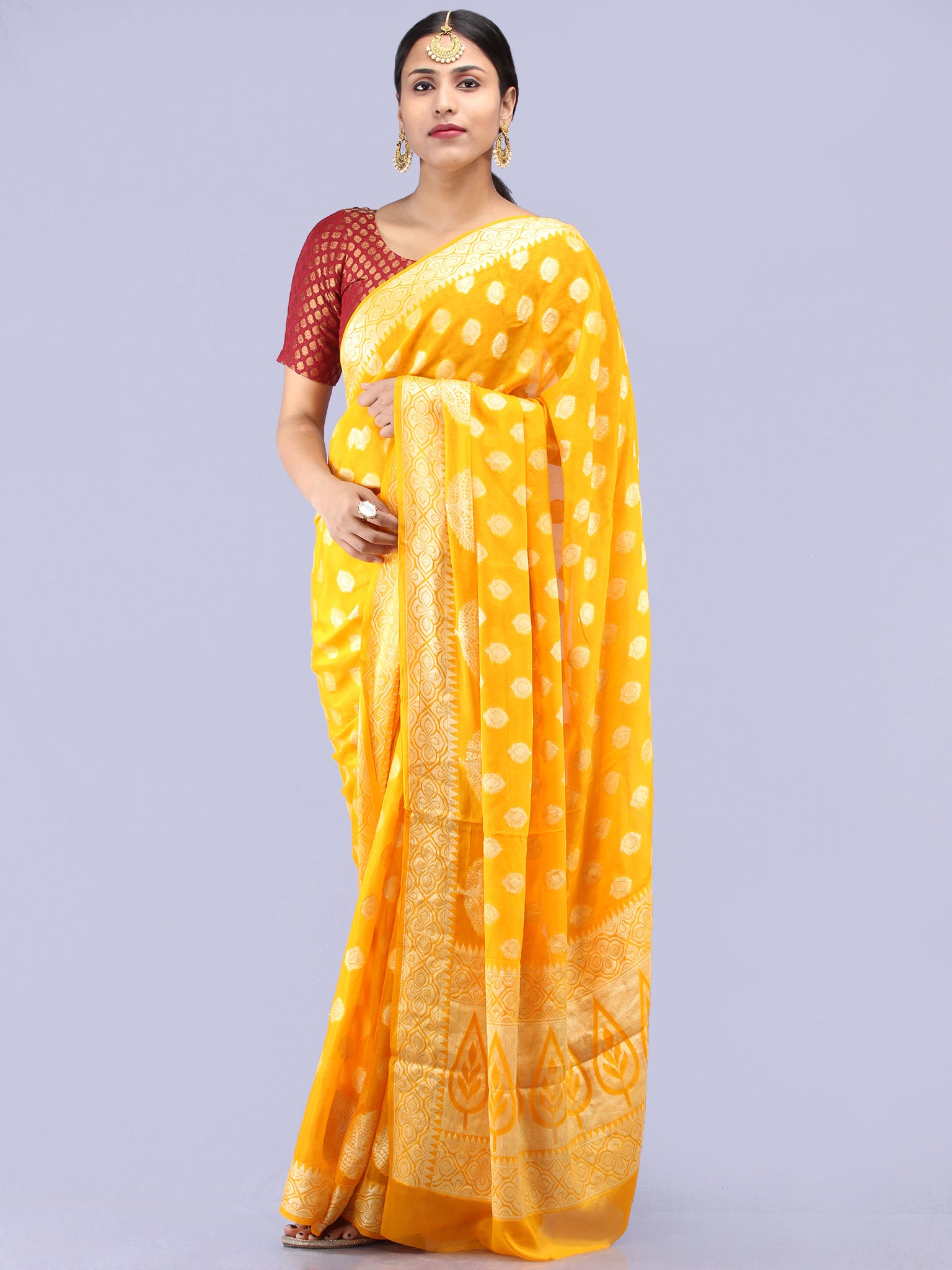 Banarasee Pure Chiffon Saree With Zari Work - Golden Yellow - S031704290