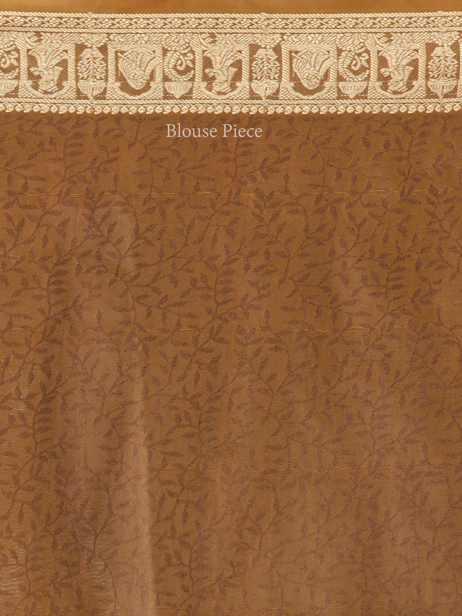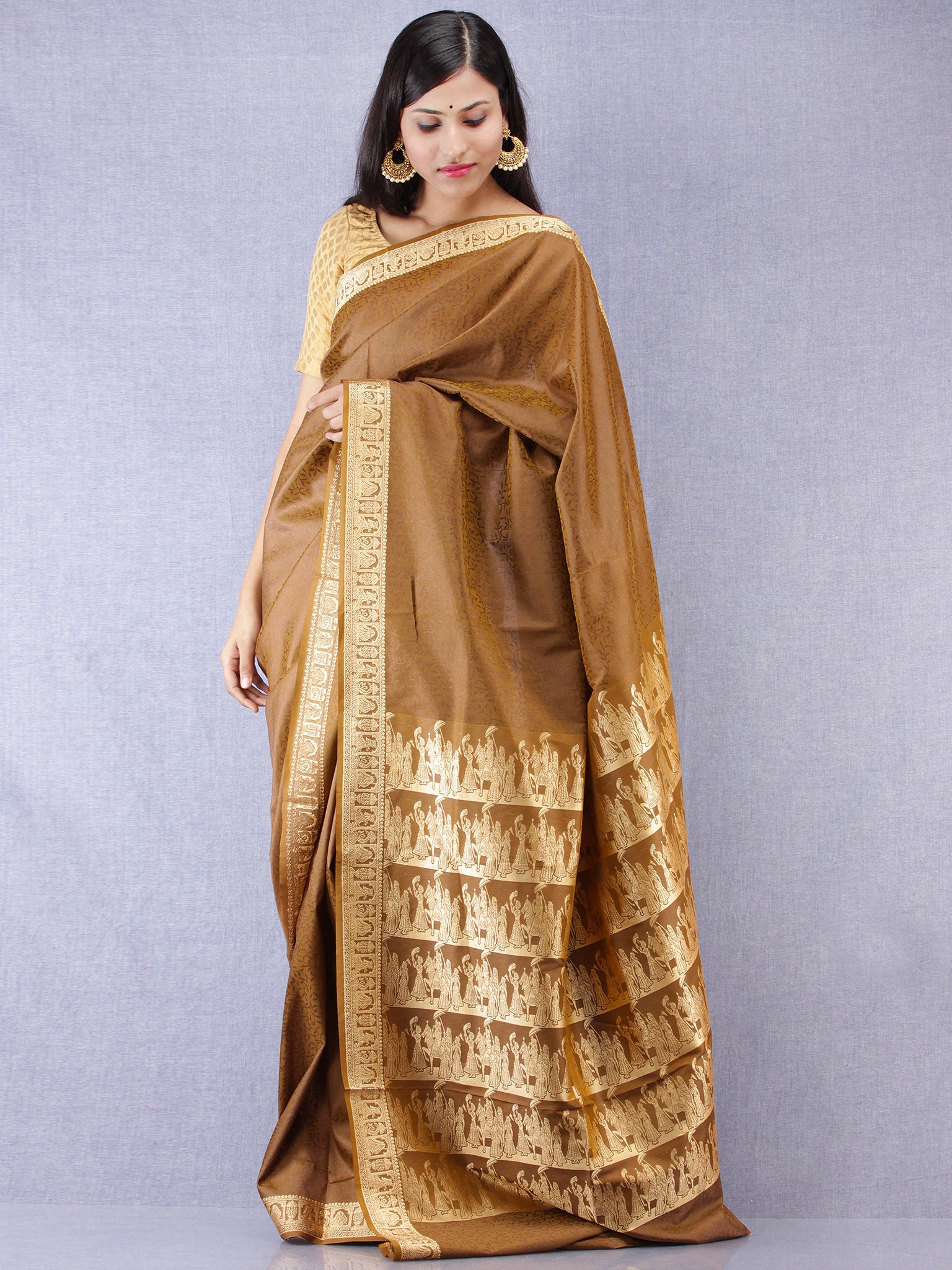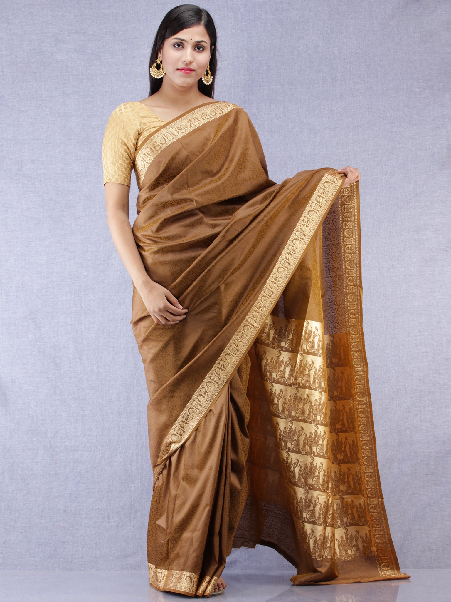 Banarasee Semi Silk Self Weave Saree With Resham Border - Peanut Brown Golden - S031704316