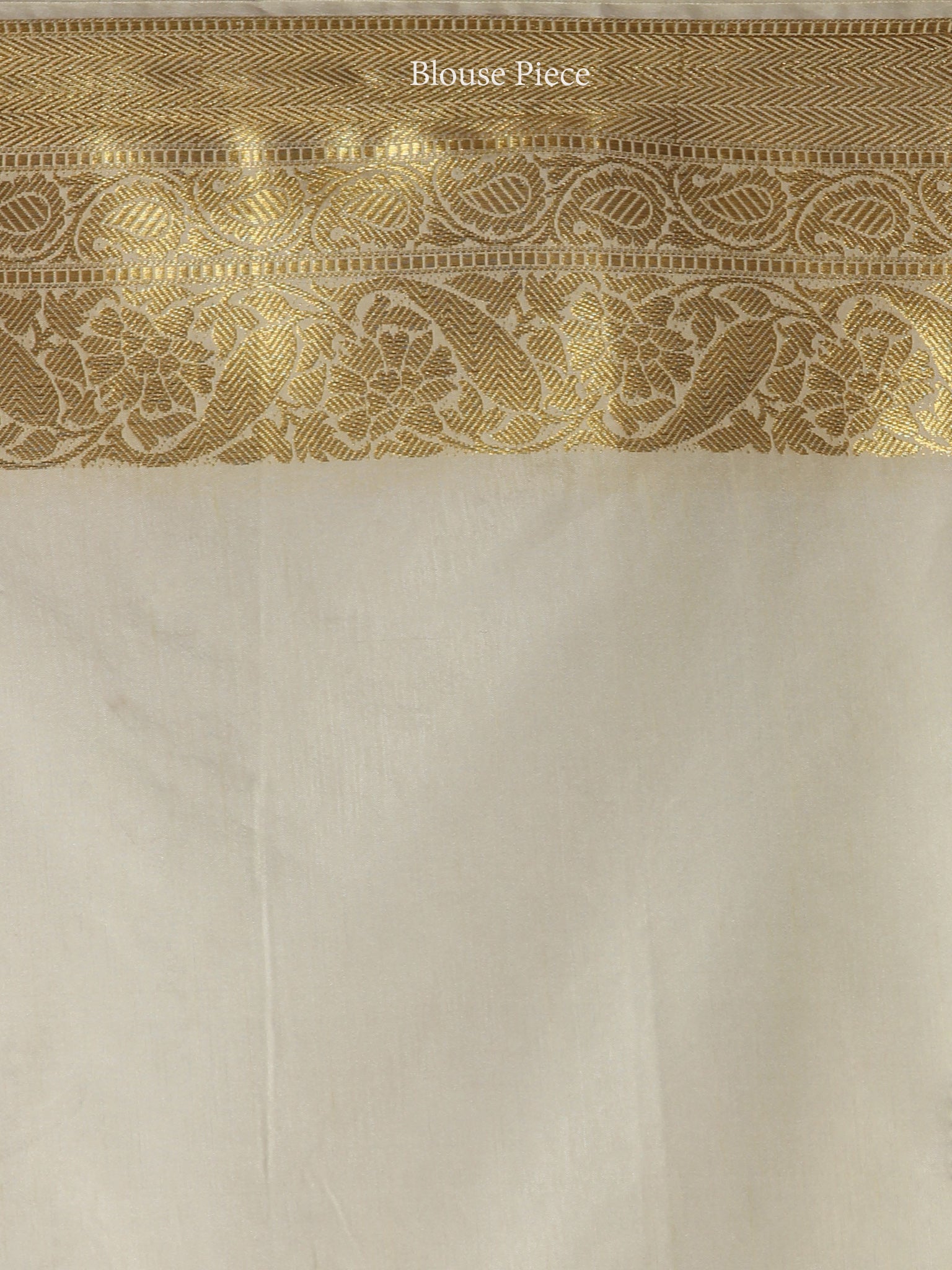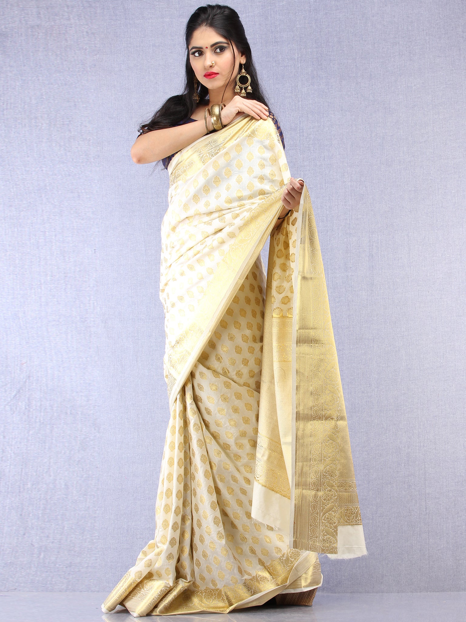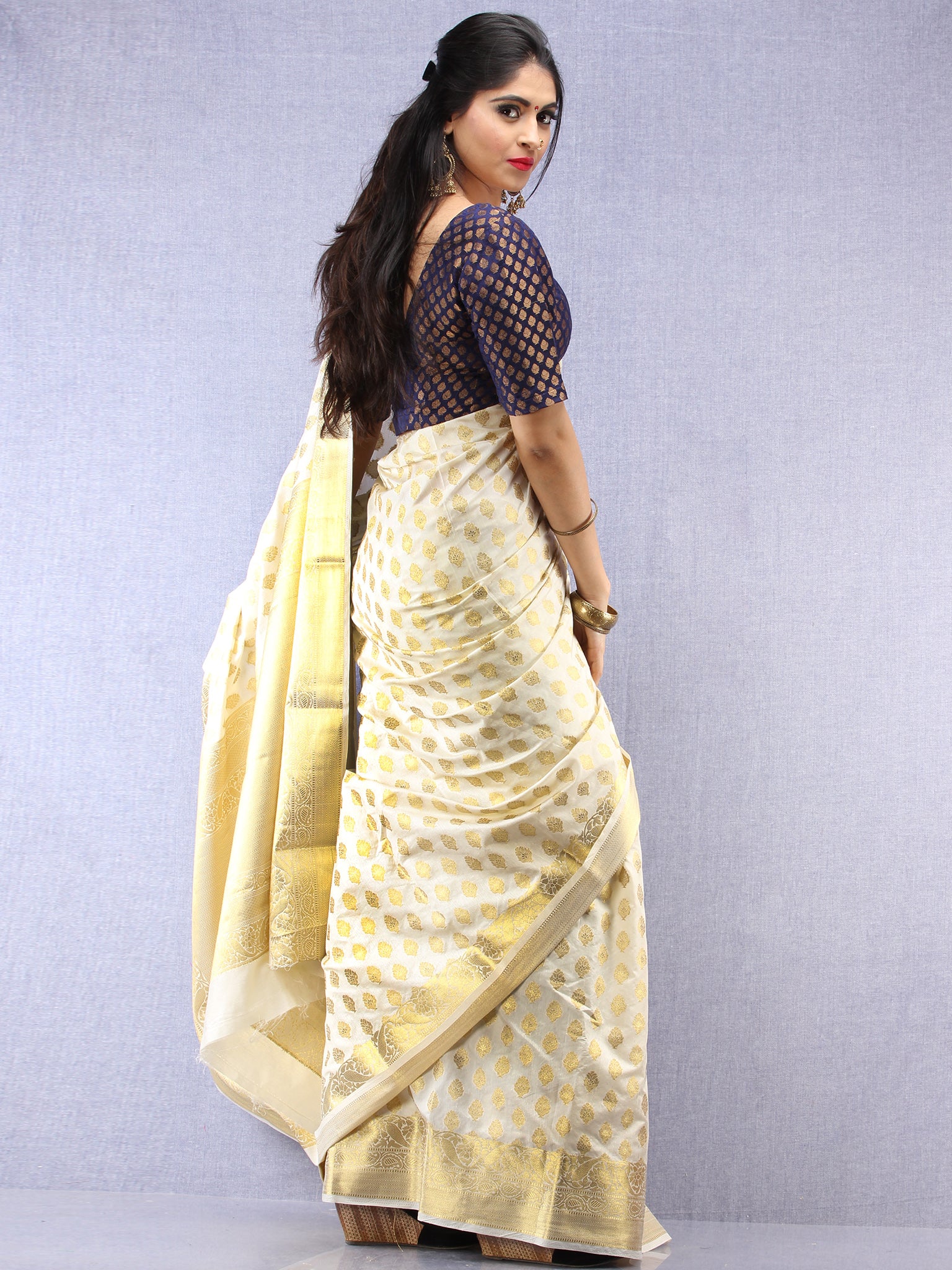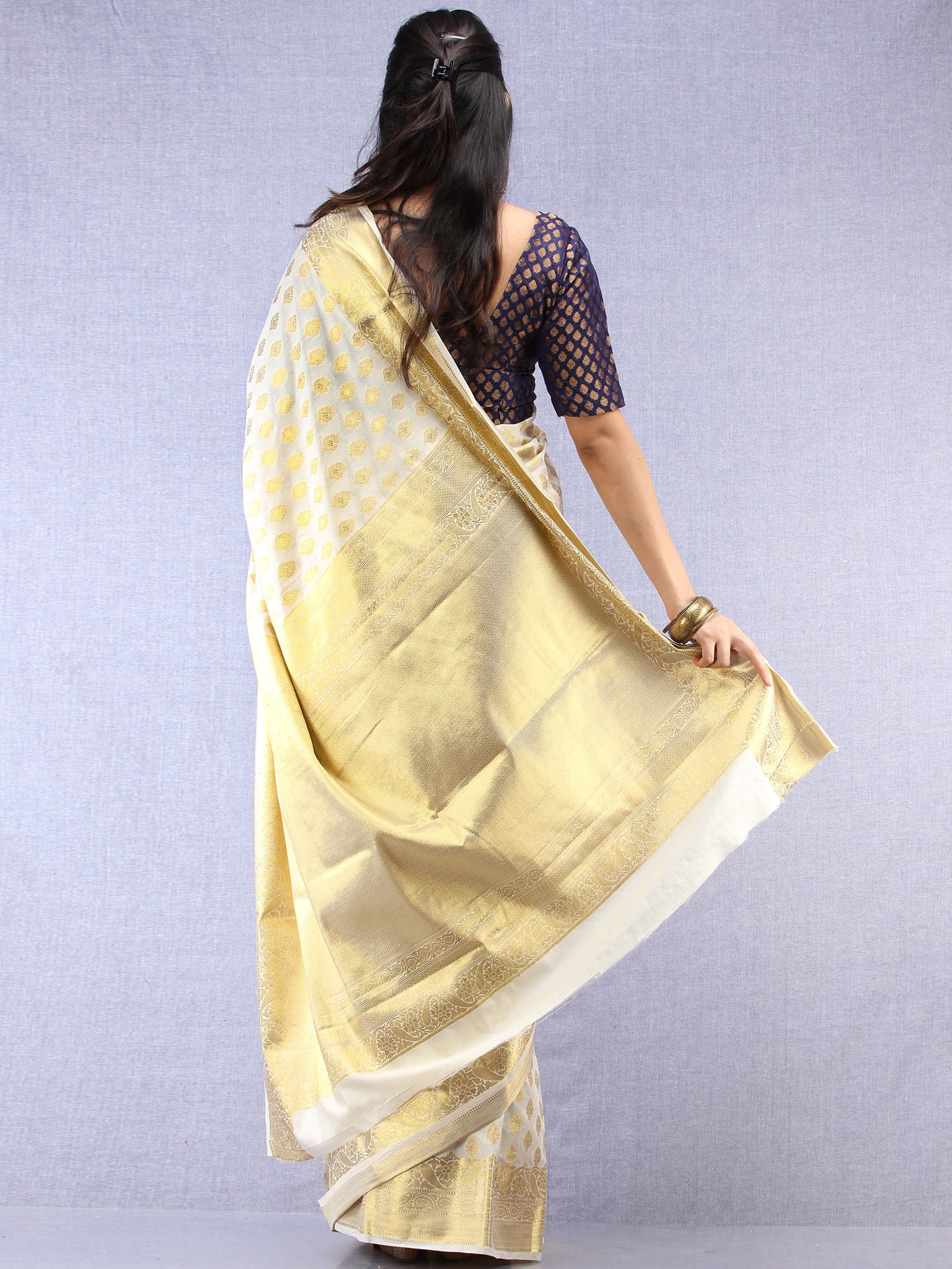 Banarasee Semi Silk Saree With Zari Work - Ivory & Gold - S031704396
