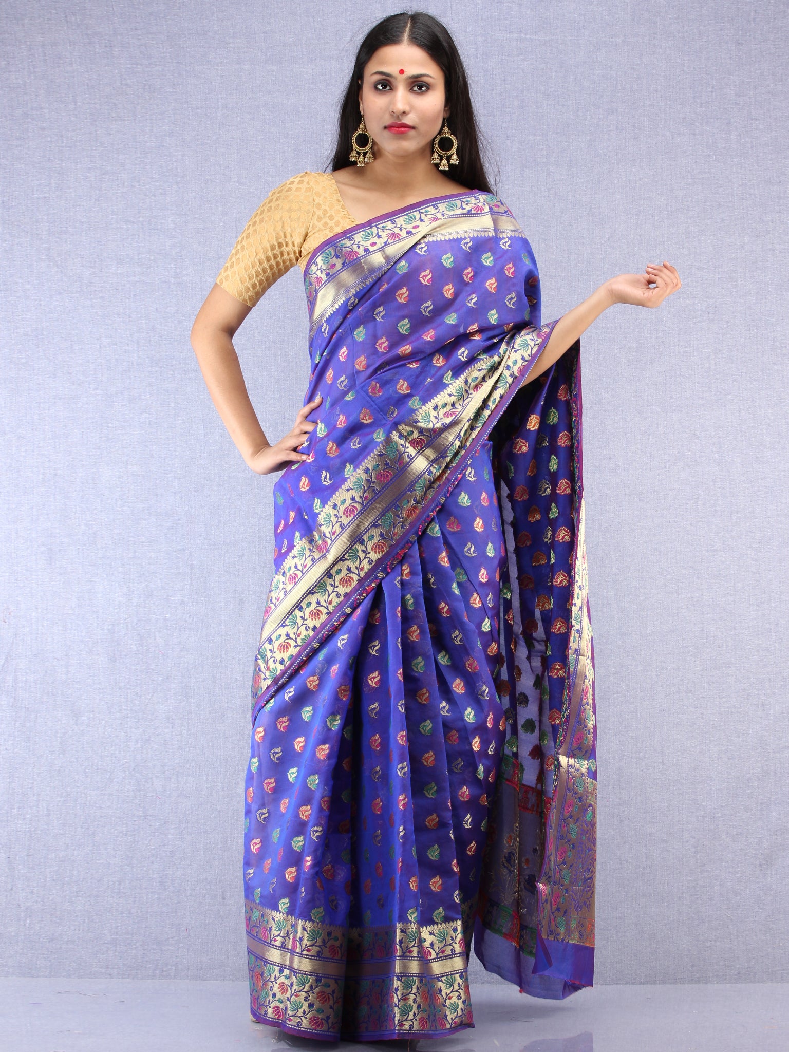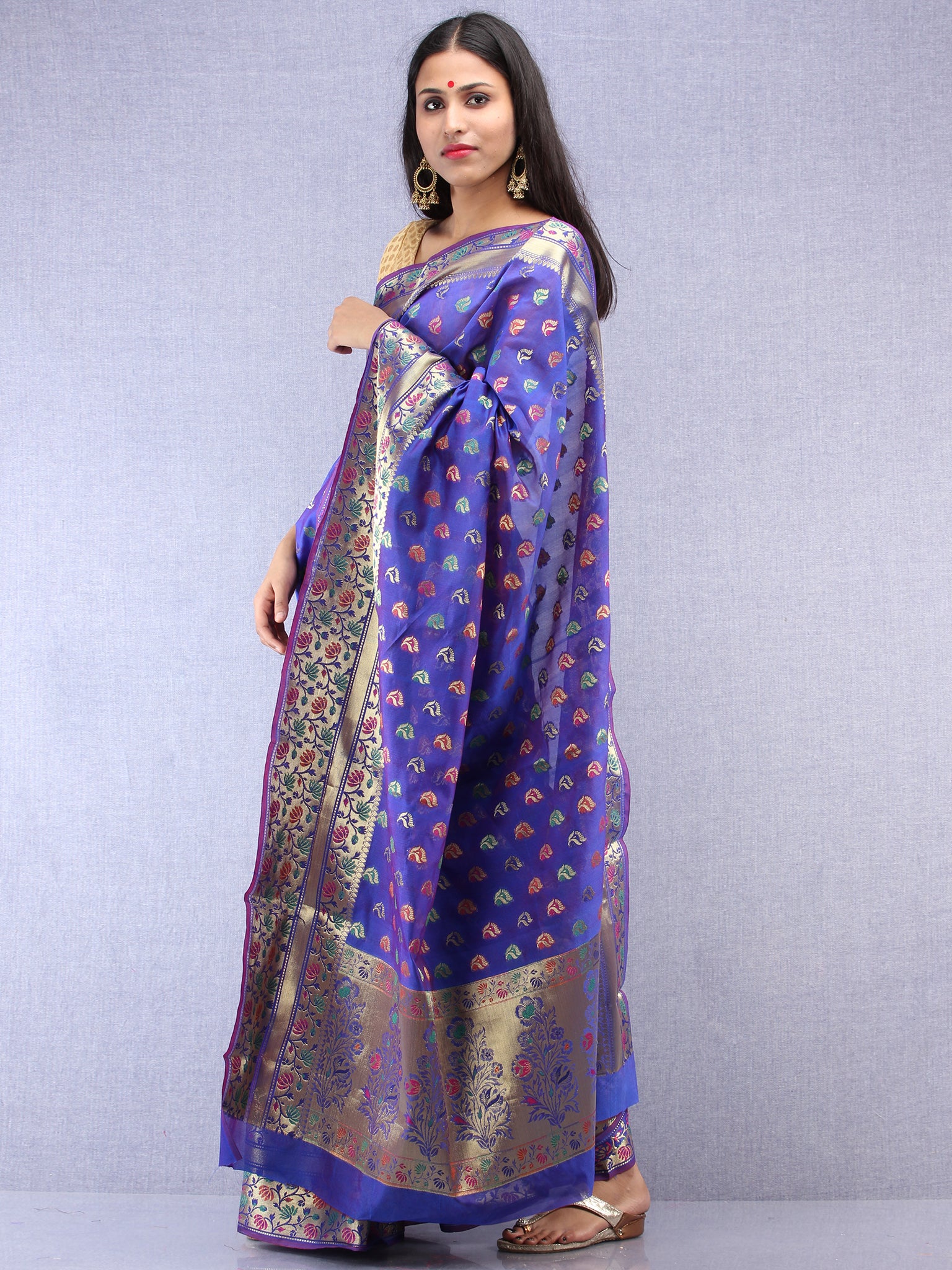 Banarasee Chanderi Saree With Meenakari Work - Electric Blue & Gold - S031704422