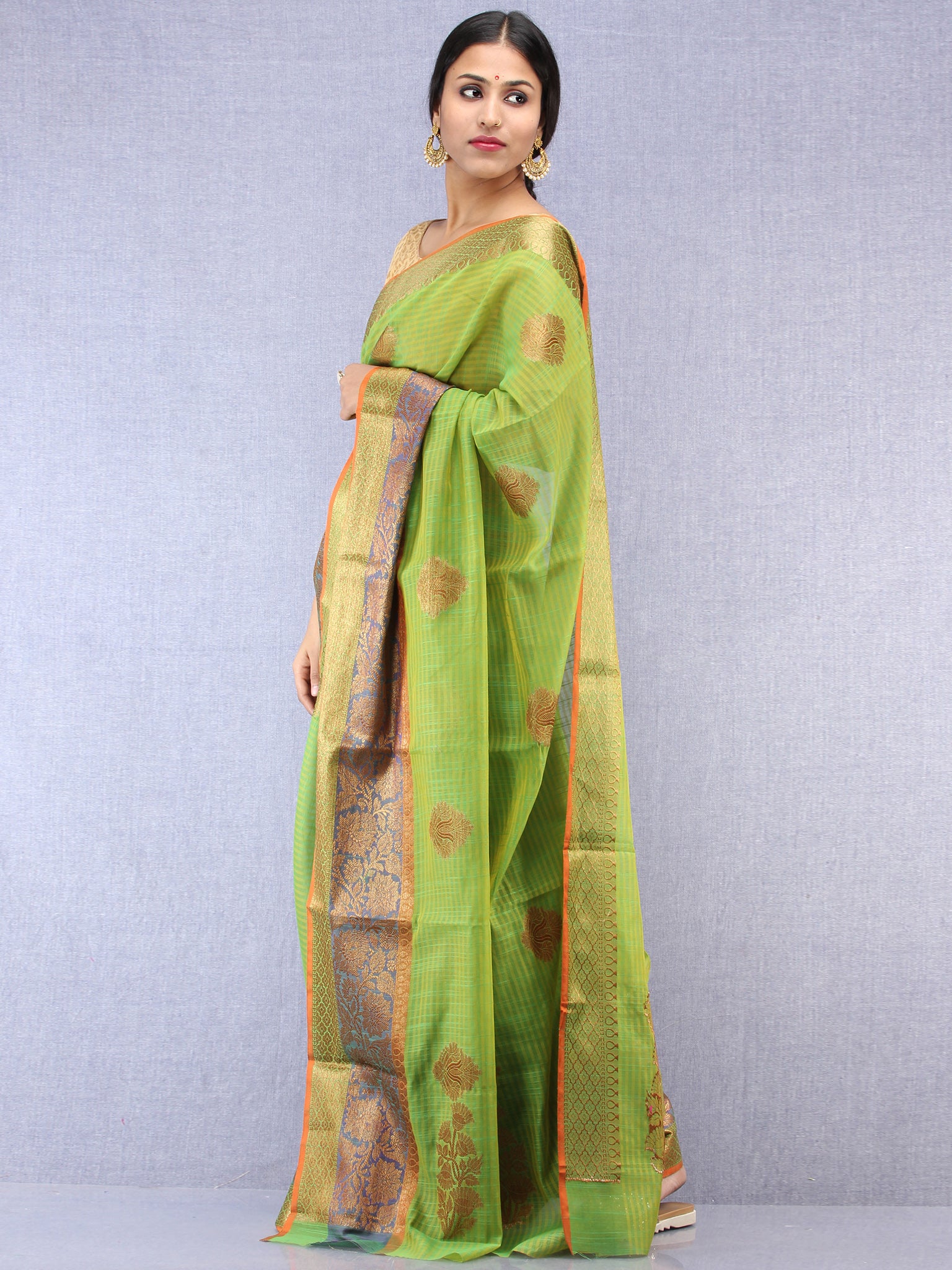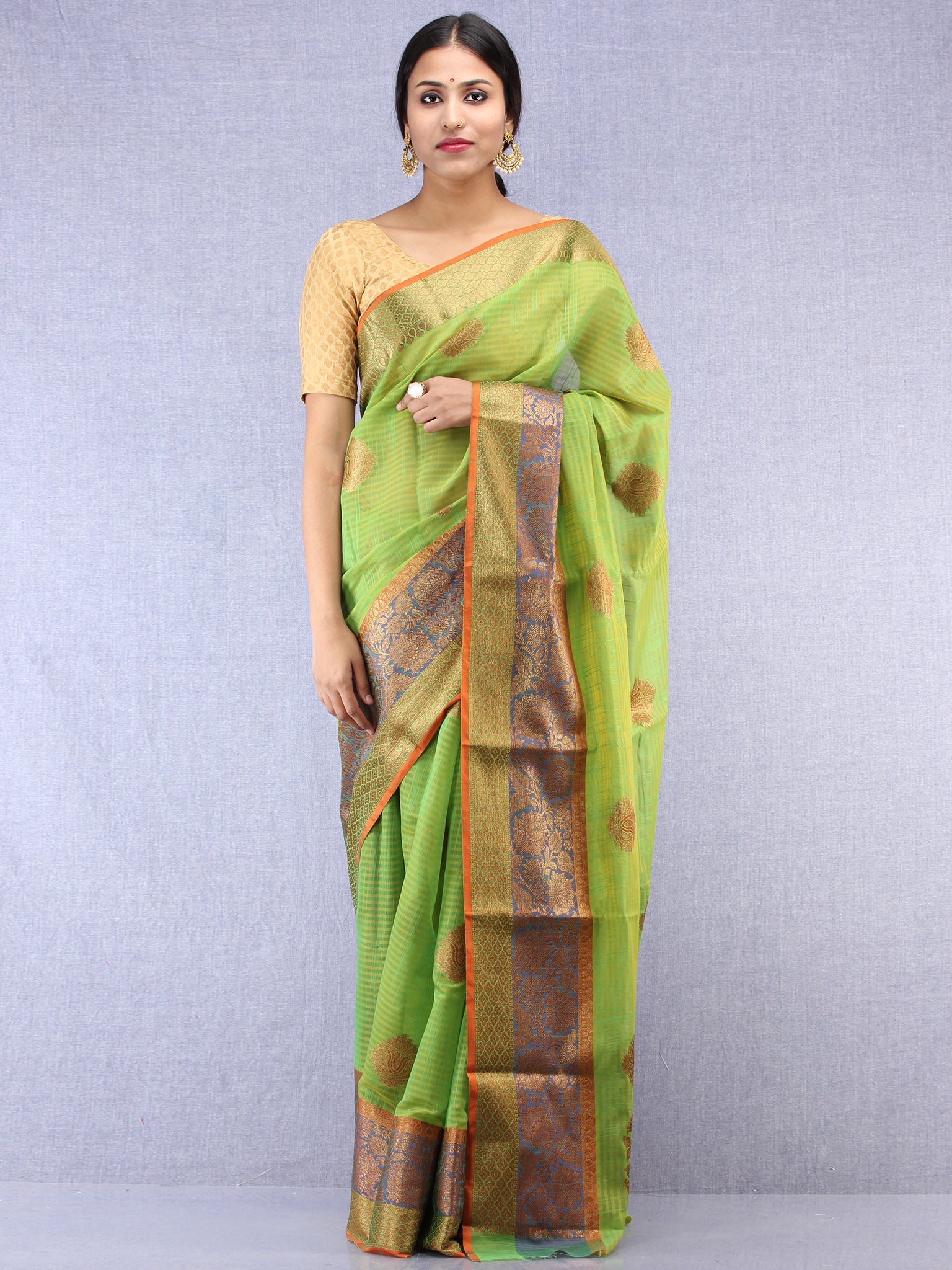 Banarasee Cotton Silk Saree With Zari Work - Light Green Blue & Gold - S031704434