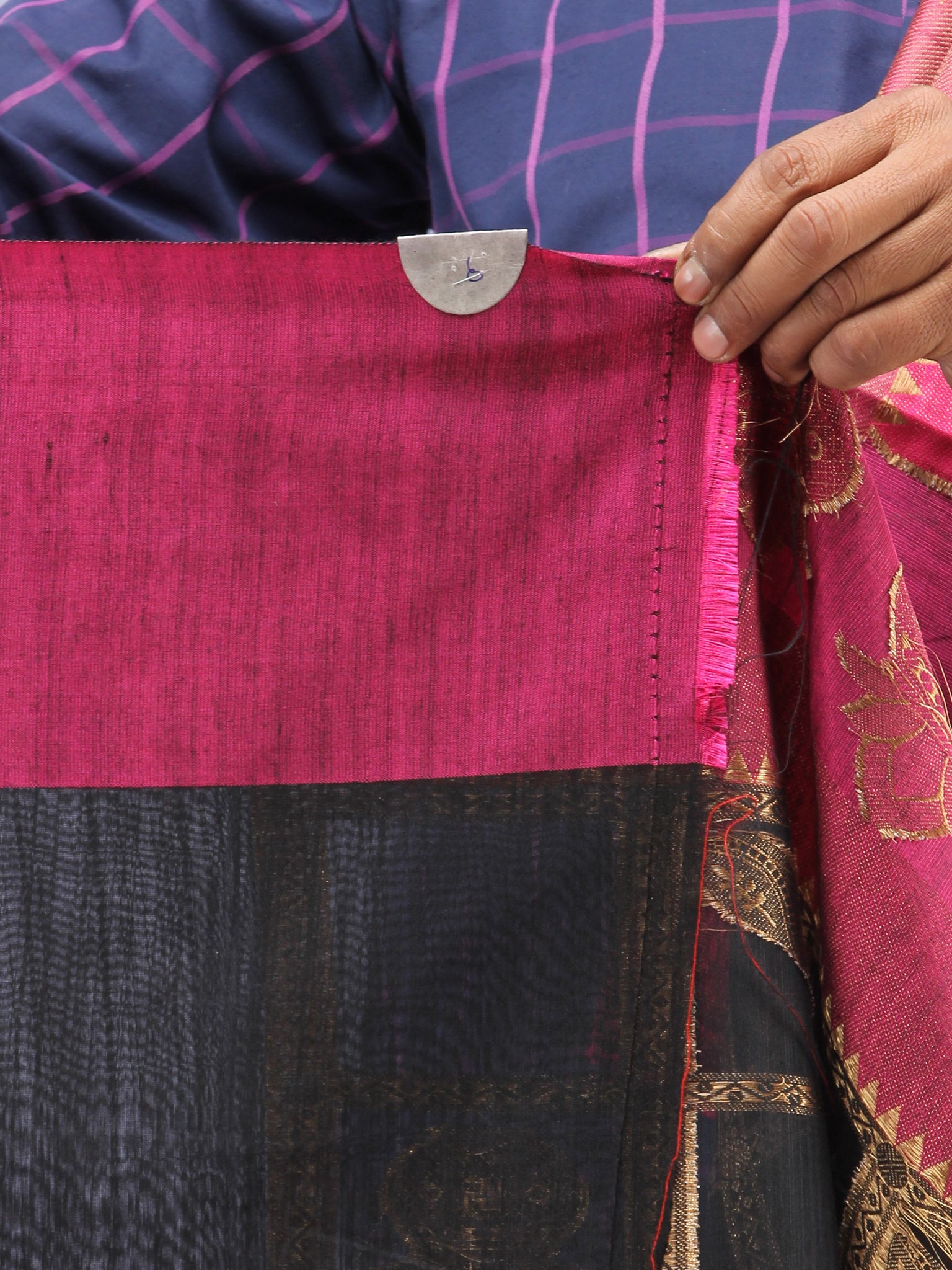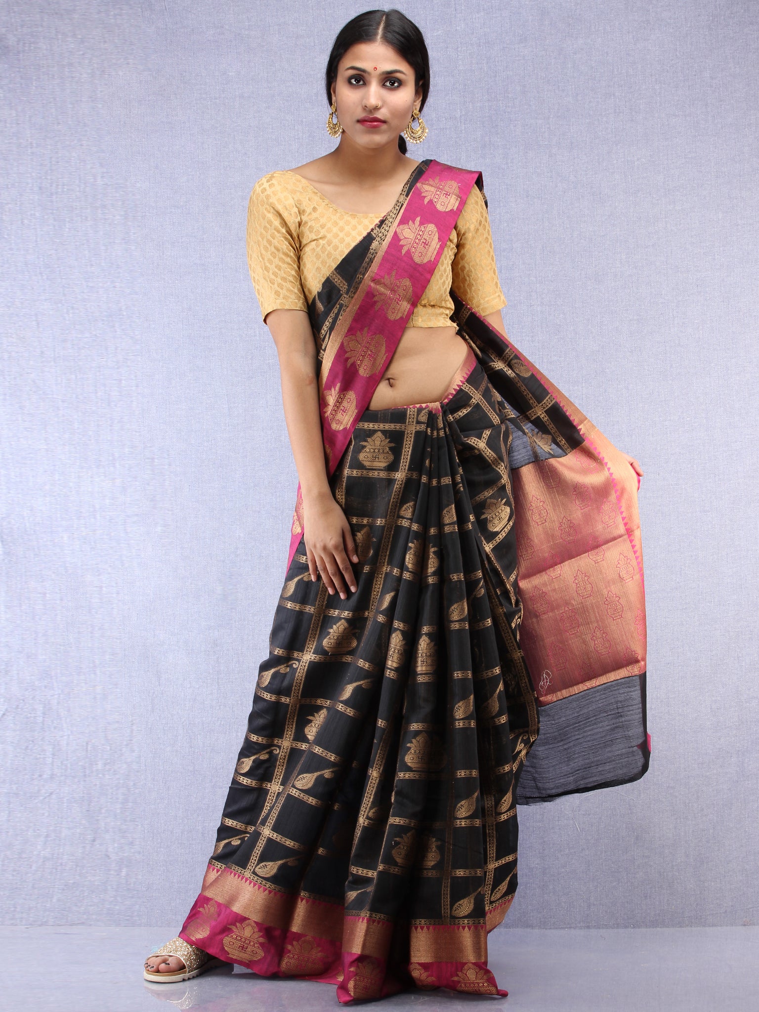 Banarasee Cotton Silk Saree With Zari Work - Black Pink & Copper Gold - S031704440
