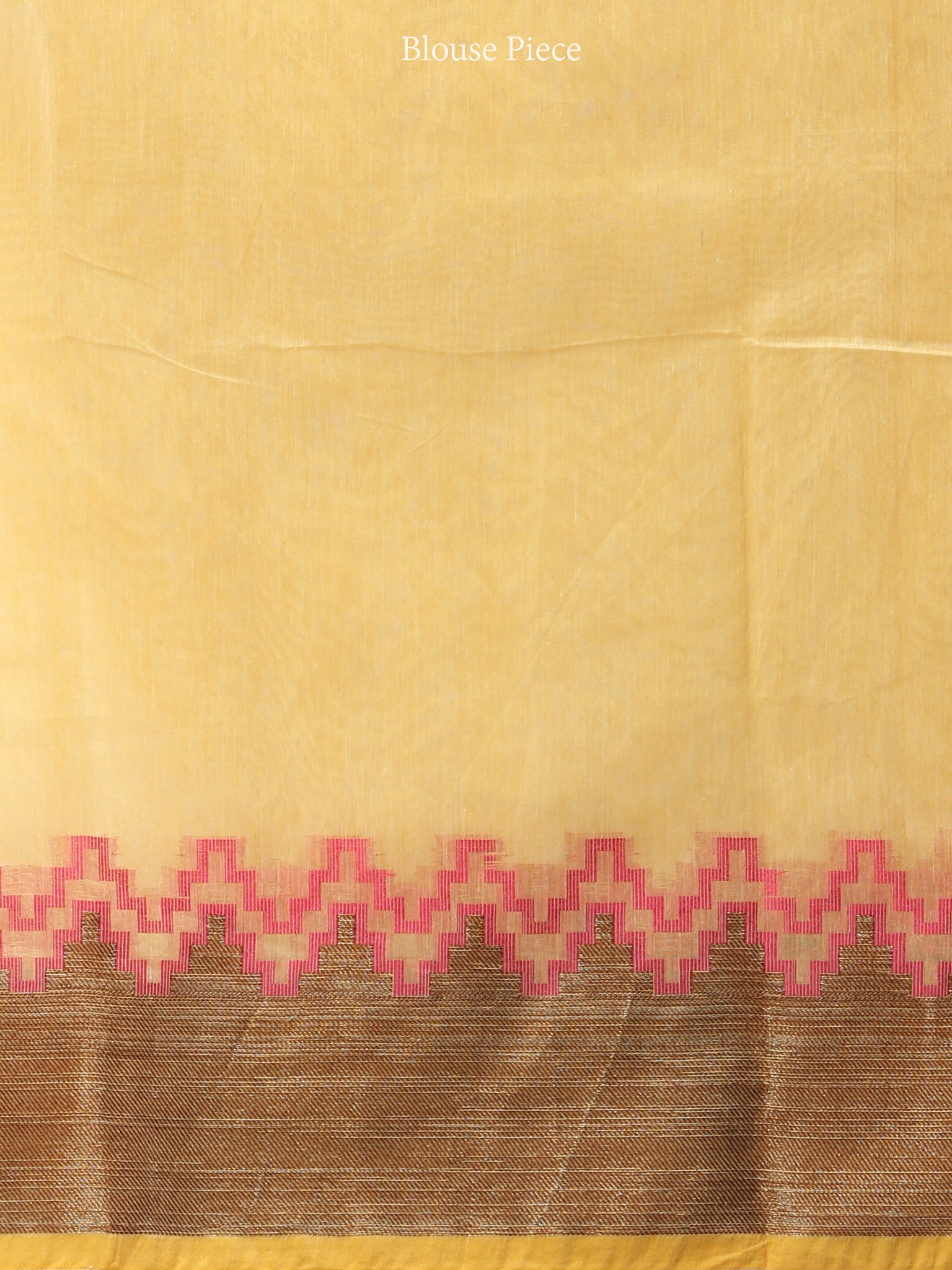 Banarasee Cotton Silk Saree With Zari Work - Ivory Pink & Gold - S031704435