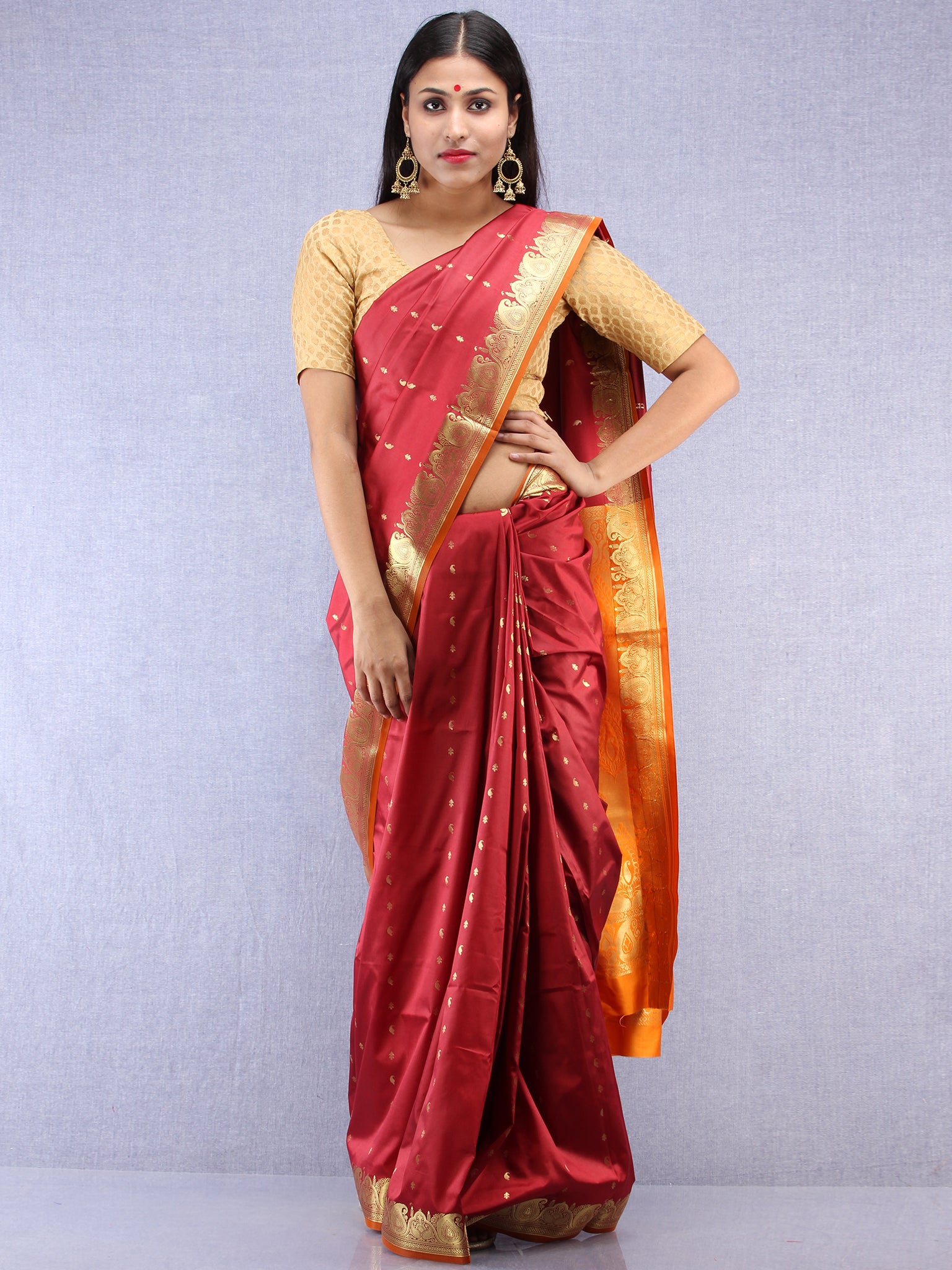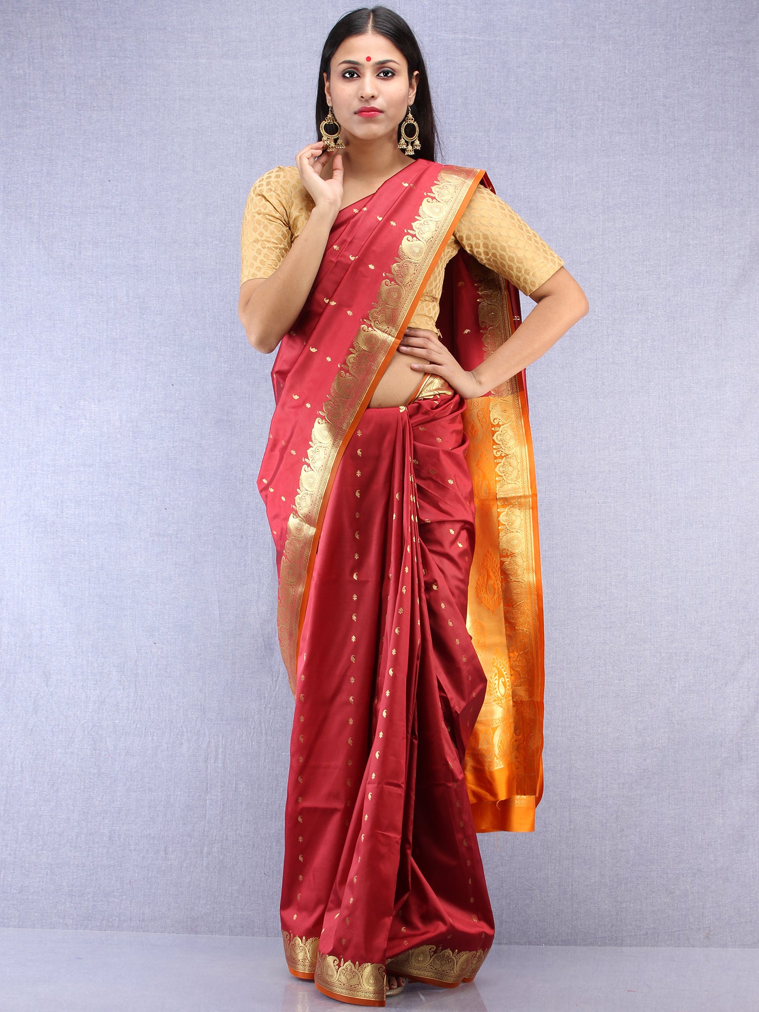 Banarasee Art Silk Saree With Zari Work - Maroon Yellow & Gold - S031704413
