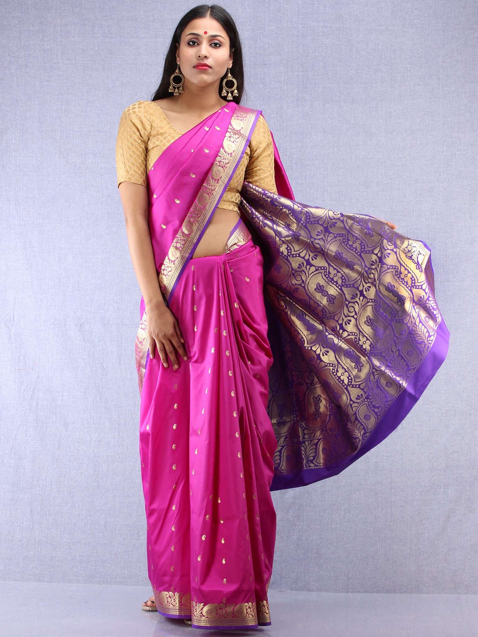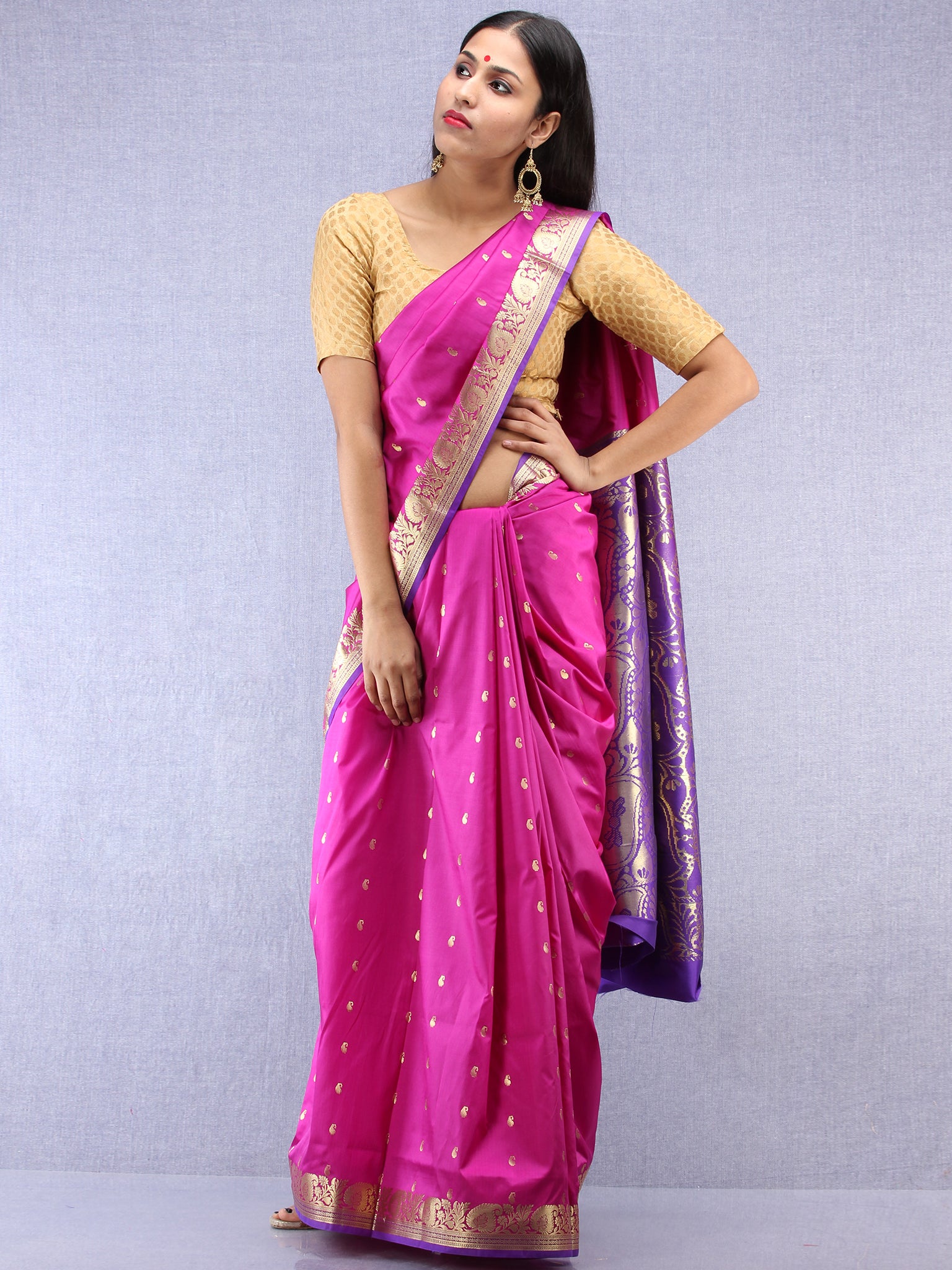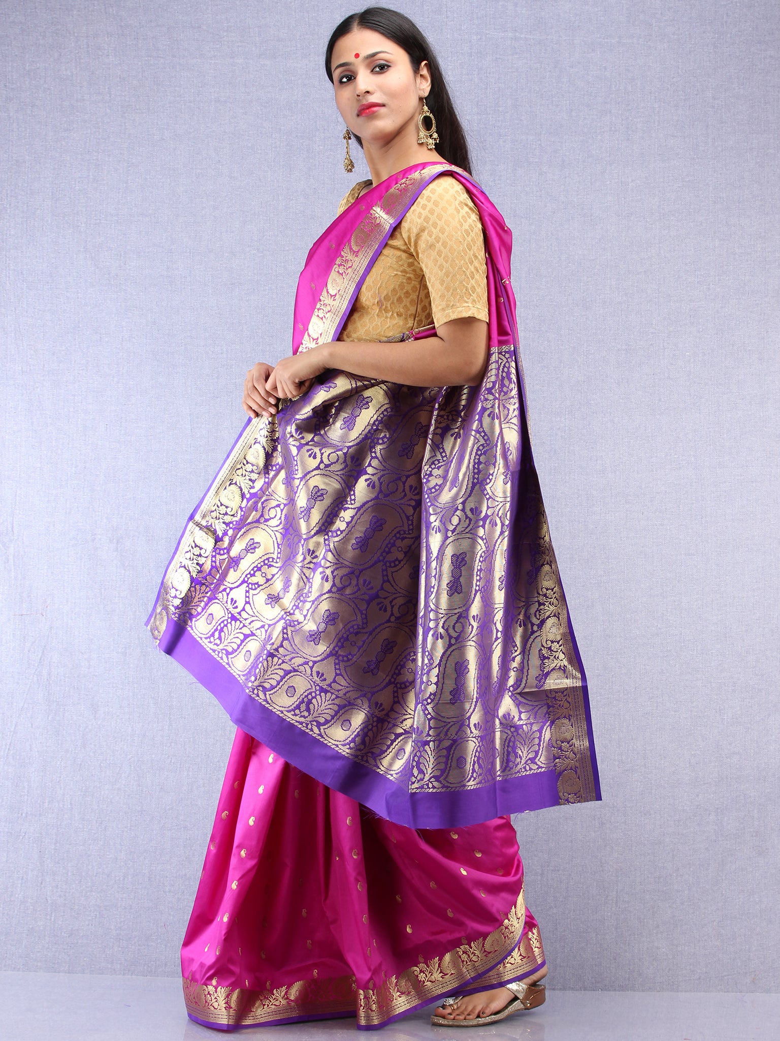 Banarasee Art Silk Saree With Zari Work - Onion Pink Gold & Purple - S031704412